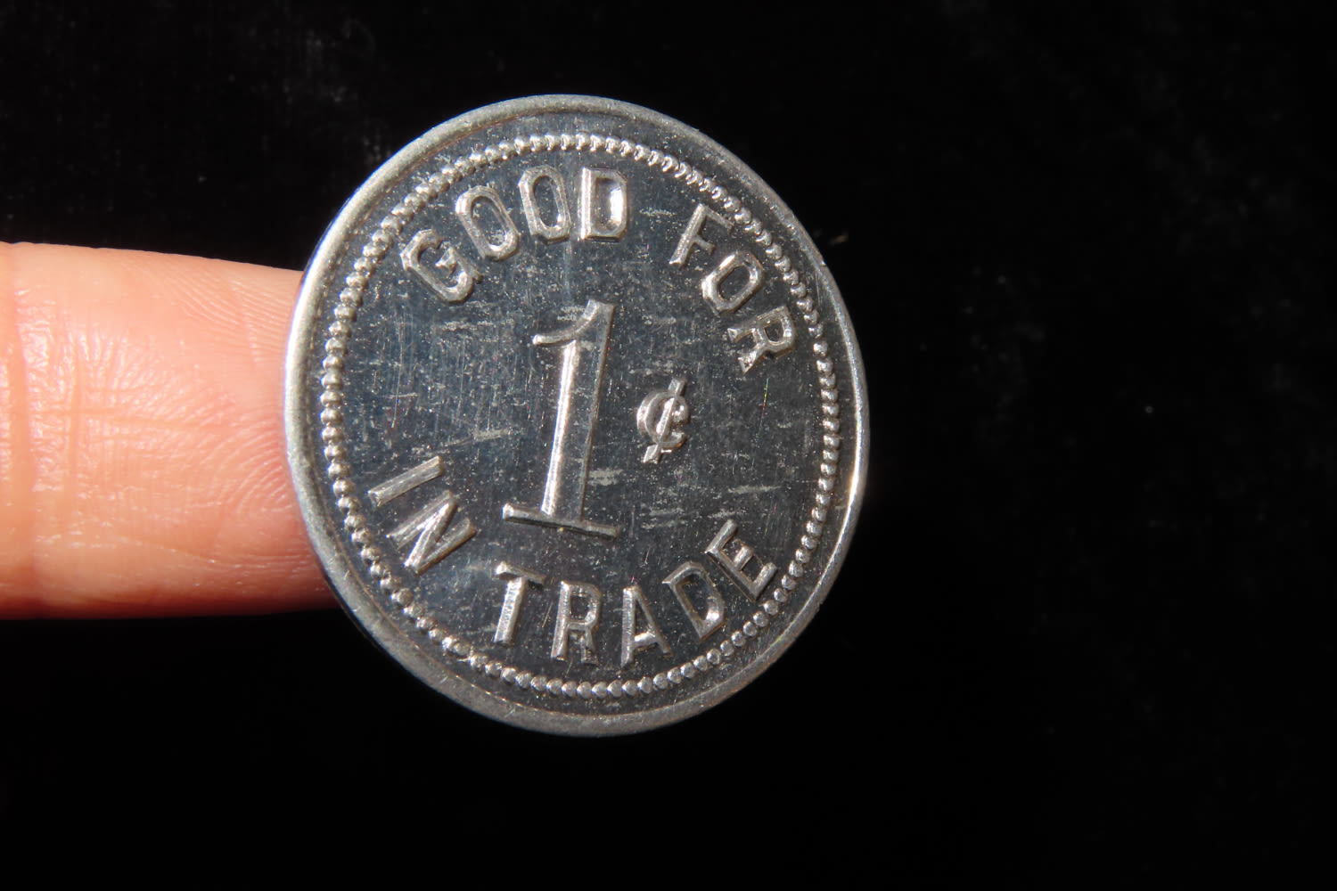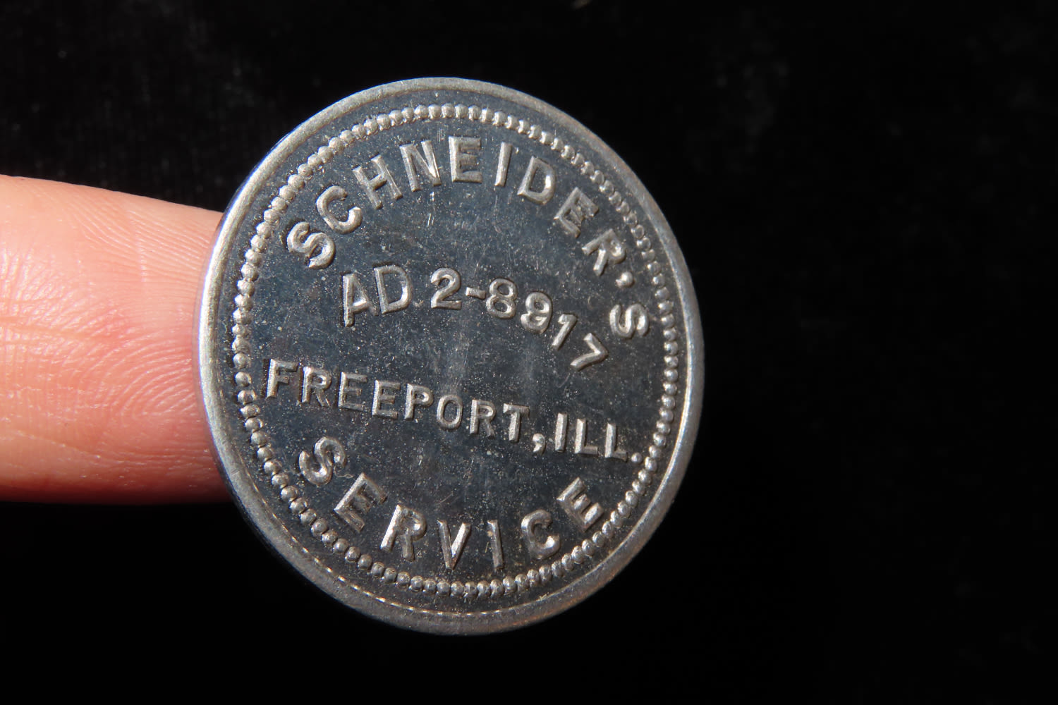 Vintage “Schneider’s Service” Token good for 1Cent in Trade, Freeport, Illinois