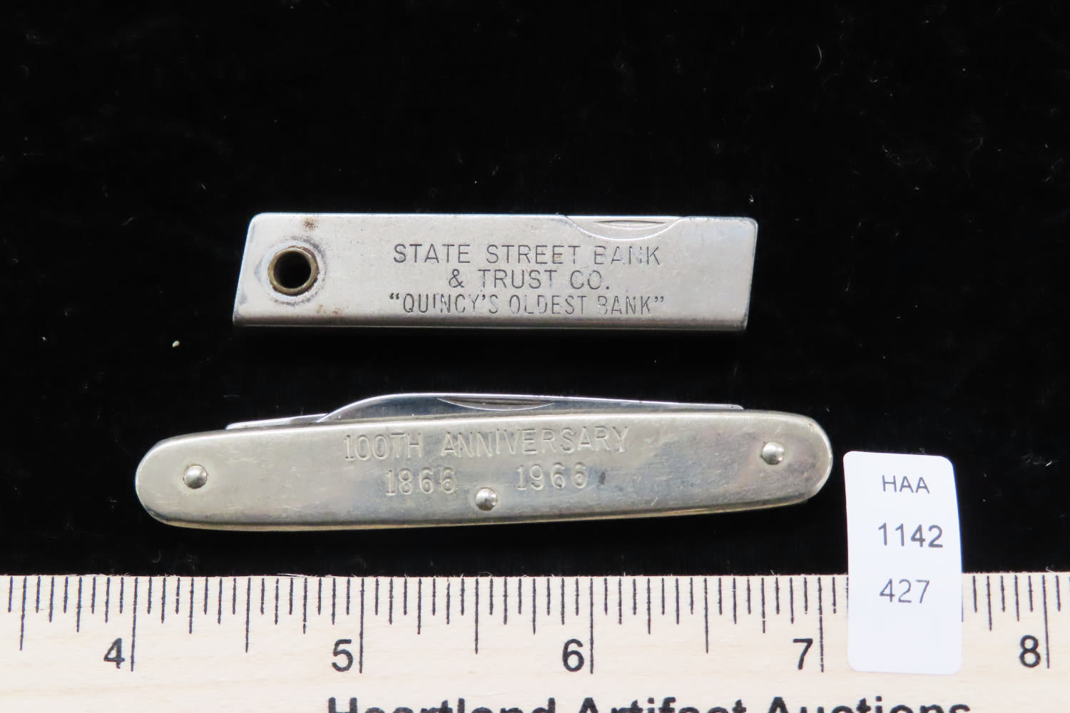 100th Anniversary 1866-1966 Scottish Rite Bodies, Valley of Quincy, Illinois Pocket Knife and State Street Bank & Trust Co. Pocket Knife