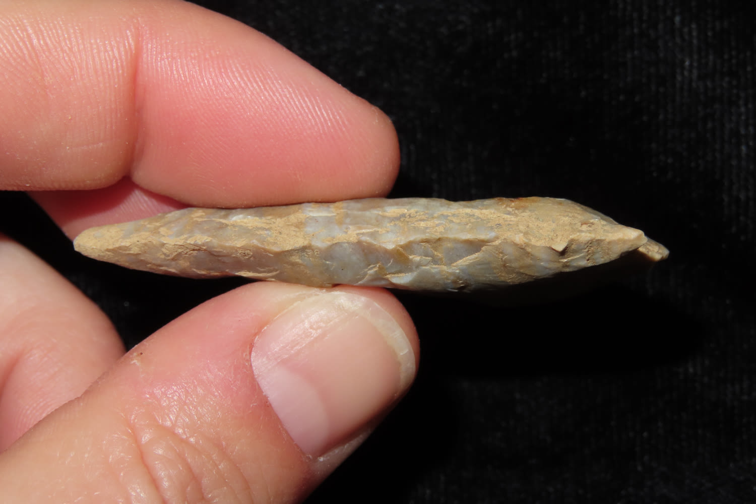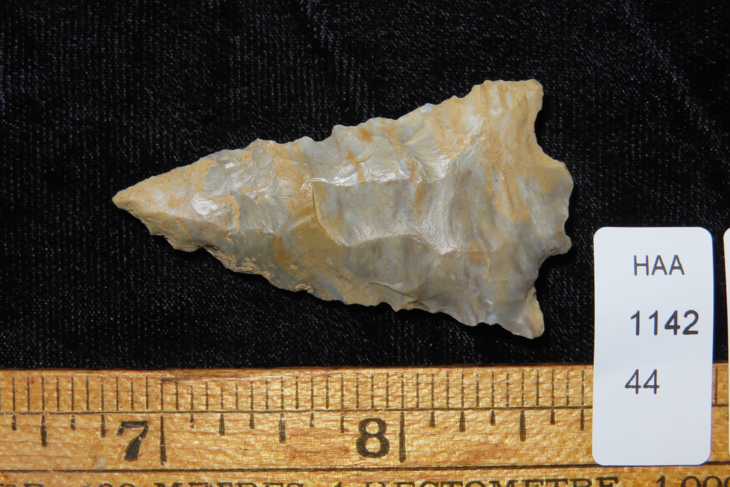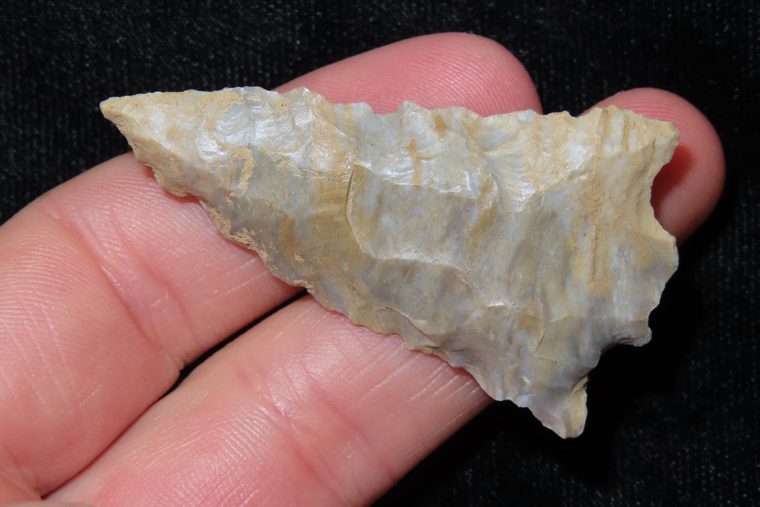 1 7/8″ COLORFUL KIRK STEMMED SERRATED FOUND IN KENTUCKY BY LEROY WILLIAMS, ARROWHEAD INDIAN ARTIFACT