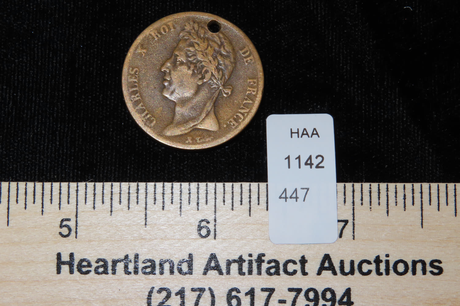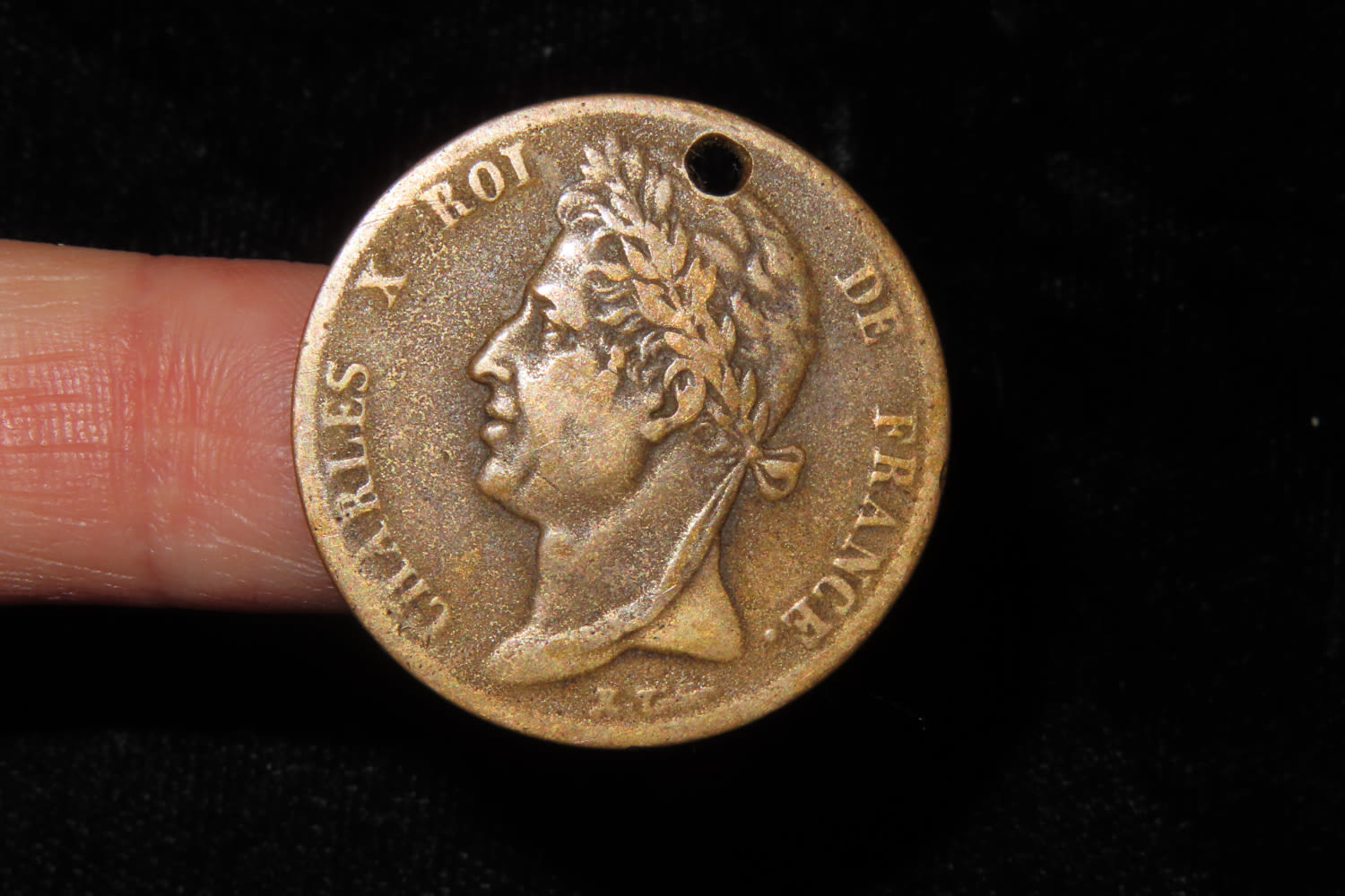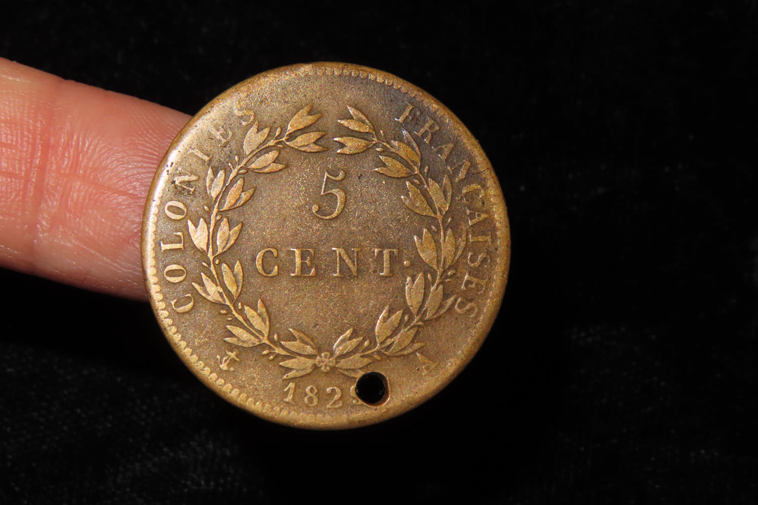 1829 French Colonial 5 Cent Coin with hole drilled in it
