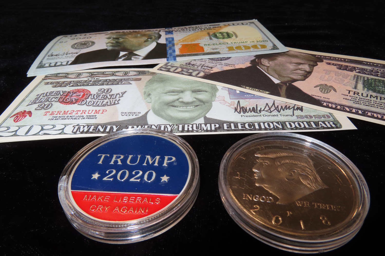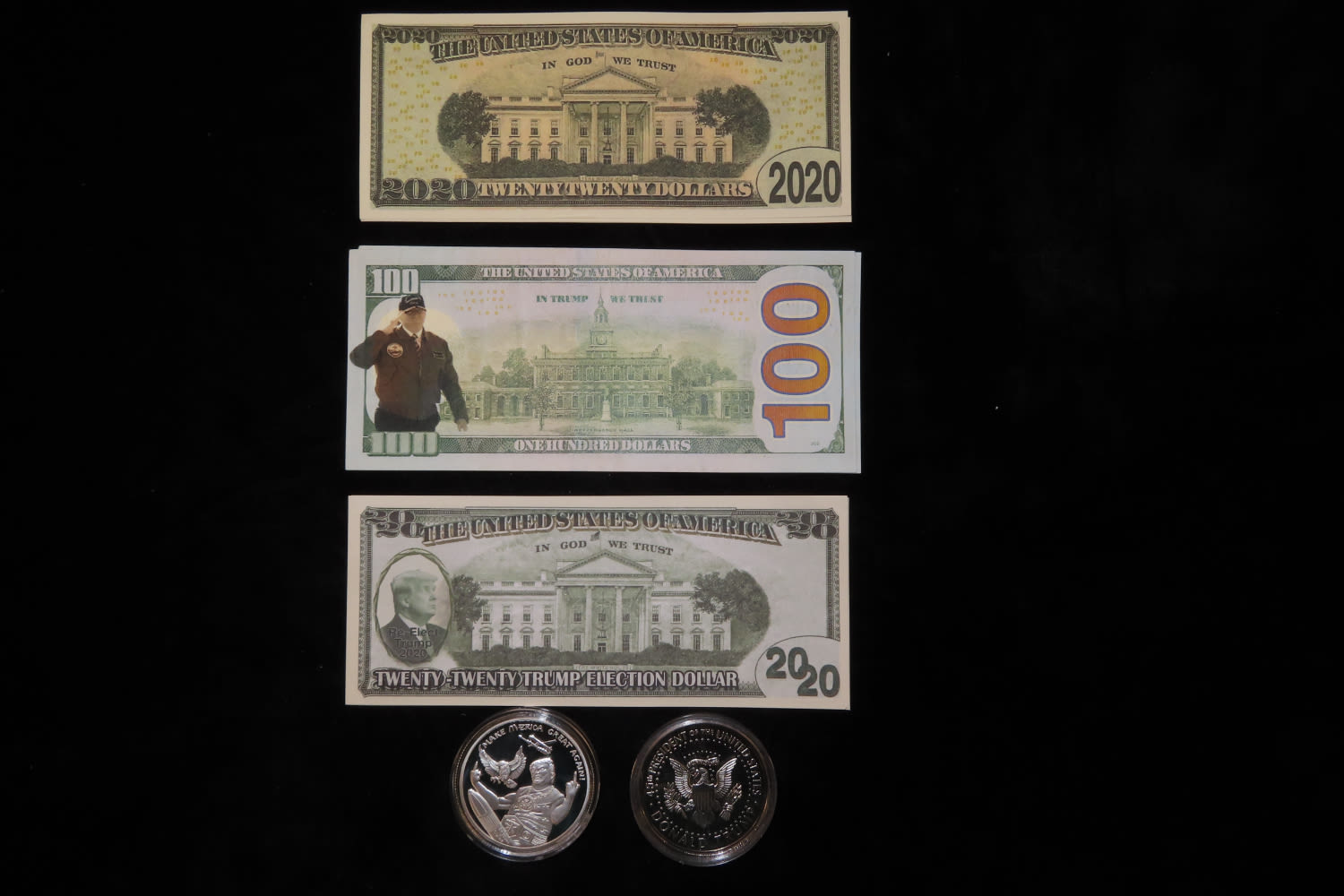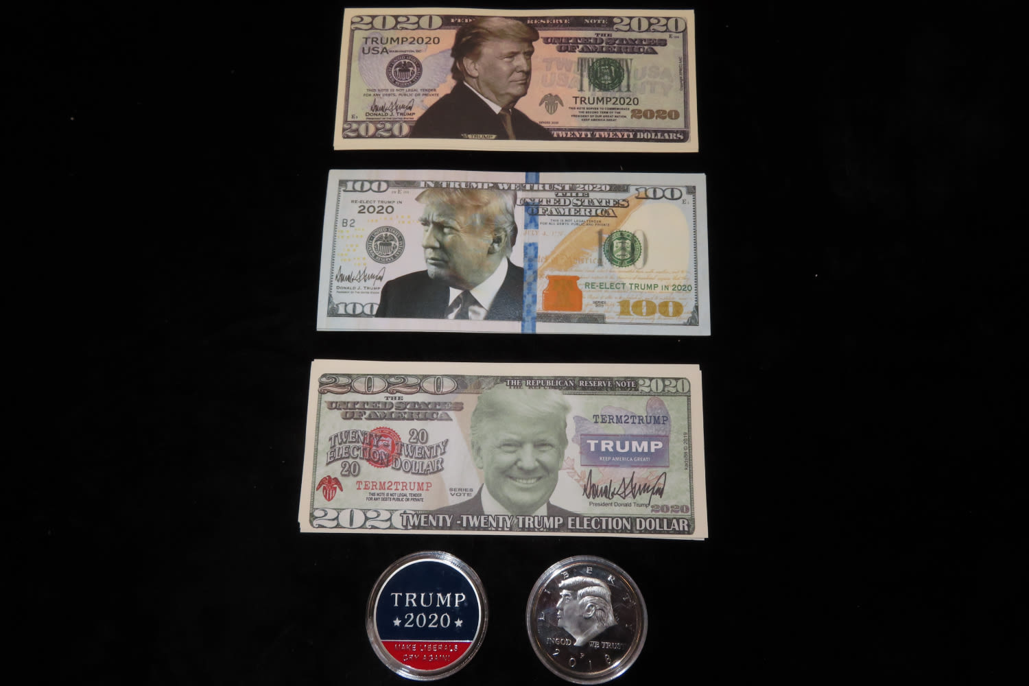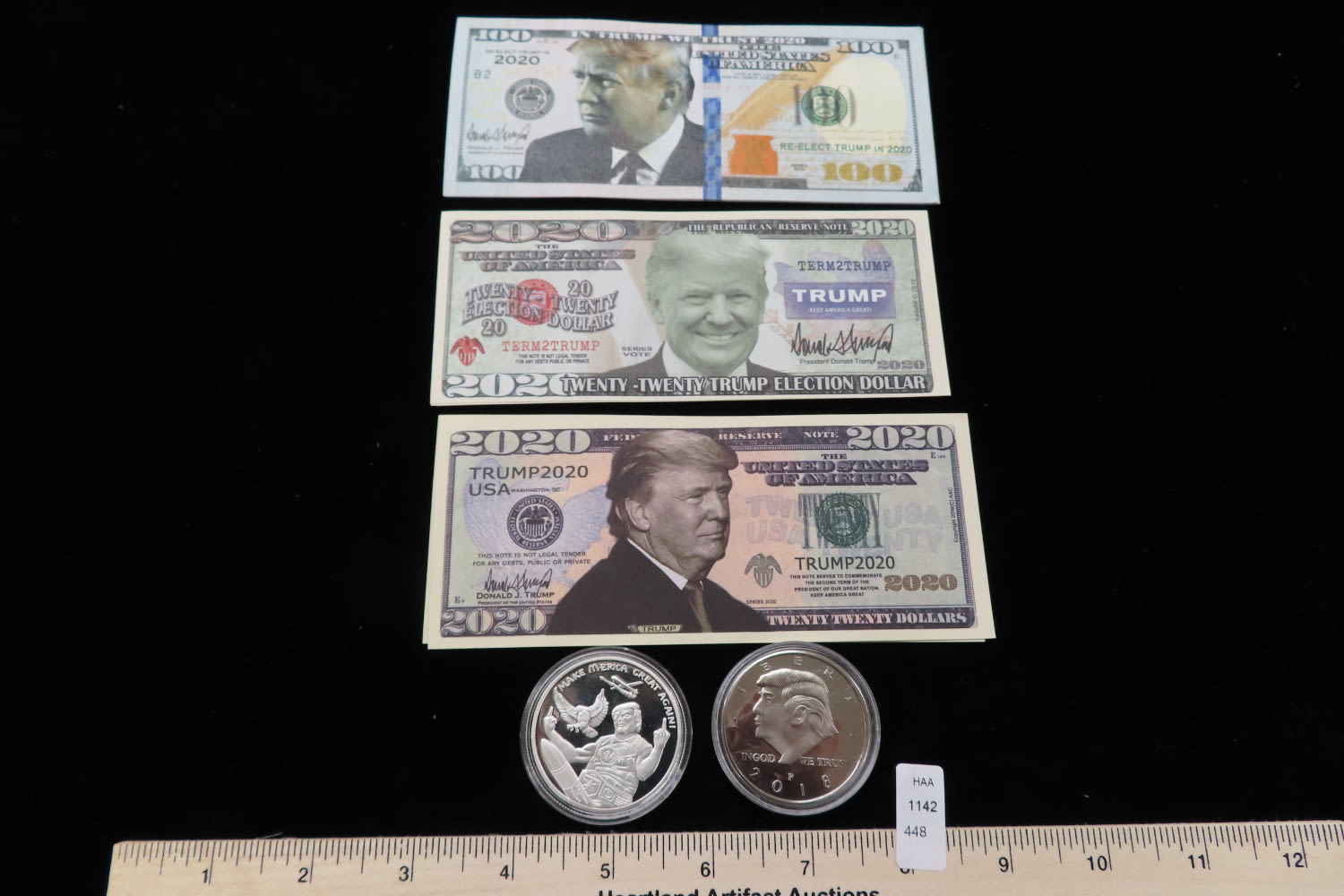 Lot of Trump Bills and 2 coins