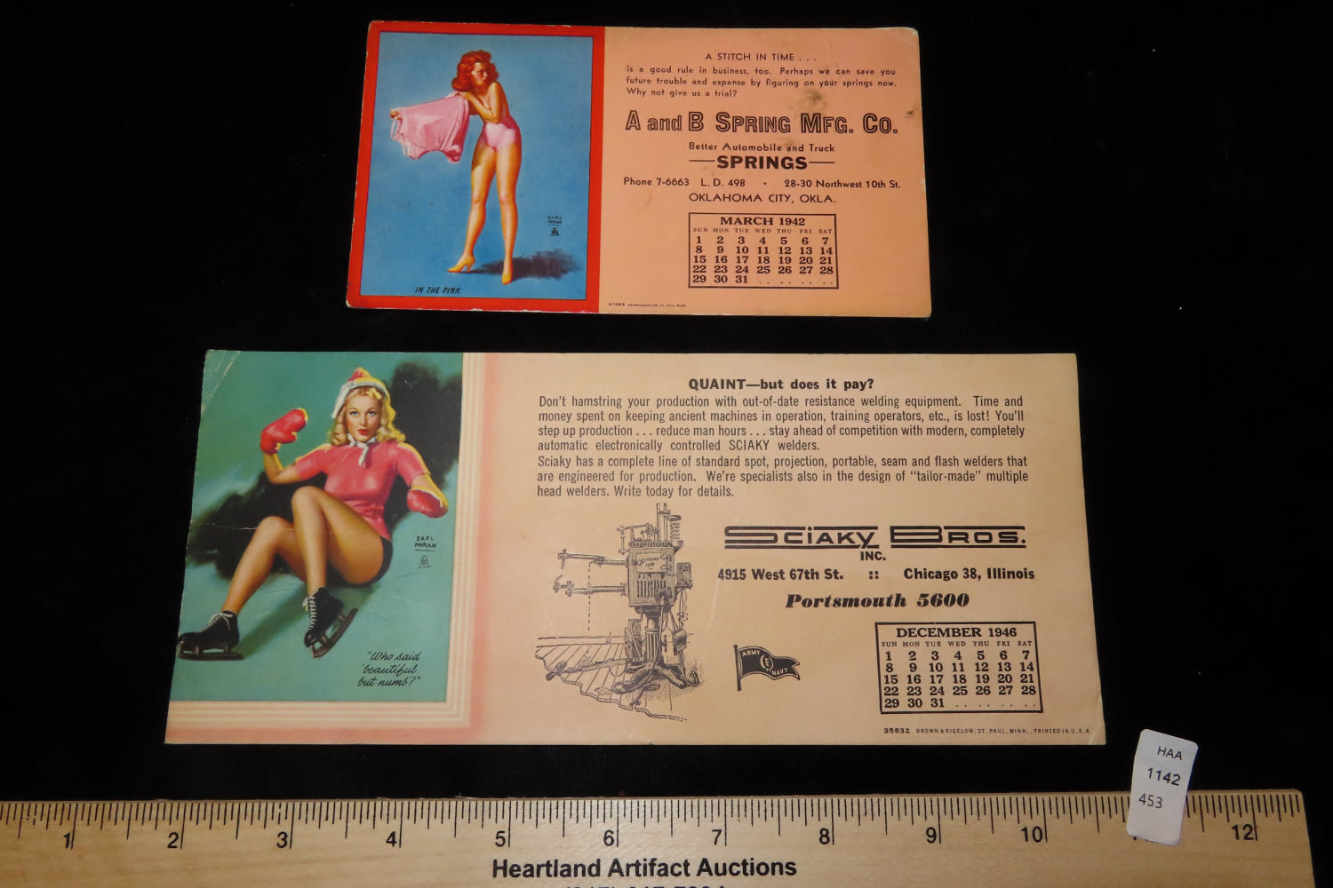 PAIR OF VINTAGE 1940’S PIN UP GIRL INK BLOTTERS CALENDARS, CHICAGO ILLINOIS & OKLAHOMA CITY, 1942 & 1946, SEMI-NUDE PINUPS