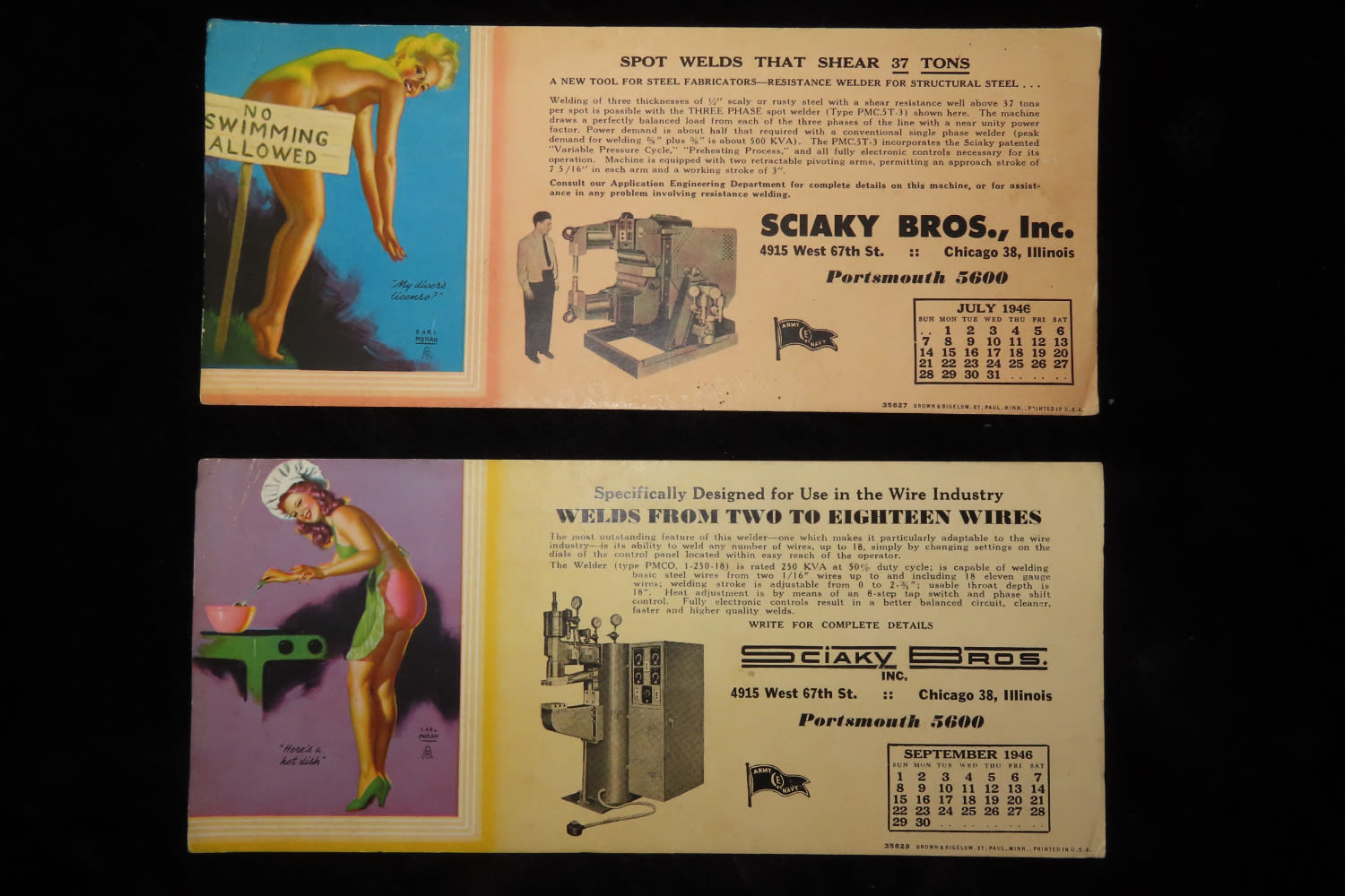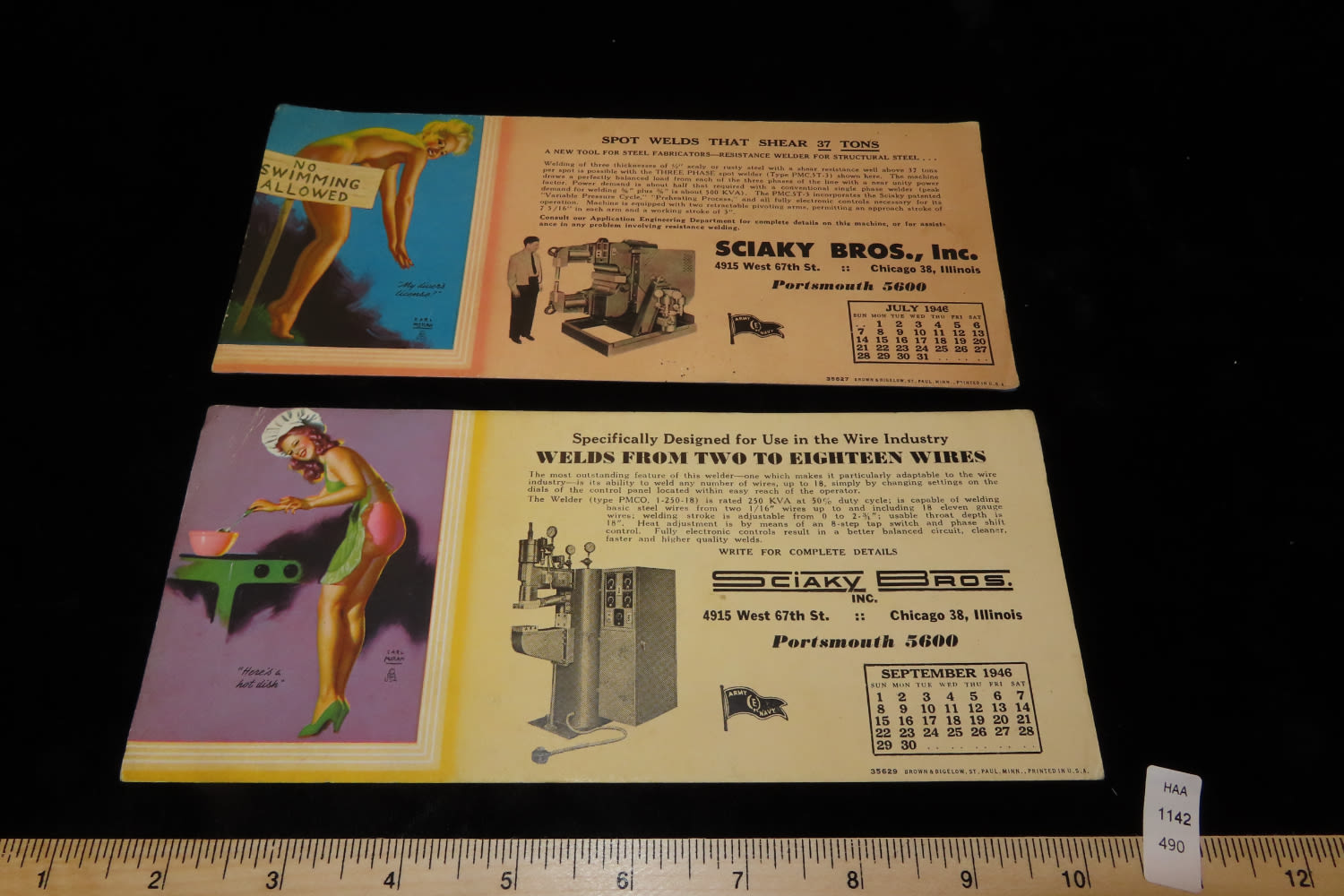 Vintage Pair of 1946 Sciaky Bros. Pin Up Semi Nude Desk Blotter Calendars