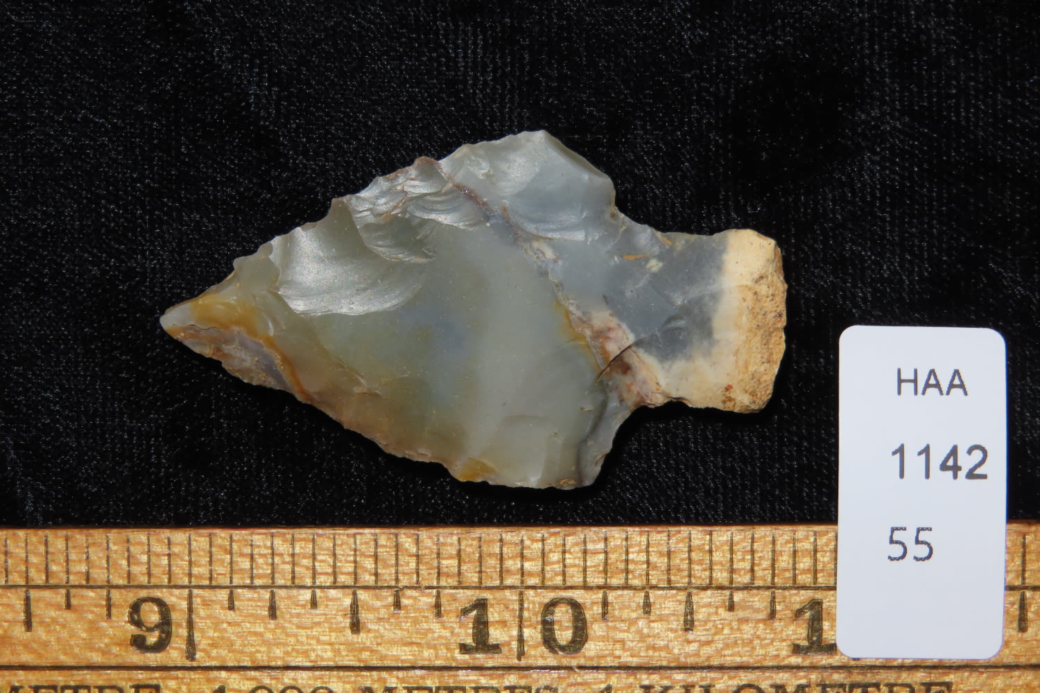 1 7/8″ COLORFUL SONORA MOTLEY FOUND IN KENTUCKY BY LEROY WILLIAMS, ARROWHEAD INDIAN ARTIFACT
