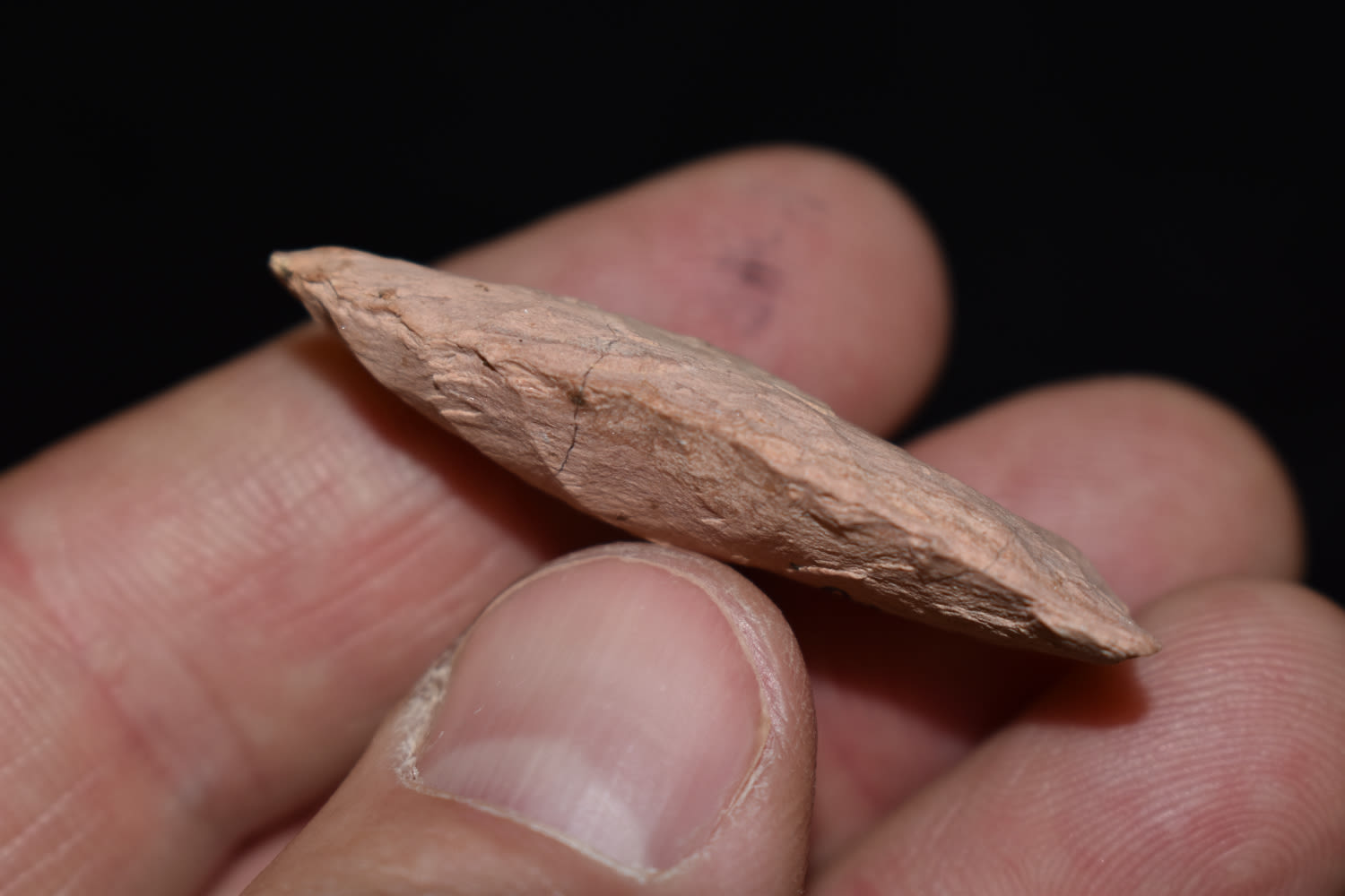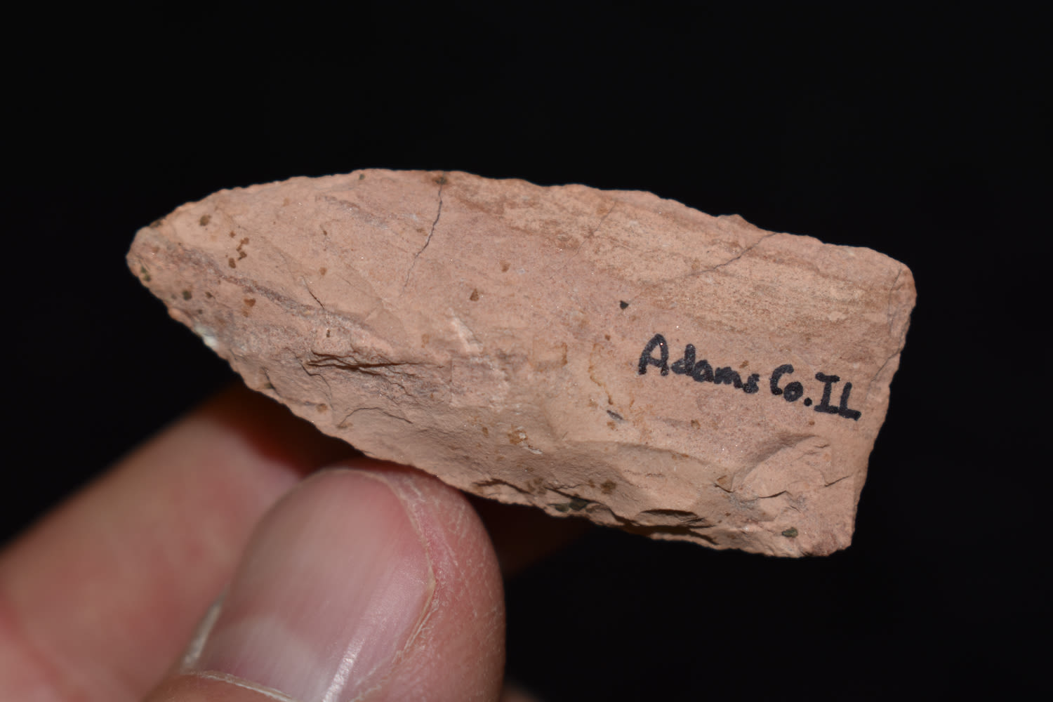 1 11/16″ LATE PALEO LANCE FOUND IN ADAMS COUNTY ILLINOIS, NICE EARLY FLAKING, INDIAN ARROWHEAD, ARTIFACT