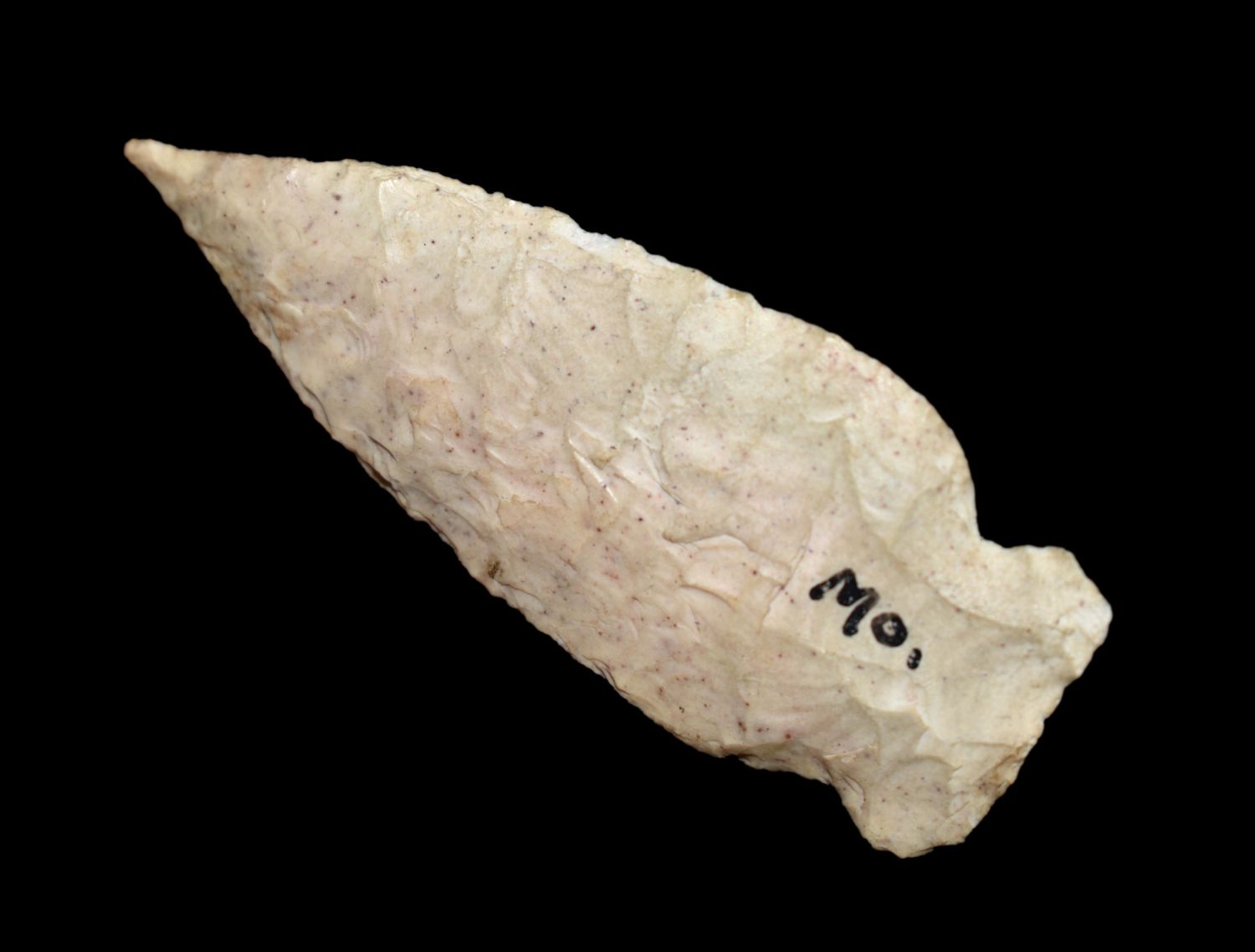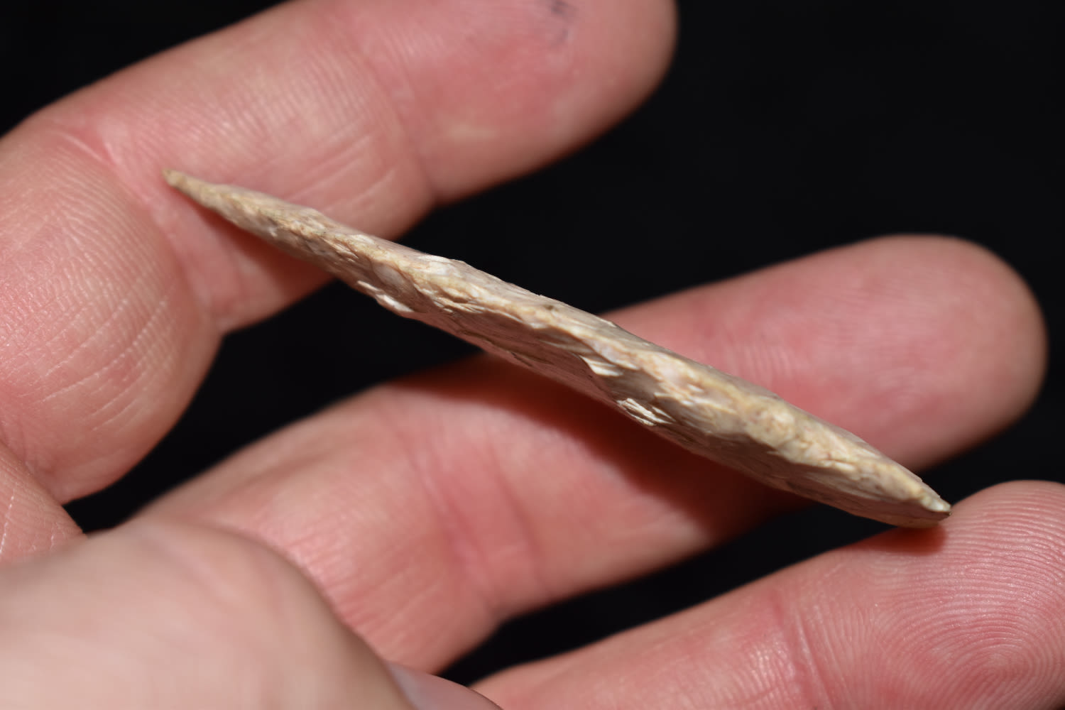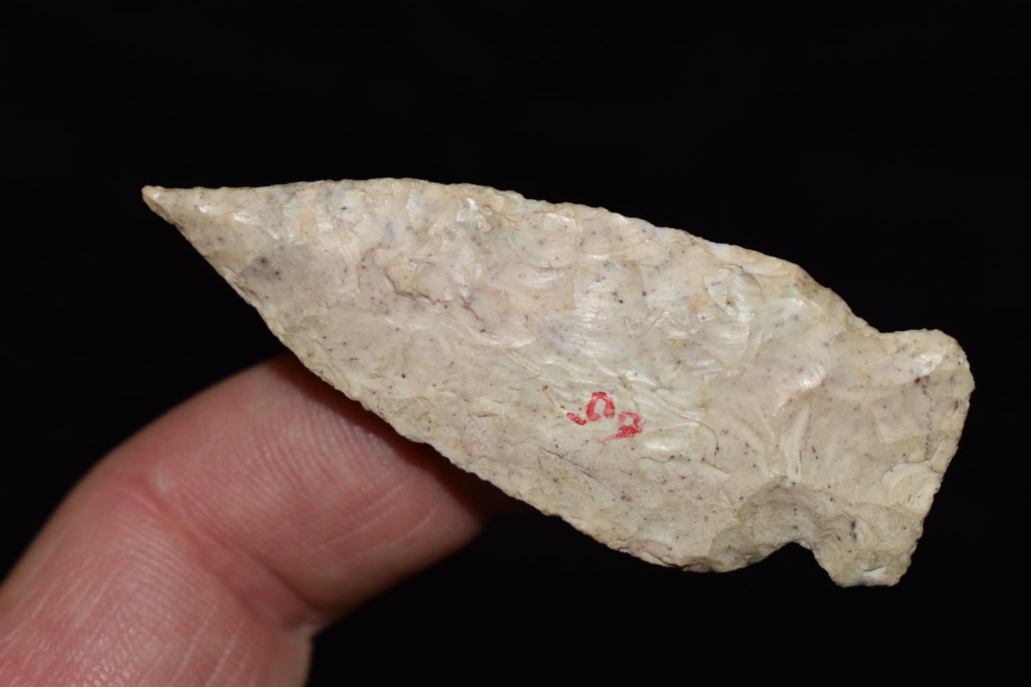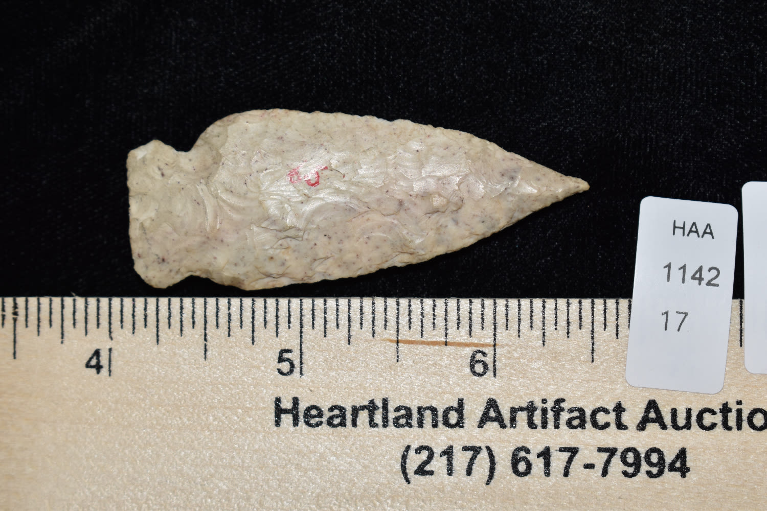2 1/2″ NEEDLE TIPPED RICE LOBED FOUND IN SOUTHERN MISSOURI, INDIAN ARROWHEAD, ARTIFACT