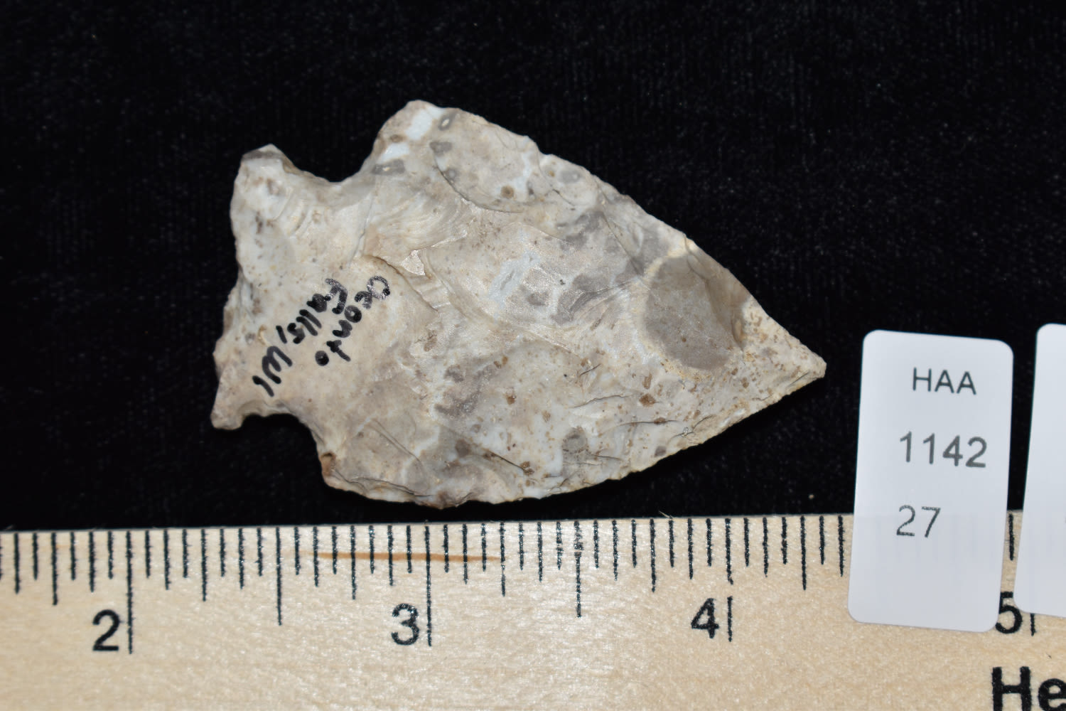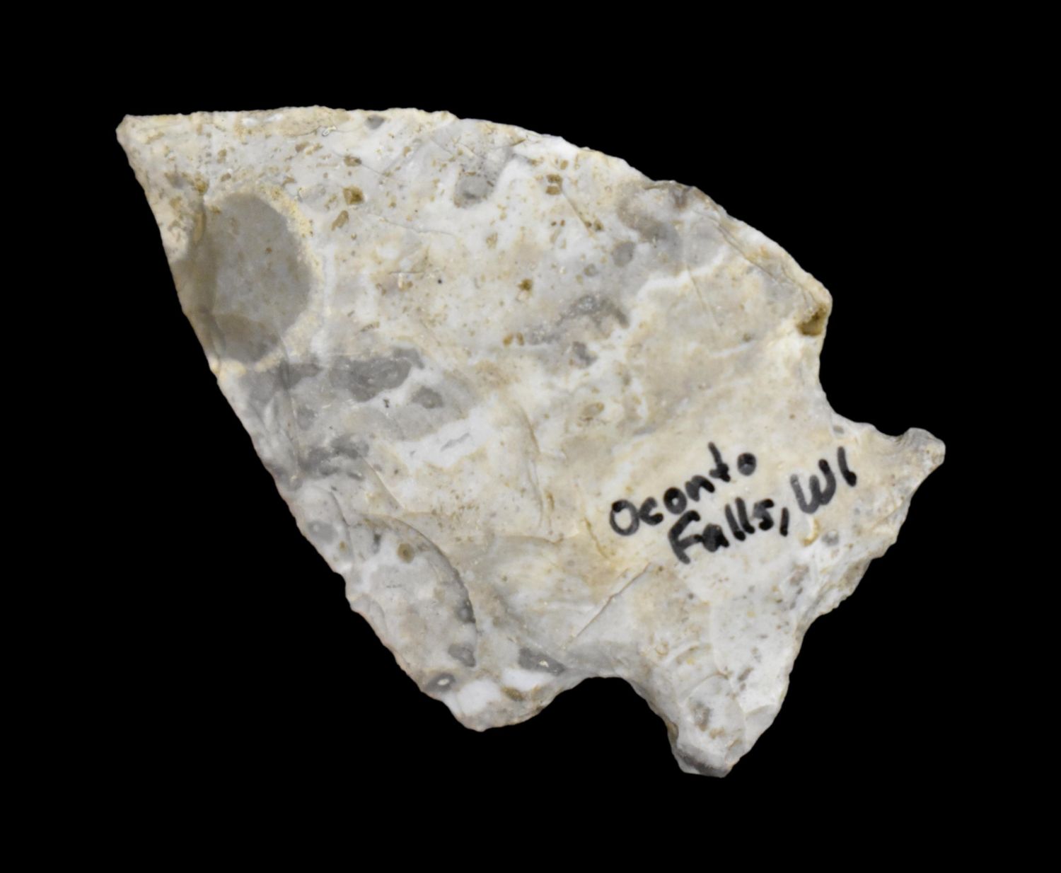 COLORFUL 2 1/16″ ARCHAIC CORNERNOTCH FOUND NEAR OCONTO FALLS WISCONSIN, INDIAN ARROWHEAD, ARTIFACT