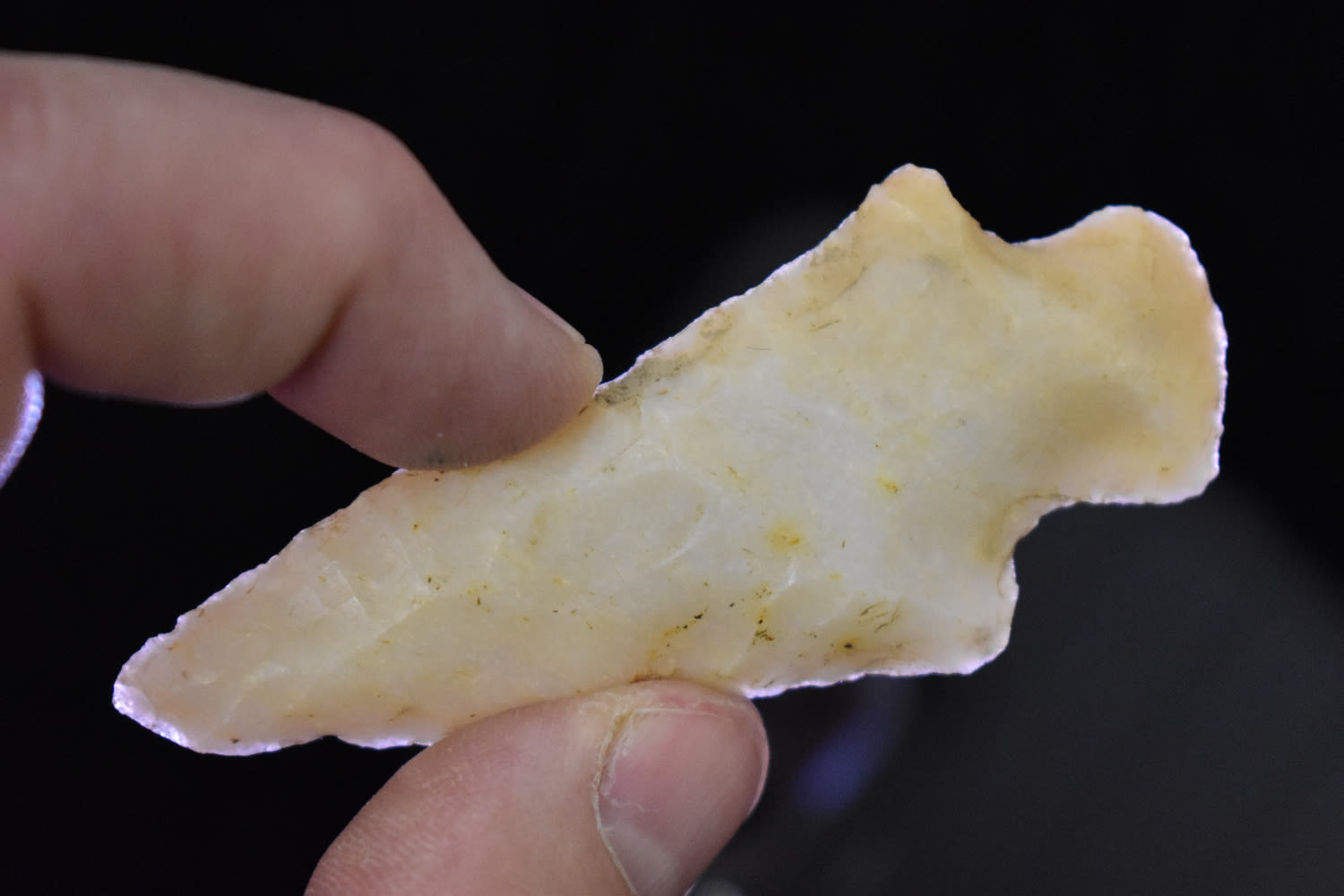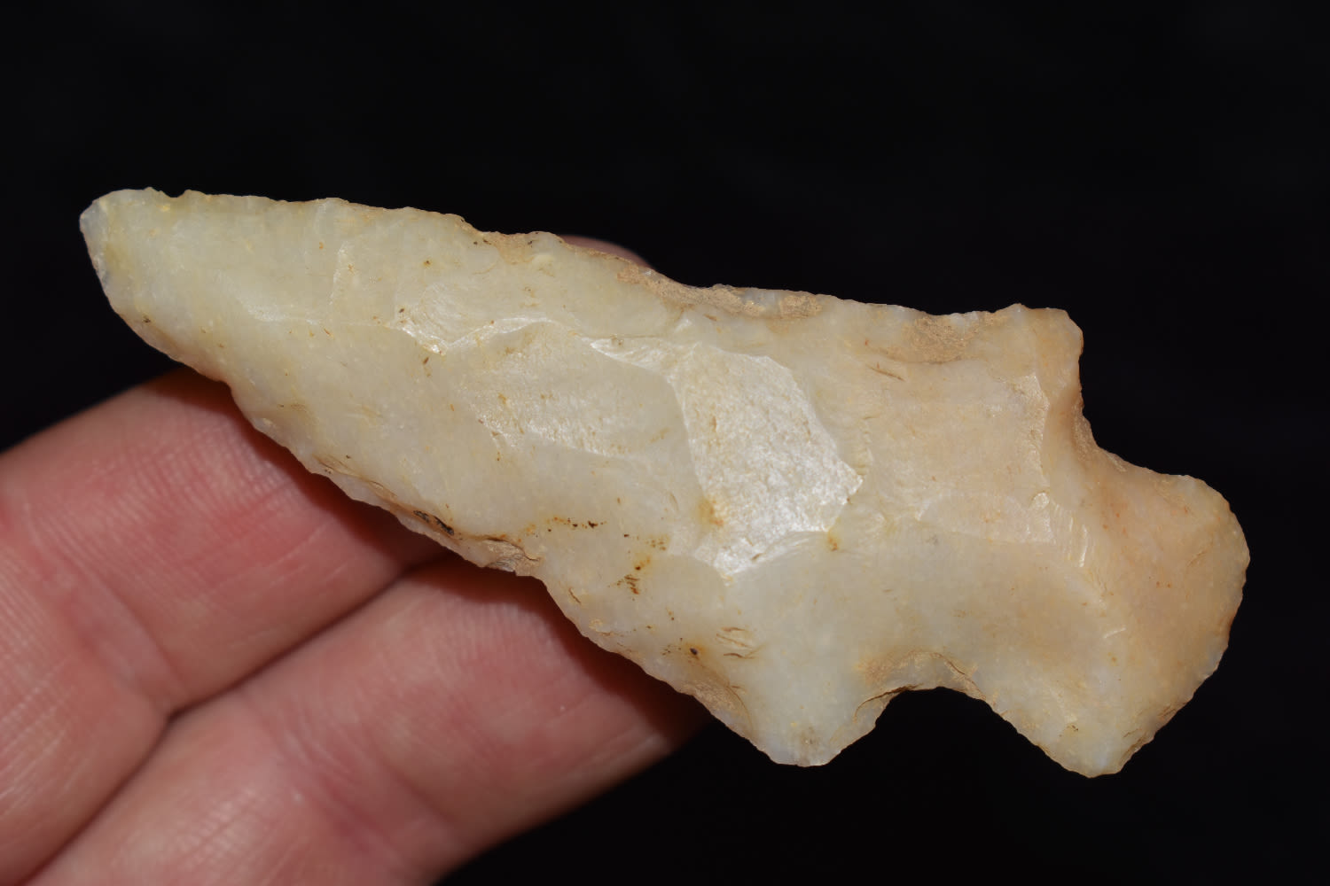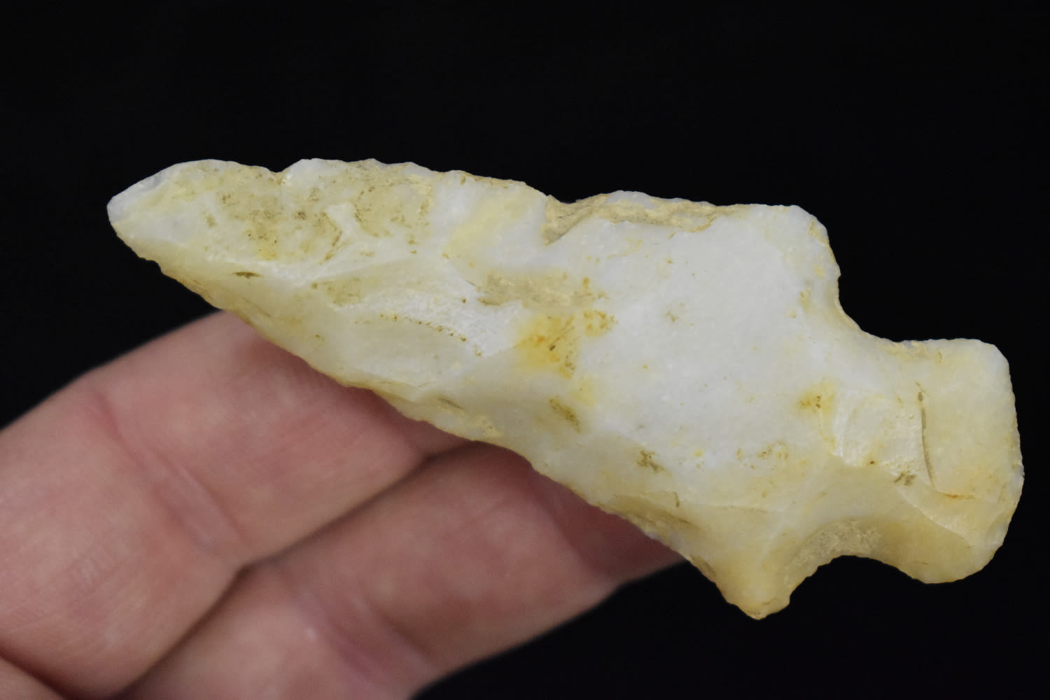 TRANSLUCENT 3″ KAOLIN HOPEWELL FOUND IN JACKSON COUNTY ILLINOIS, INDIAN ARROWHEAD, ARTIFACT