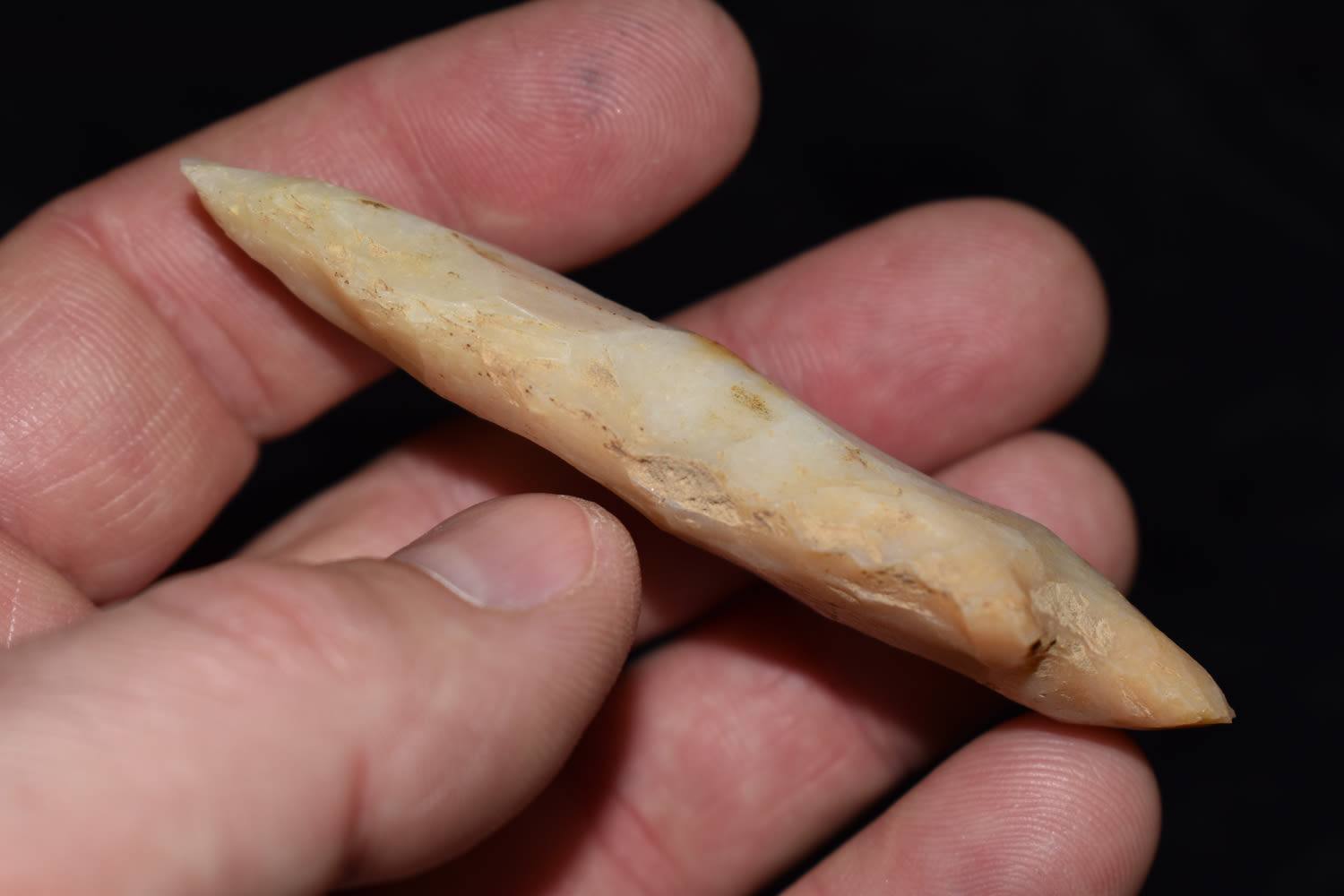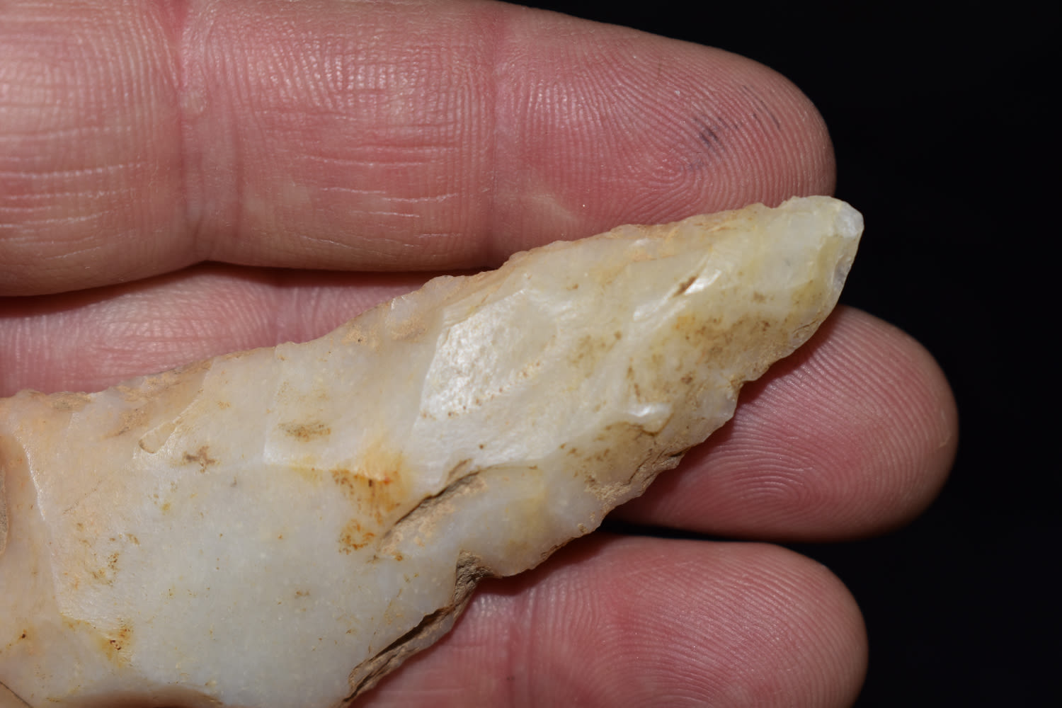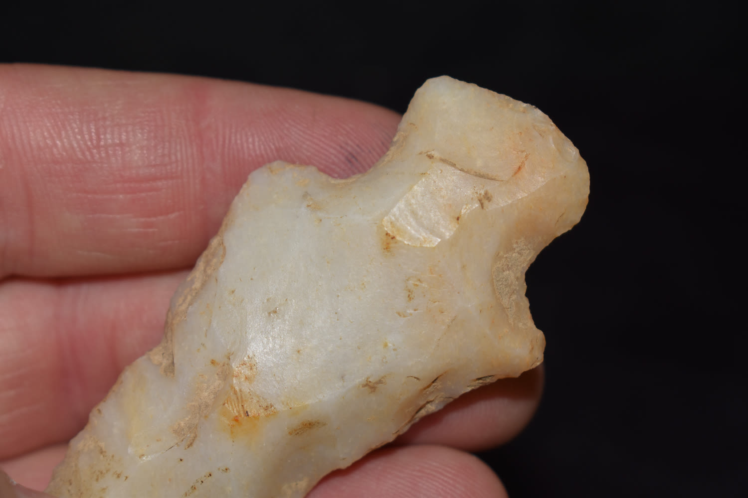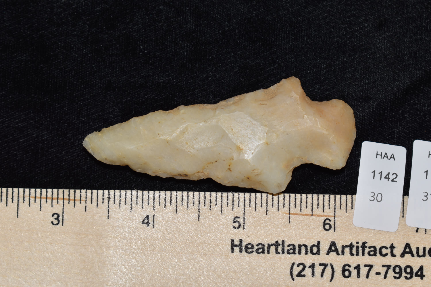 TRANSLUCENT 3″ KAOLIN HOPEWELL FOUND IN JACKSON COUNTY ILLINOIS, INDIAN ARROWHEAD, ARTIFACT