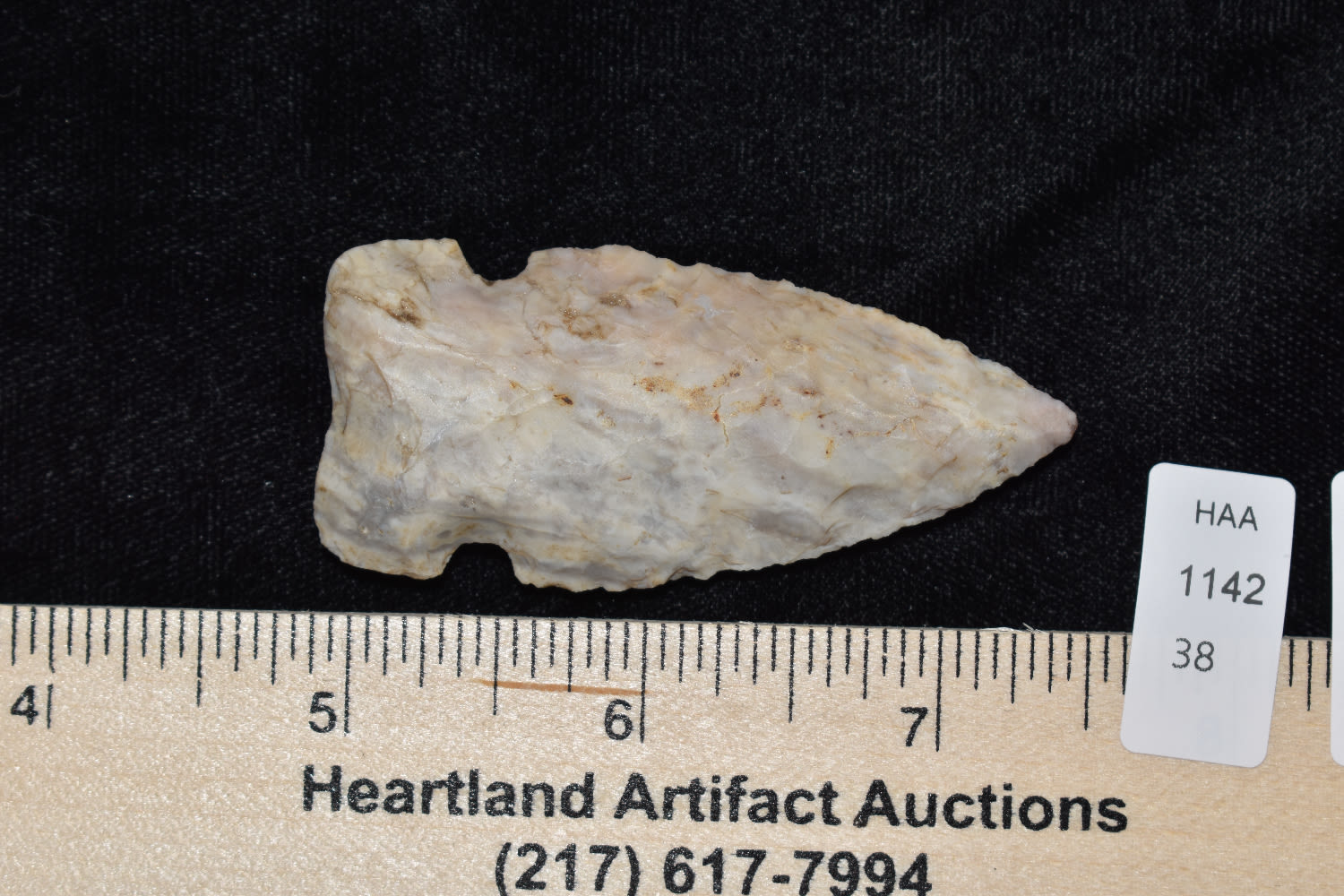 OUTSTANDING 2 5/8″ HICKORY RIDGE FOUND IN COOPER COUNTY MISSOURI, GREAT COLOR, INDIAN ARROWHEAD, ARTIFACT