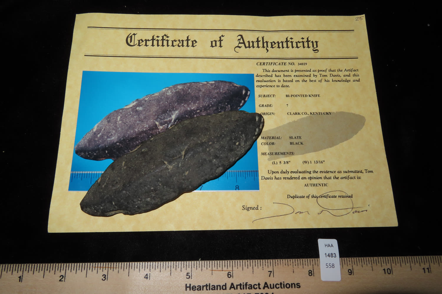 5 3/8” Slate Knife (Tom Davis COA), Clark Co., KY