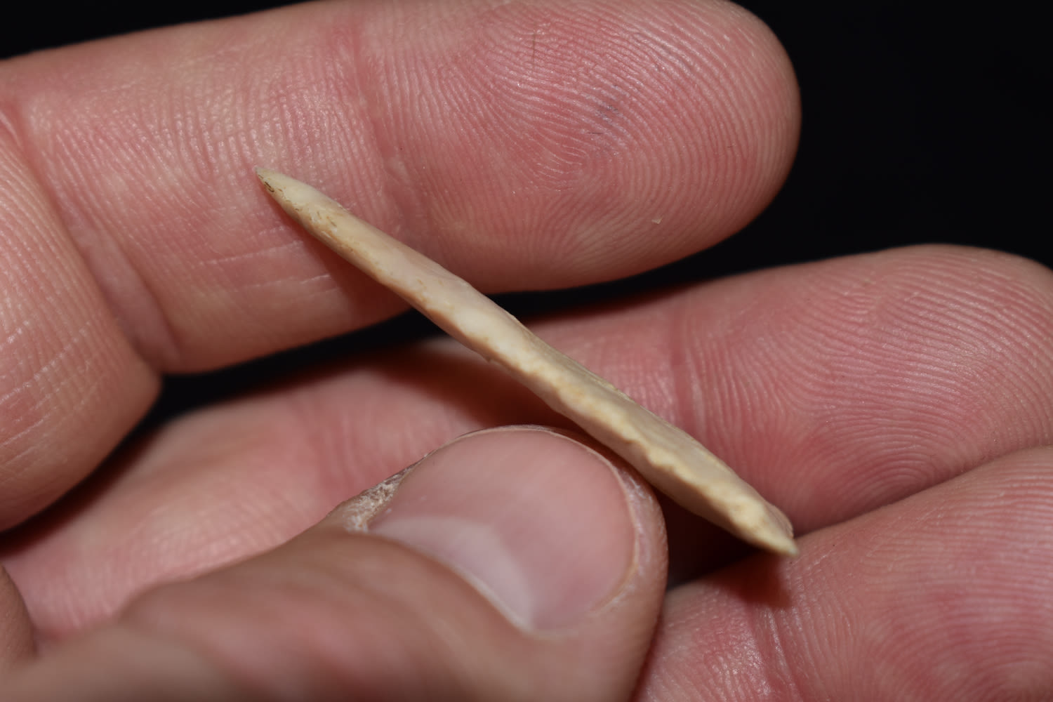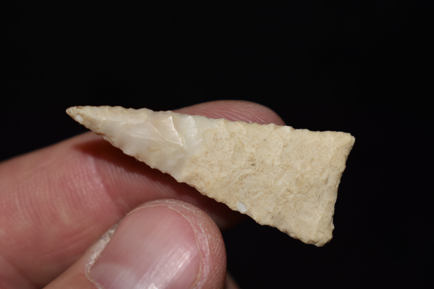 AMAZING 1 1/2″ MISSISSIPPIAN TRIANGLE FOUND IN MADISON COUNTY ILLINOIS, VERY THIN EXAMPLE, INDIAN ARROWHEAD