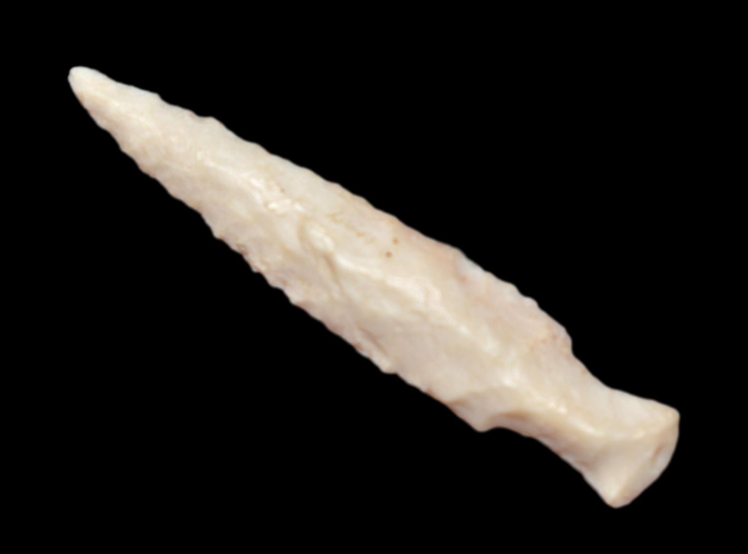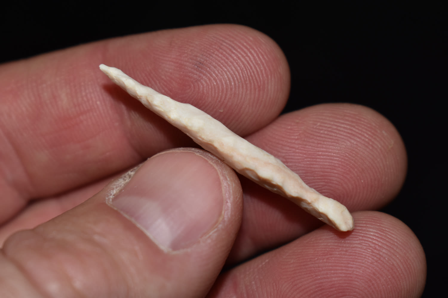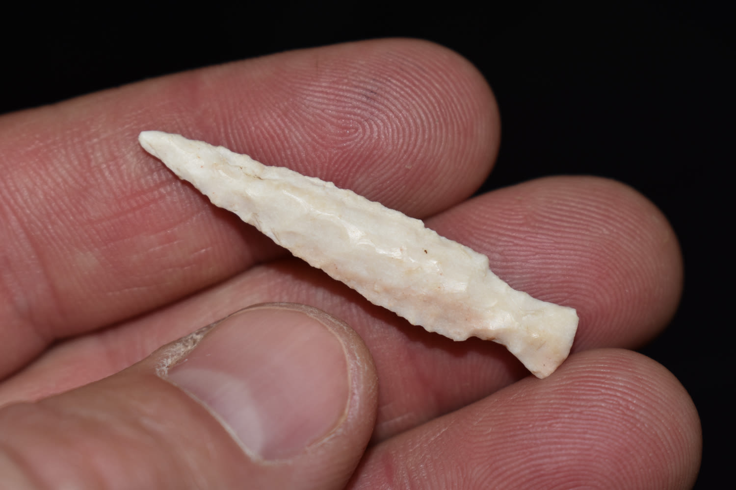 INCREDIBLE BIRDPOINT FOUND IN ST CLAIR COUNTY ILLINOIS, 1 5/8″ LONG AND SLENDER, INDIAN ARROWHEAD, ARTIFACT
