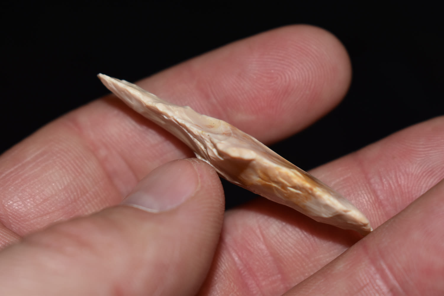 2″ DICKSON CHISEL TIP DRILL FOUND IN ADAMS COUNTY ILLINOIS, INDIAN ARROWHEAD, ARTIFACT