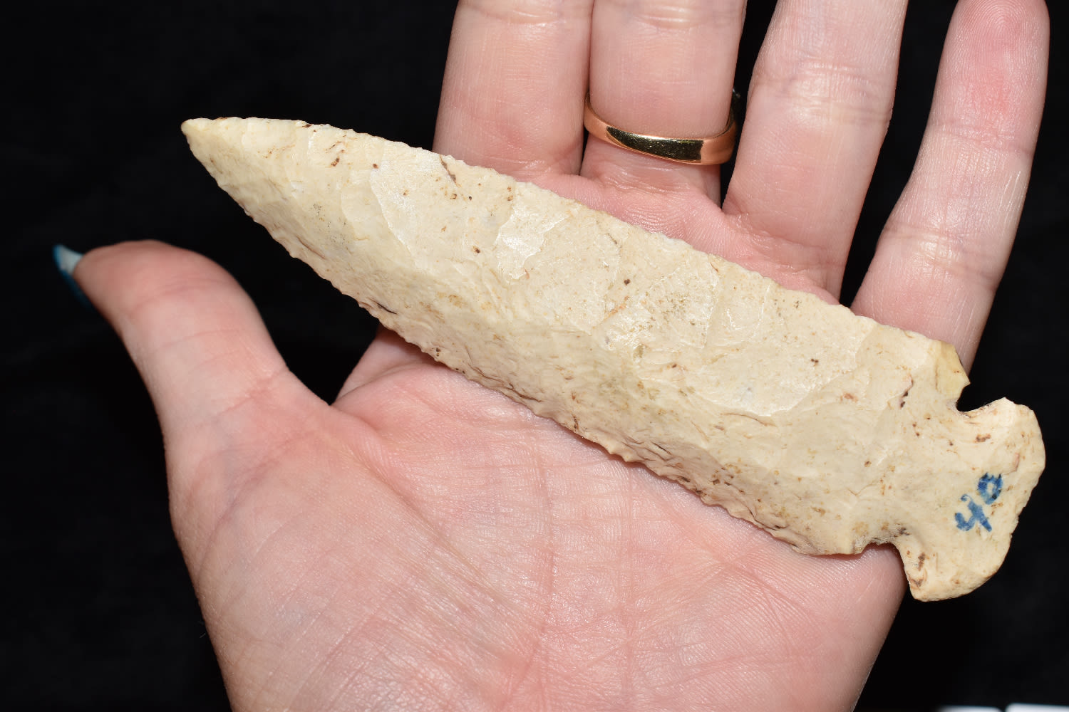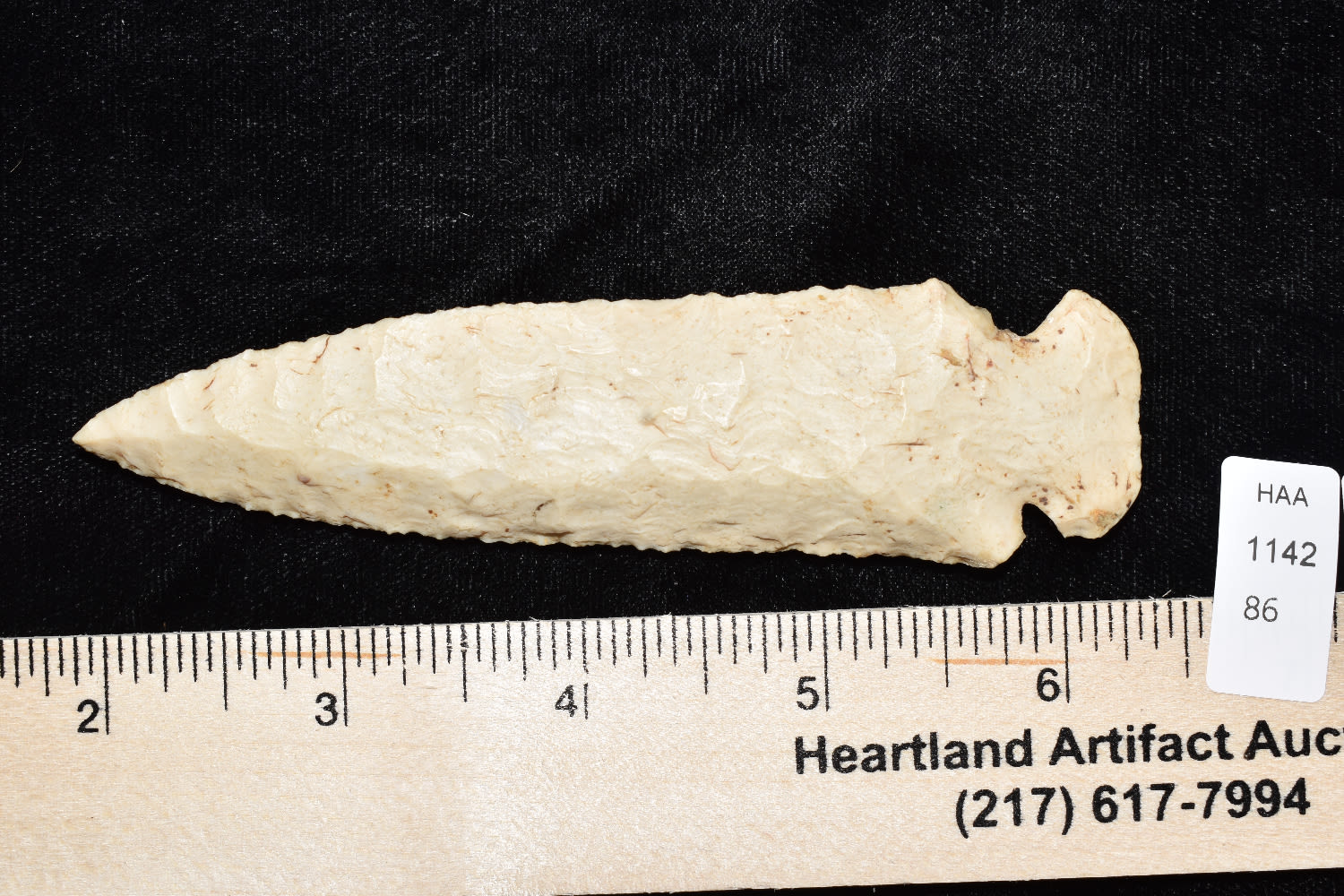 4 1/2″ DOVETAIL FOUND IN FULTON COUNTY ILLINOIS, EX MITCH LEWIS, INDIAN ARROWHEAD, NATIVE AMERICAN ARTIFACT