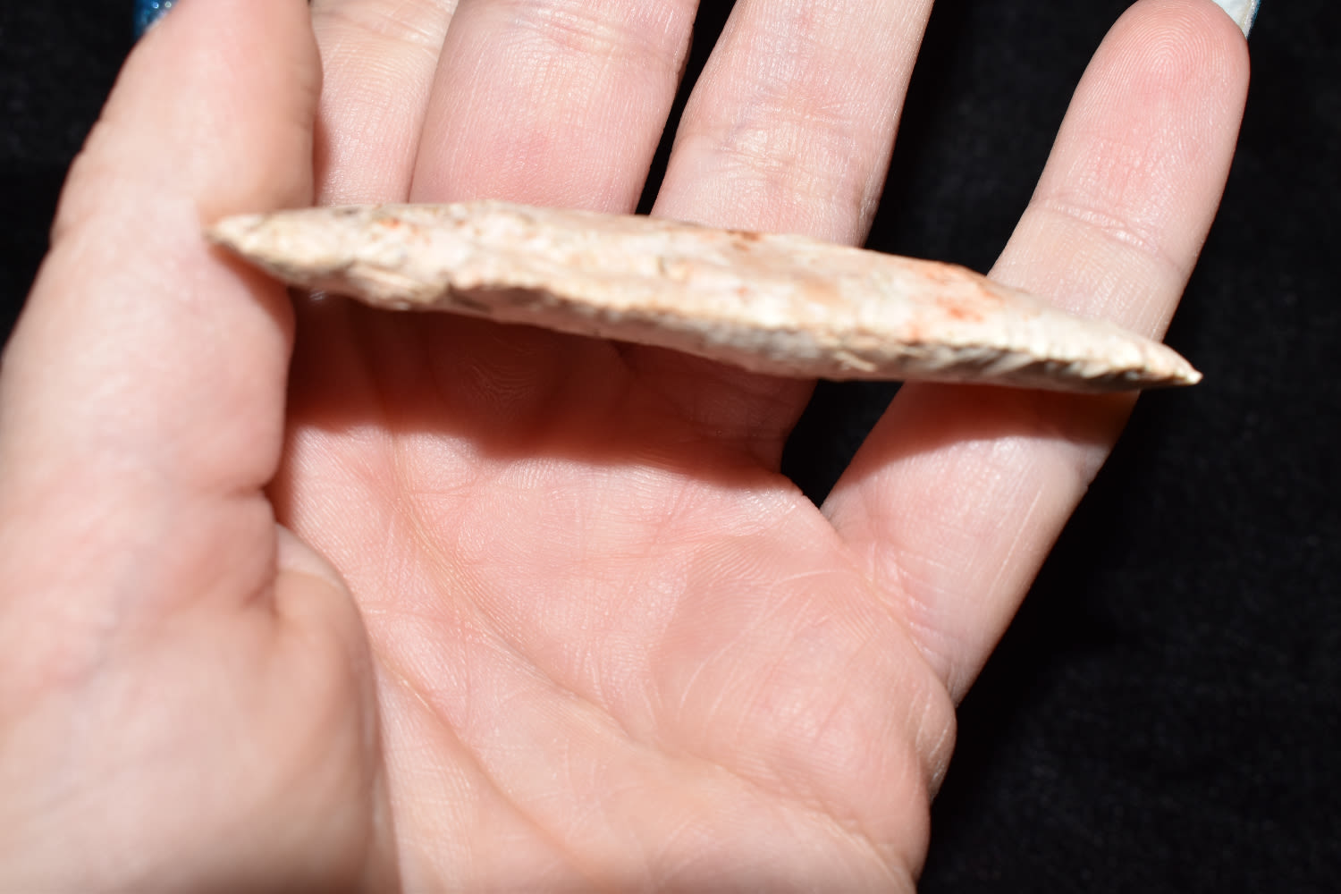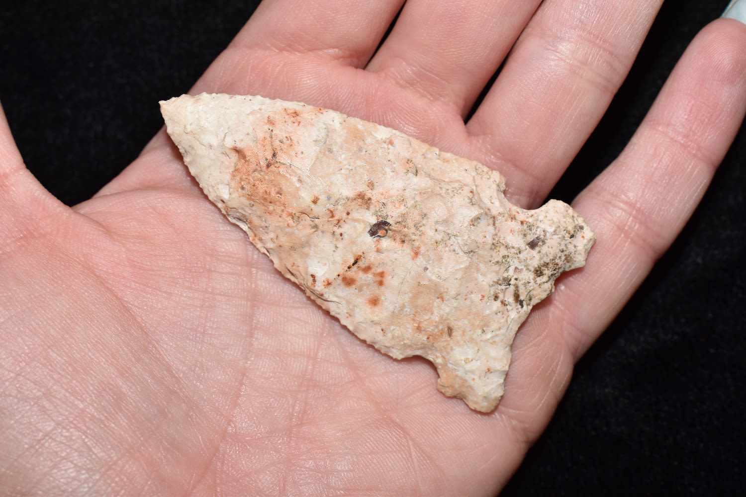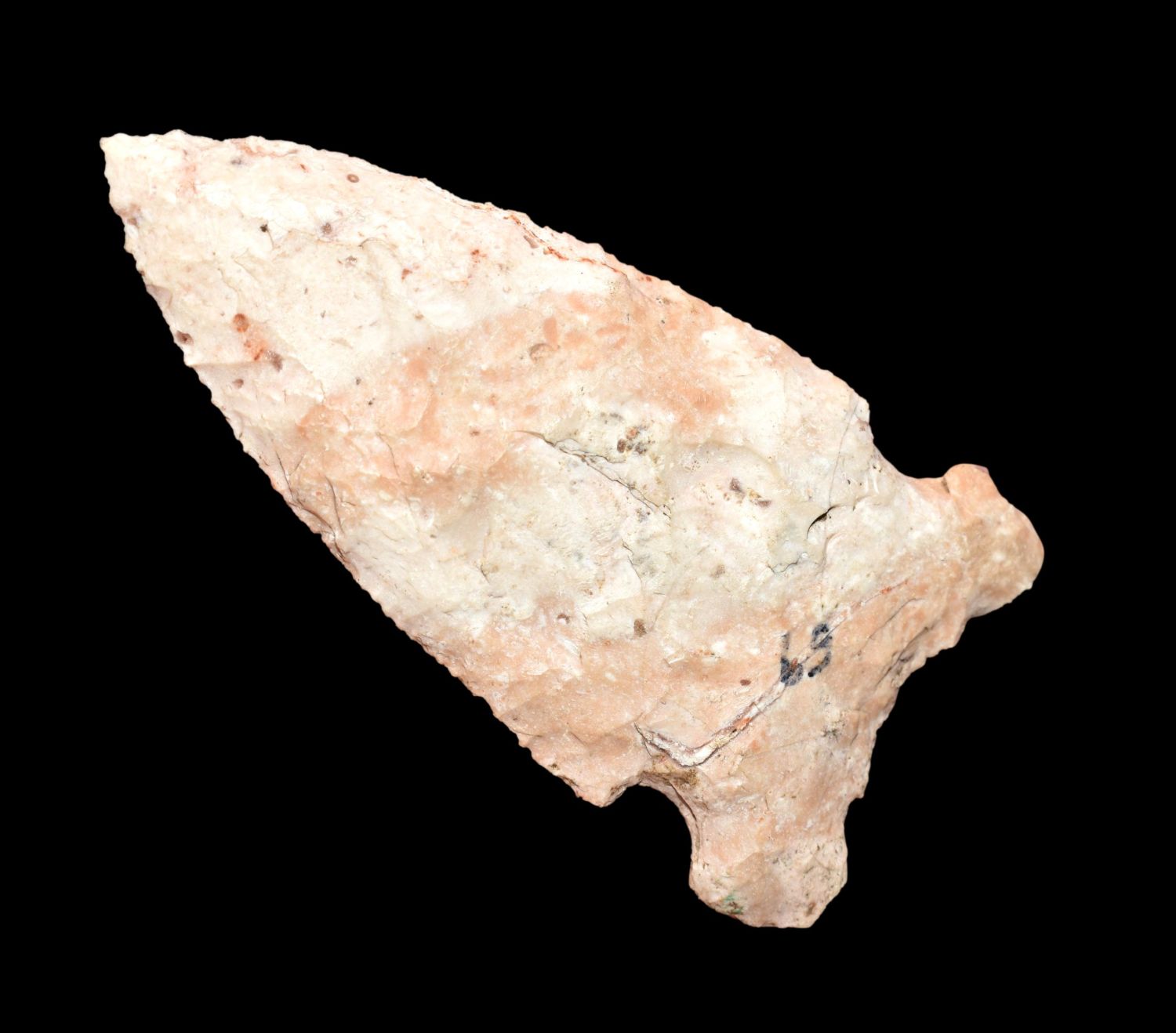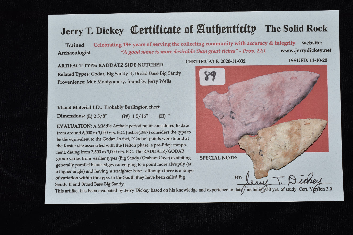 2 5/8″ RADDATZ SIDE NOTCH, DICKEY COA, FOUND BY JERRY WELLS IN MONTGOMERY COUNTY MISSOURI, INDIAN ARROWHEAD