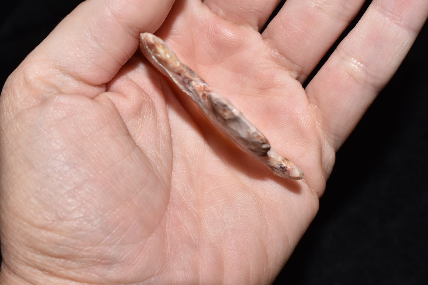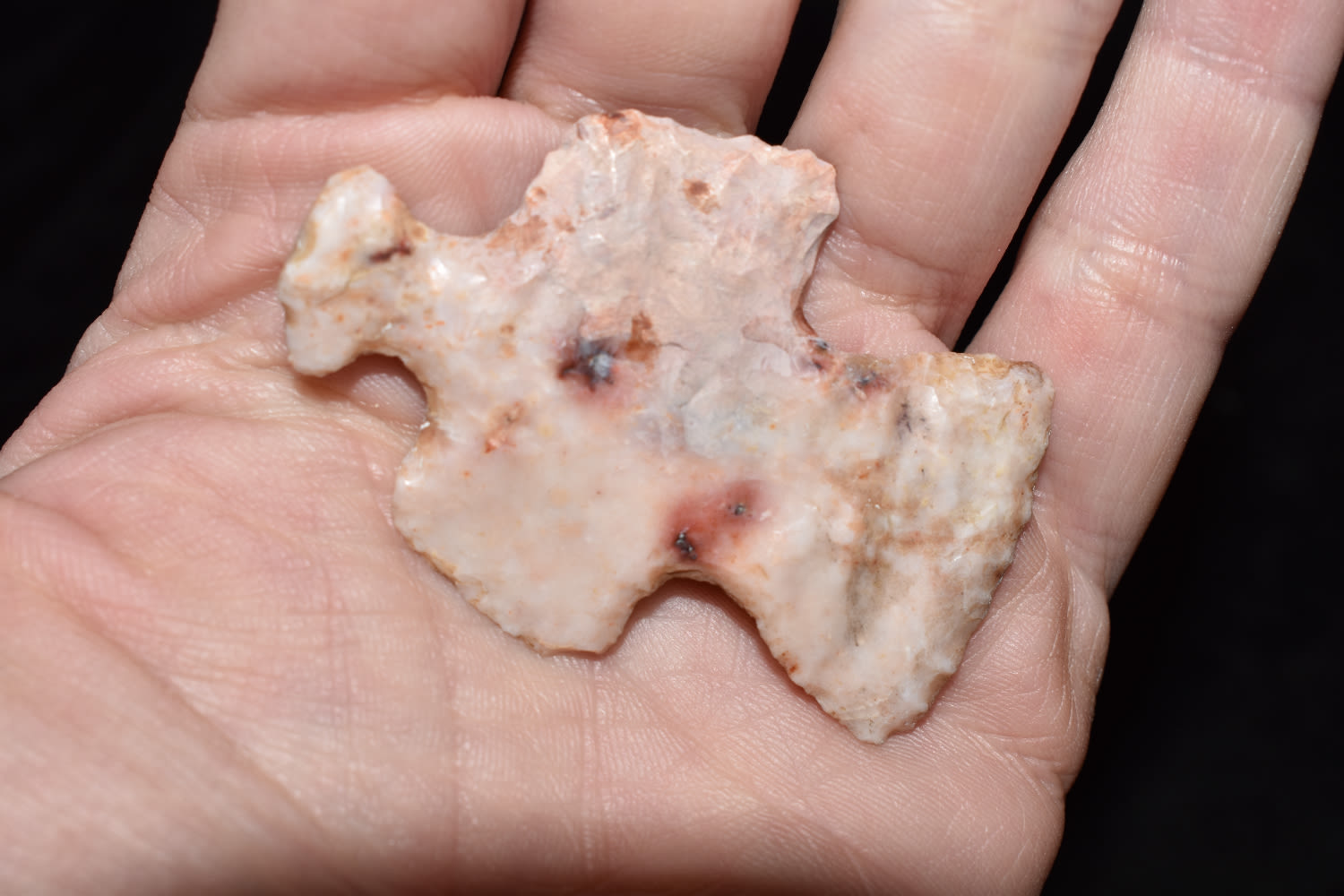 RARE 2″ HOPEWELL FLINT BIRD EFFIGY, ONE WING RESTORED, FOUND IN CALHOUN COUNTY ILLINOIS BY WAYNE CROW