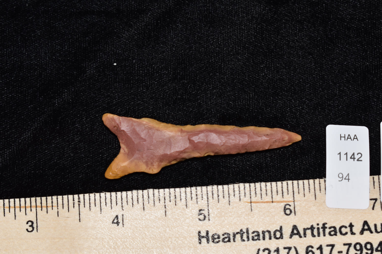 COLORFUL 2 3/8″ DALTON DRILL FOUND IN DUNKLIN COUNTY MISSOURI, GREAT COLOR, NATIVE AMERICAN INDIAN ARTIFACT