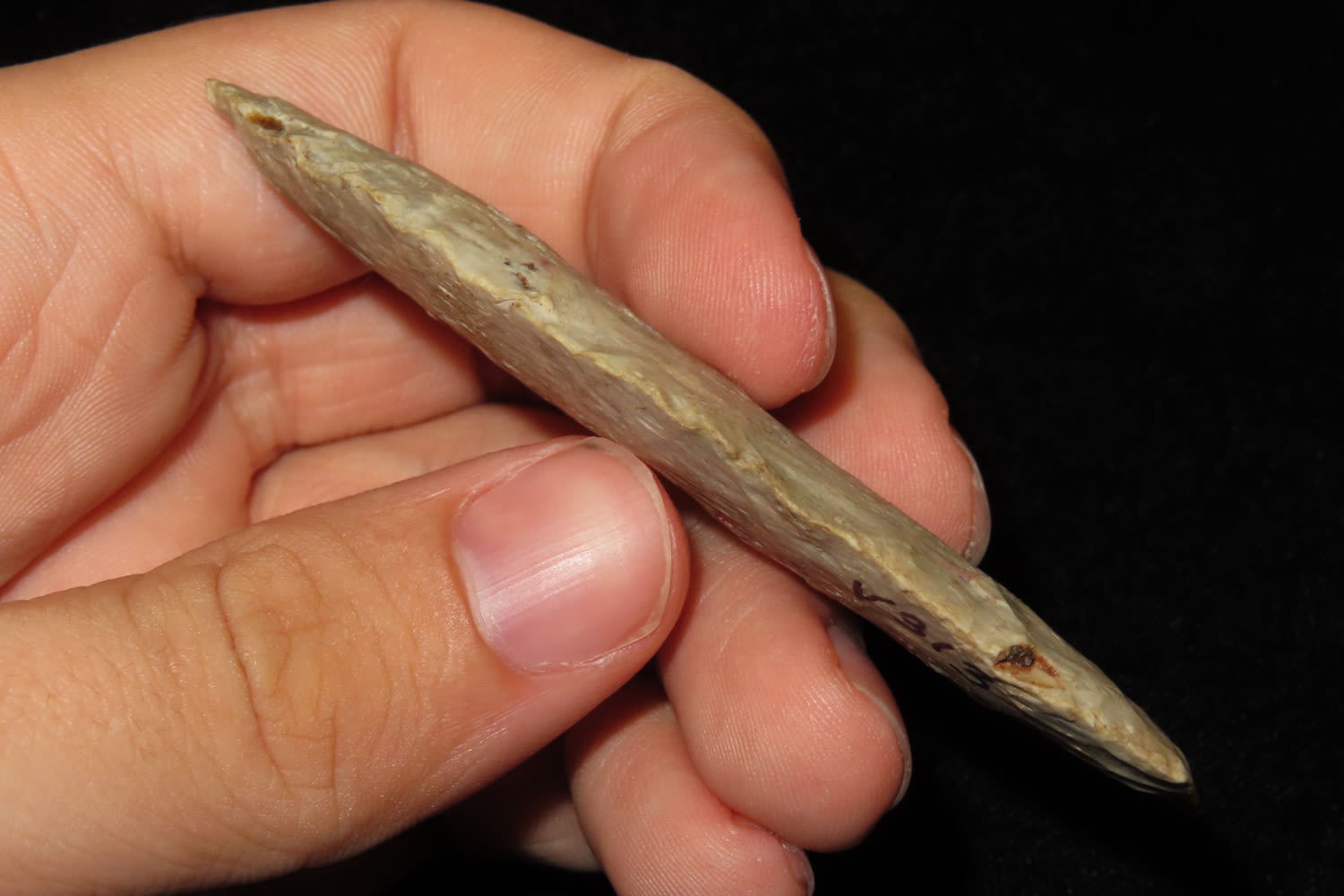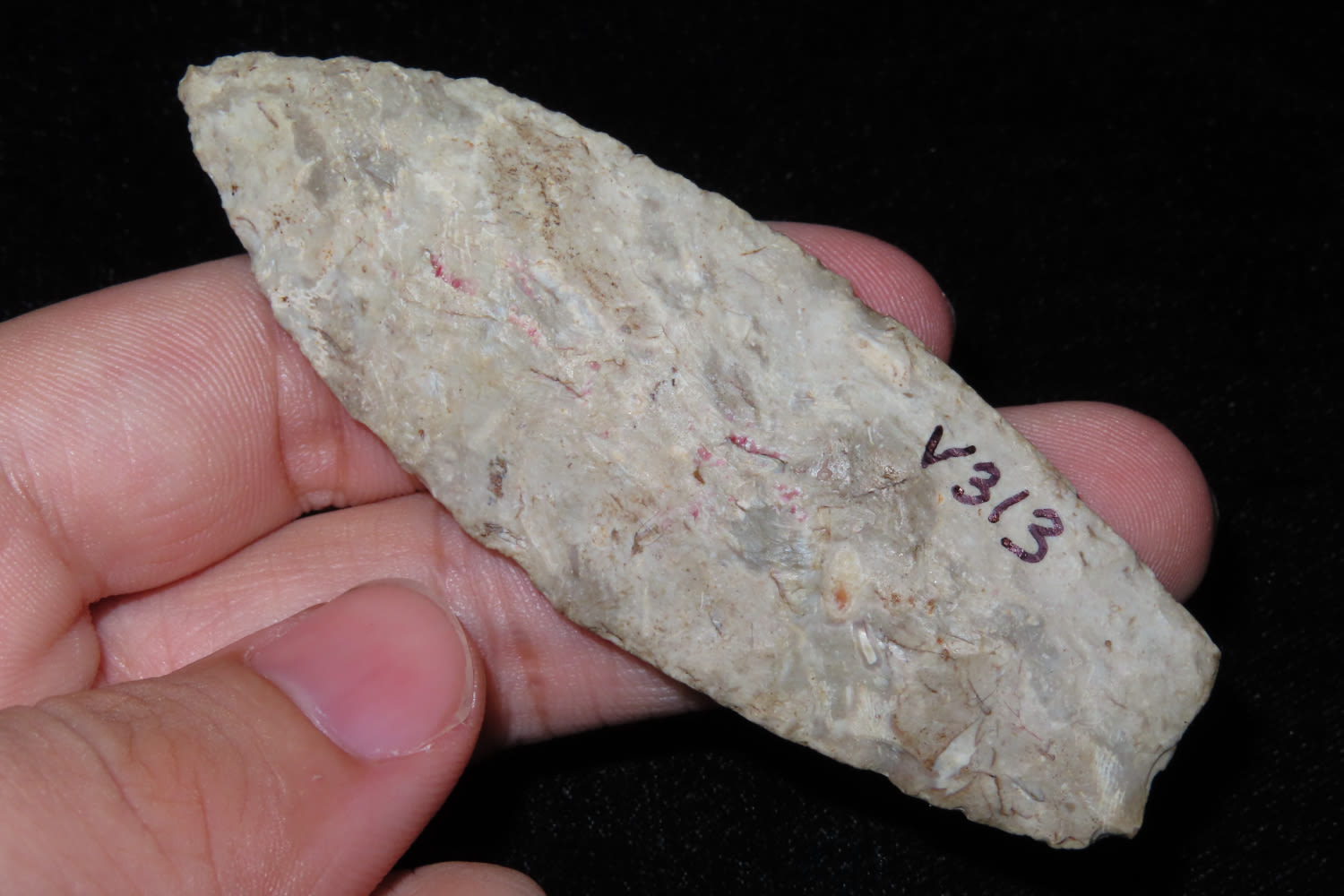 3 3/8″ Agate Basin found in Parke Co Indiana by Bob Flynn Ex Dave Vanderwall Fine Basal Grinding and banding in the material.