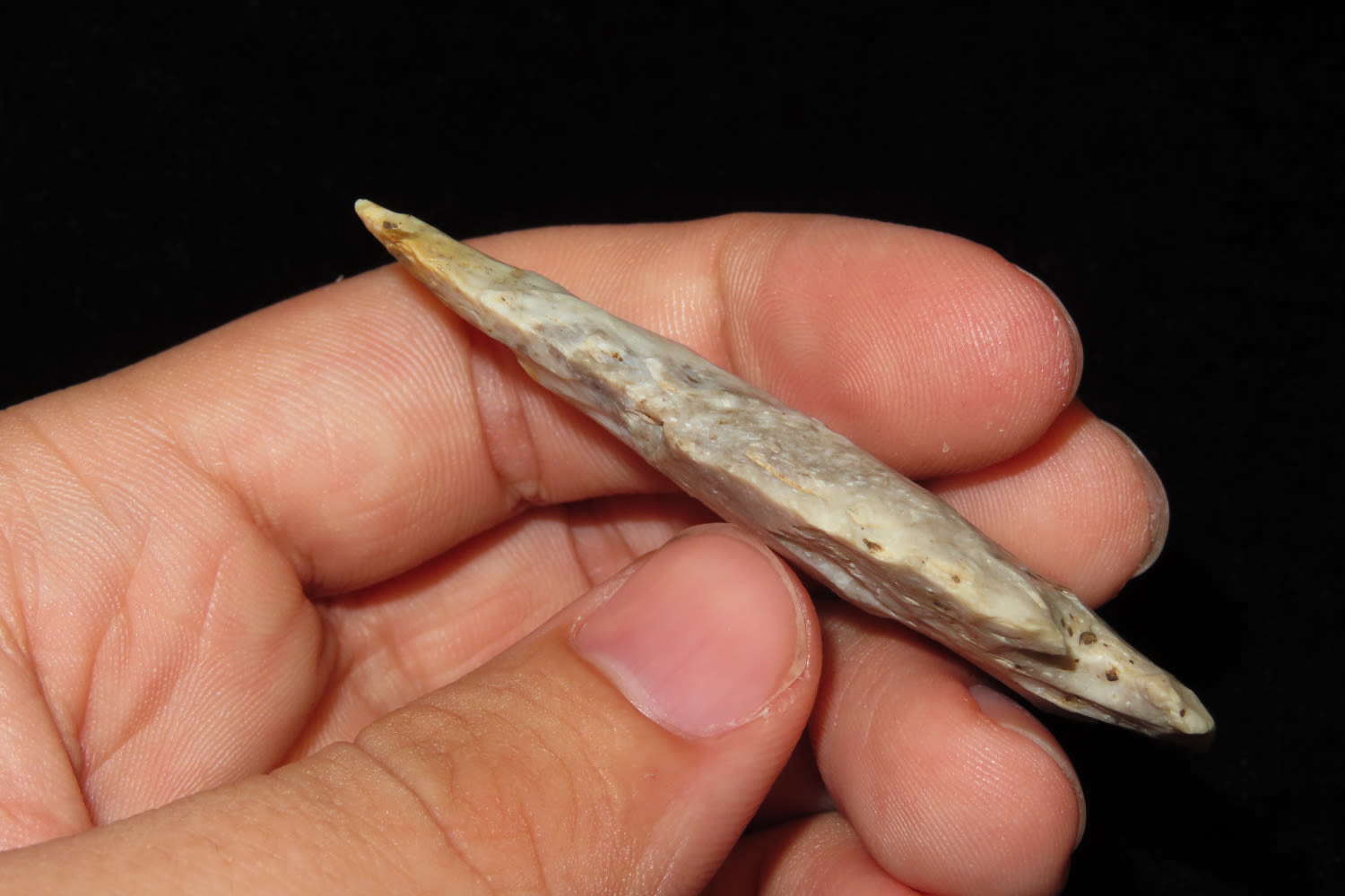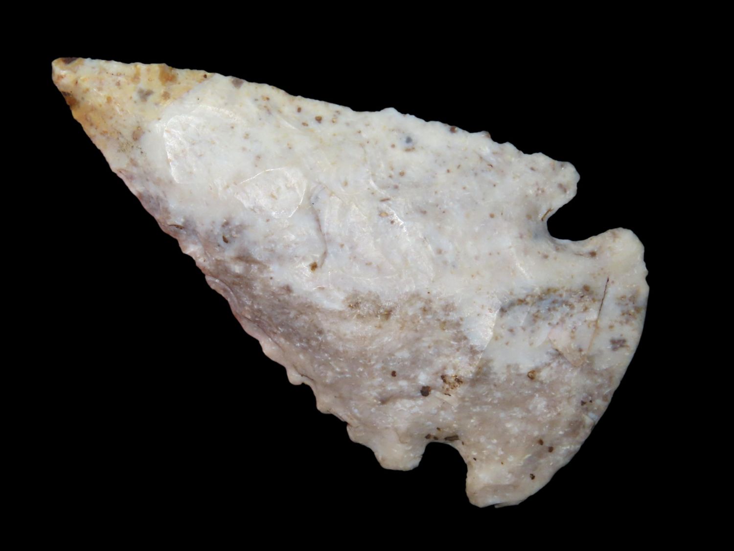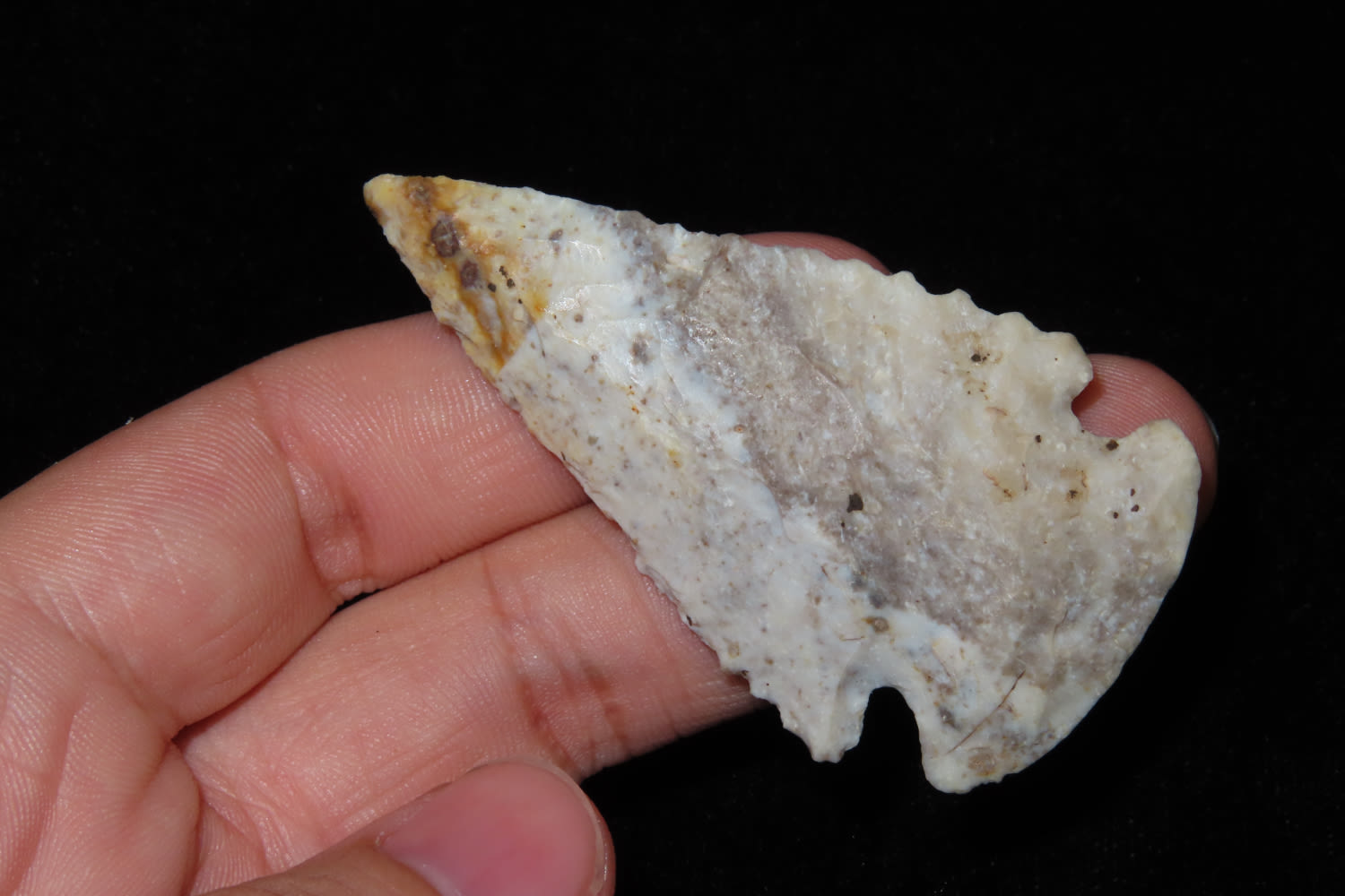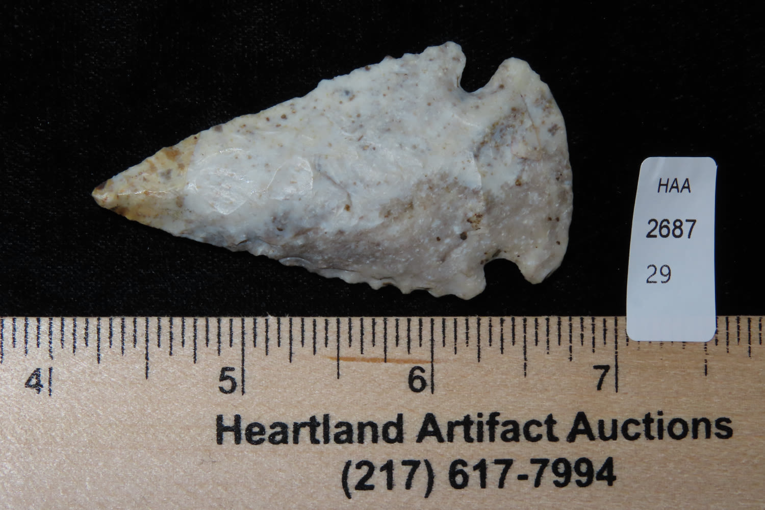 2 5/8″ Dovetail Made of Avon Chert. The piece has nice banding and was found in southern Illinois.