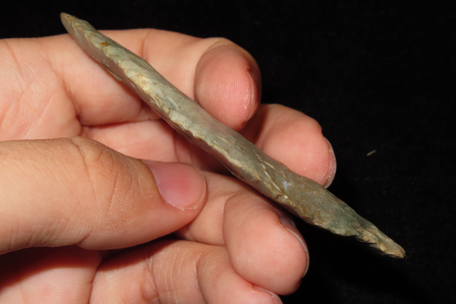 3 5/8″ Blade Made of Indiana Green Found in the 1960s in Linton Indiana. Greene County by Don Collision.