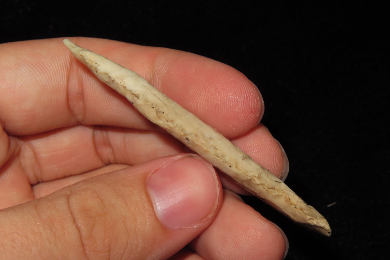 2 5/8″ Drill From Lake Co Illinois. Made of Burlington Chert. Found in Lake County Illinois Ex Gene Weirisma