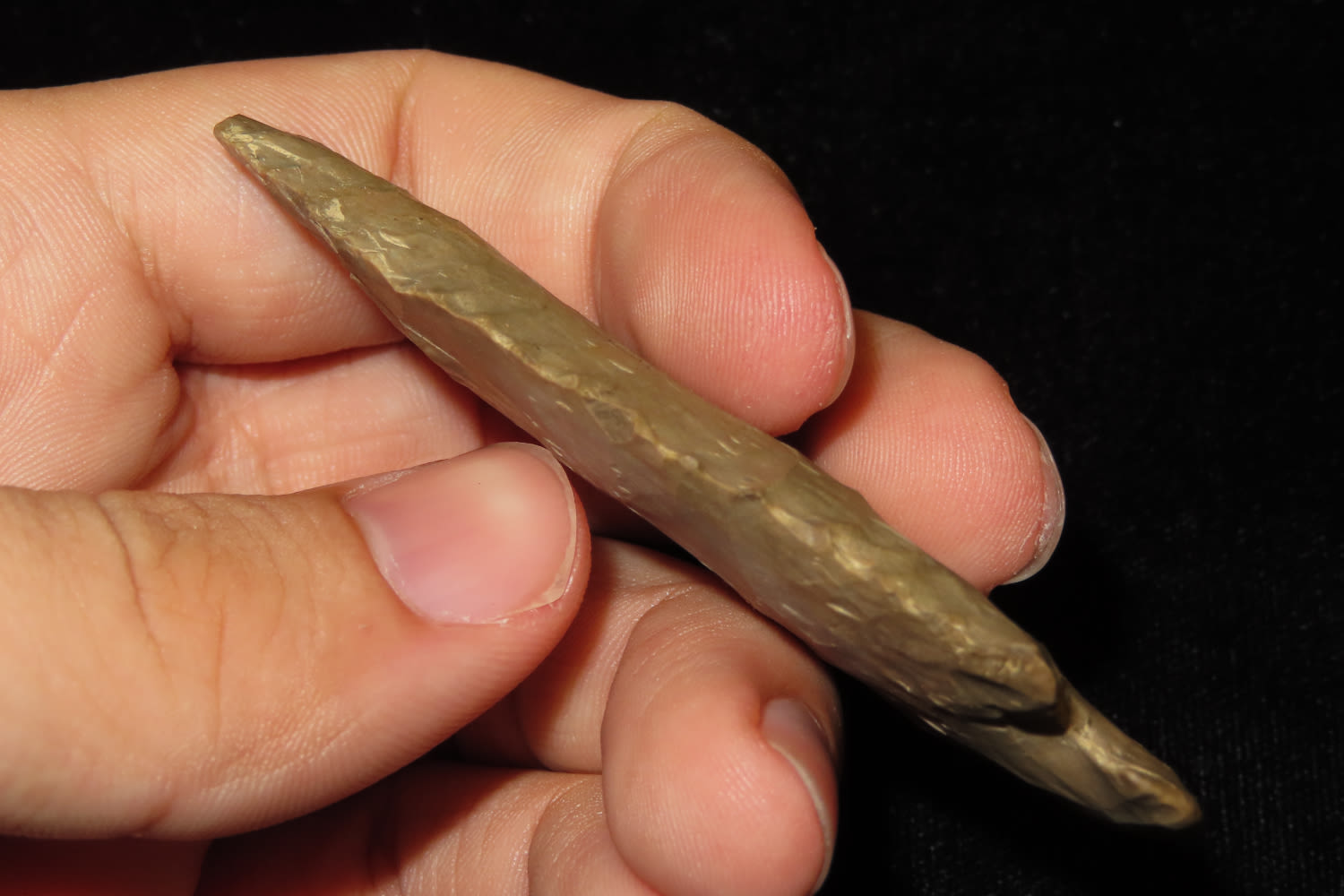 3 1/8″ Dovetail from Kentucky. This piece is made of fort payne chert.
