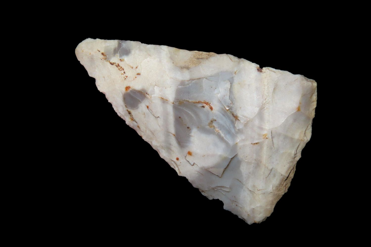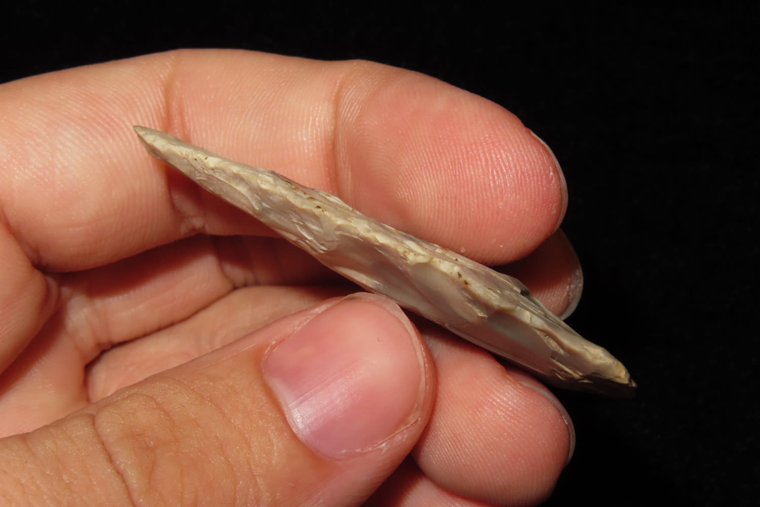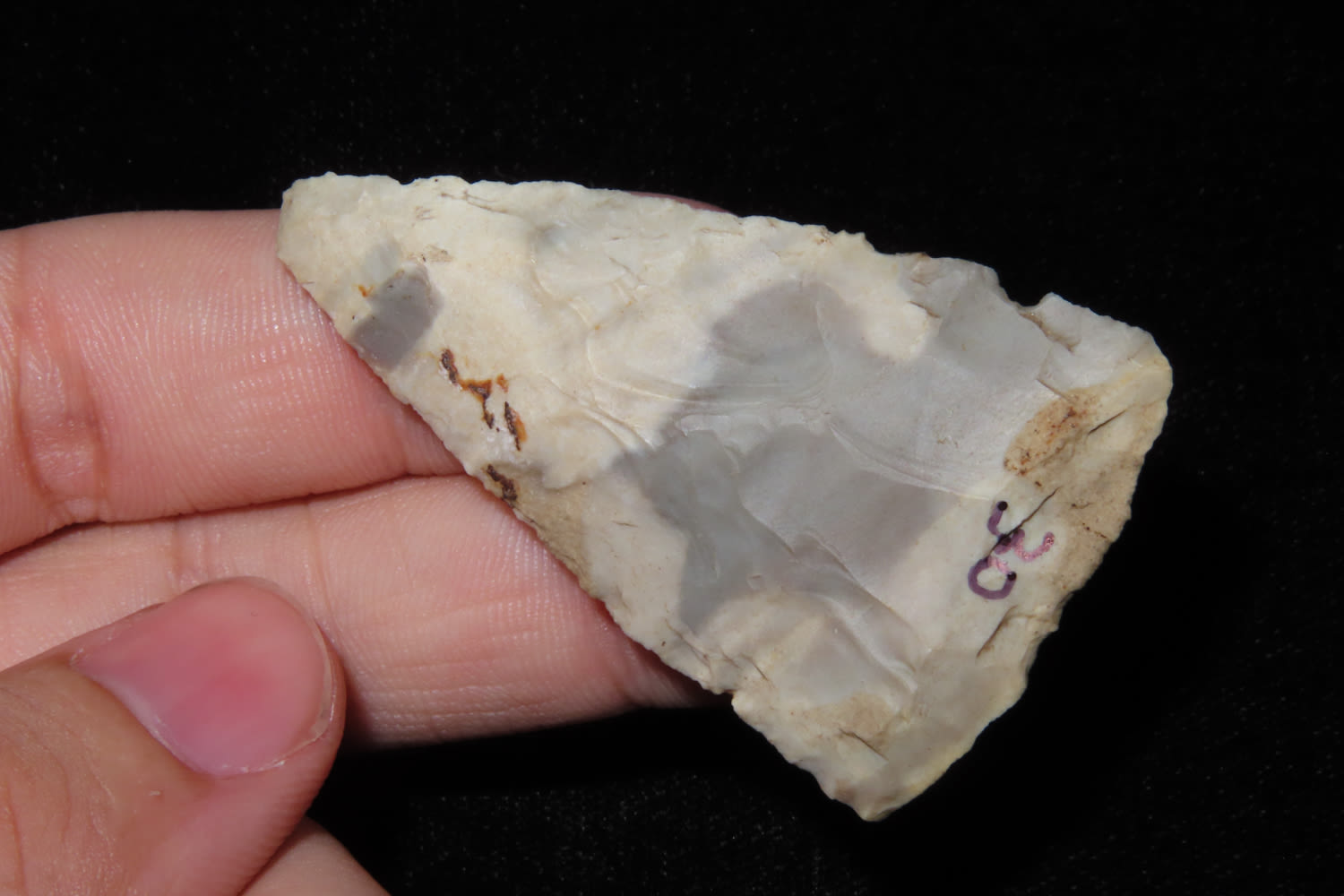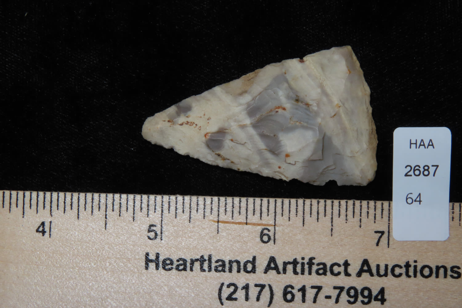 2 1/8″ Madison Triangle Made from a banded Kenneth Chert found in the 1960s In Greene Co Indiana Near the town of Linton by Don Collision