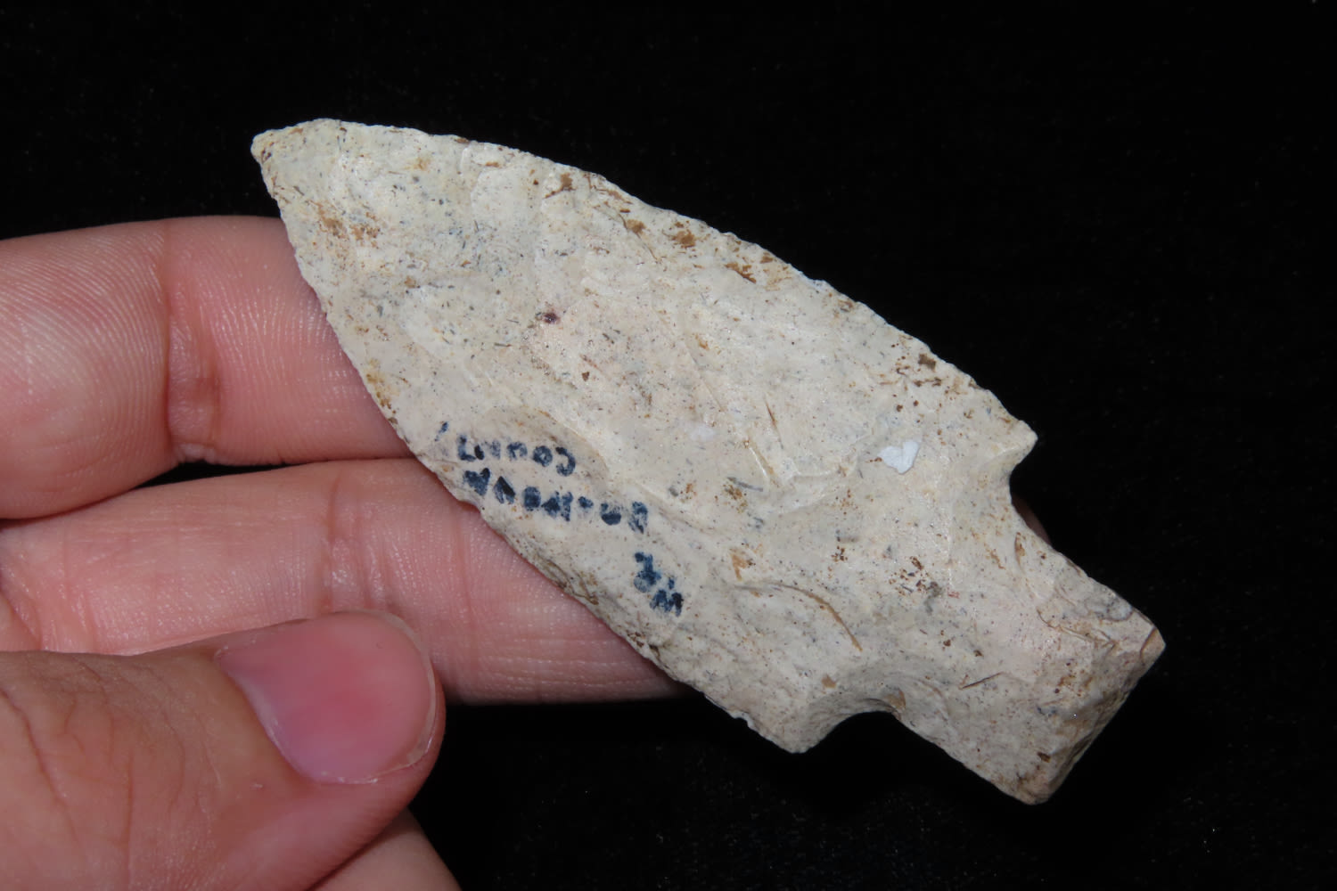 3″ Square Stem Point made of Burlington Chert From Calhoun Co Illinois