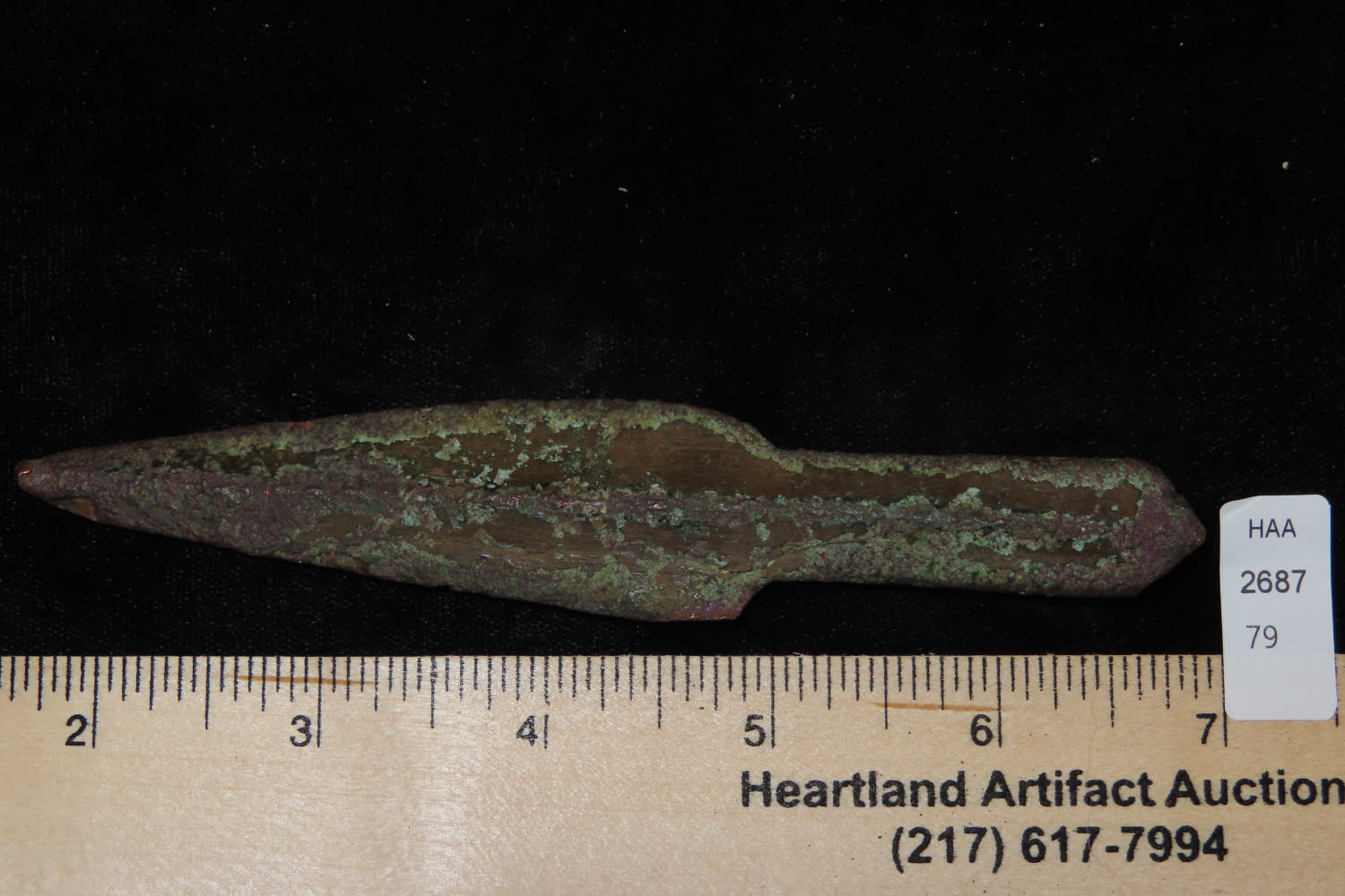 5 1/2″ Socketed Copper Spear Head Found In Marquette Co Wisconsin near the town of Montello Ex Gene Weirsma