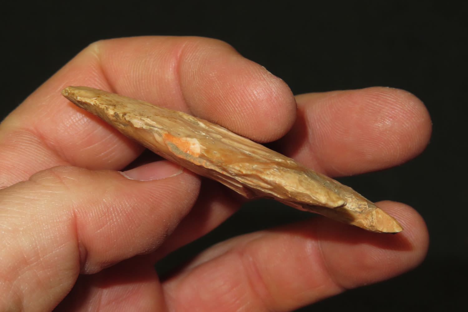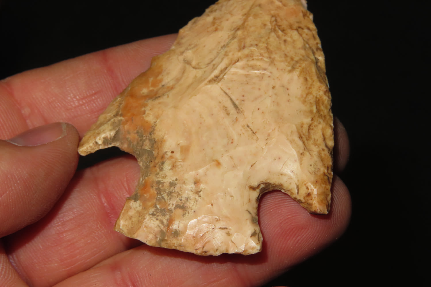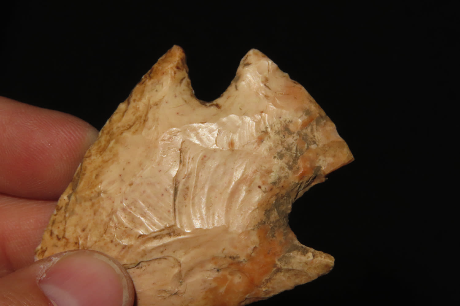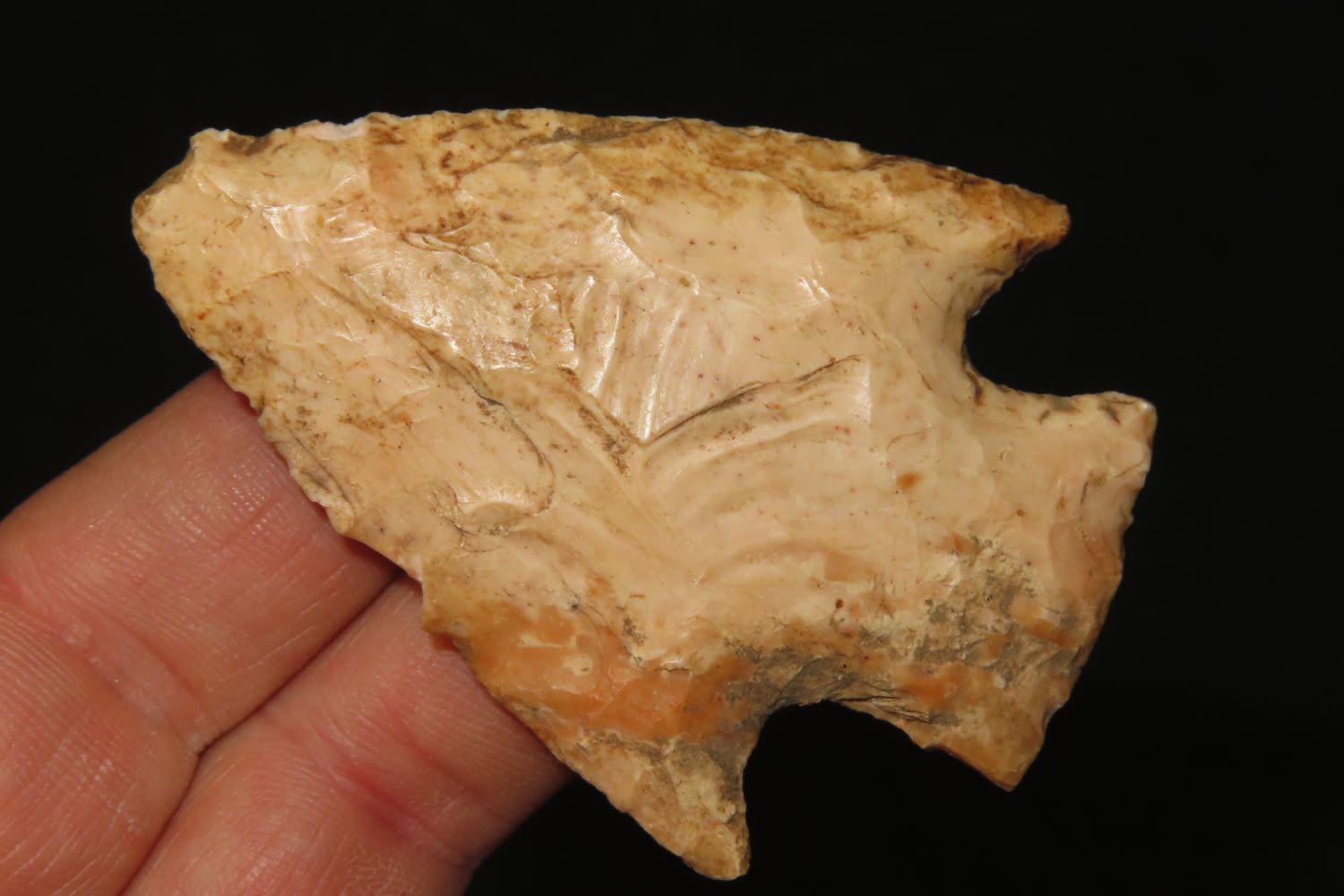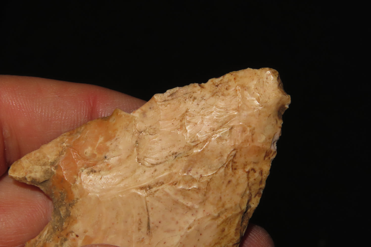 2 3/4" Hopewell Snyders, made of heat-treated Burlington Chert, from the collection of Robert Naderhoff of Quincy Illinois