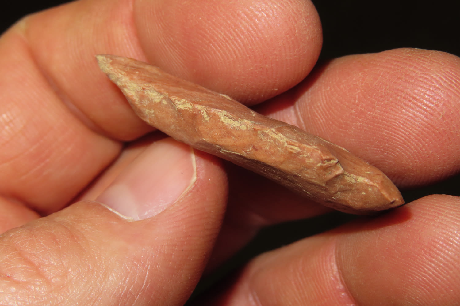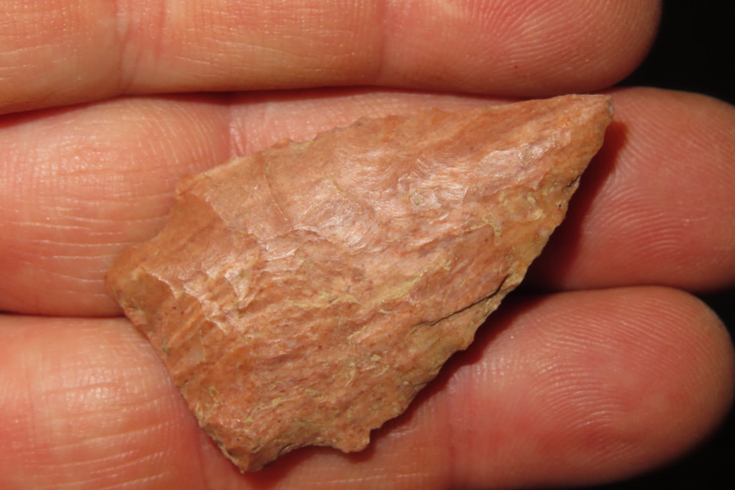 1 3/4″ Archaic Dart, Good red material. Ex Carl Thornton, Southern Illinois