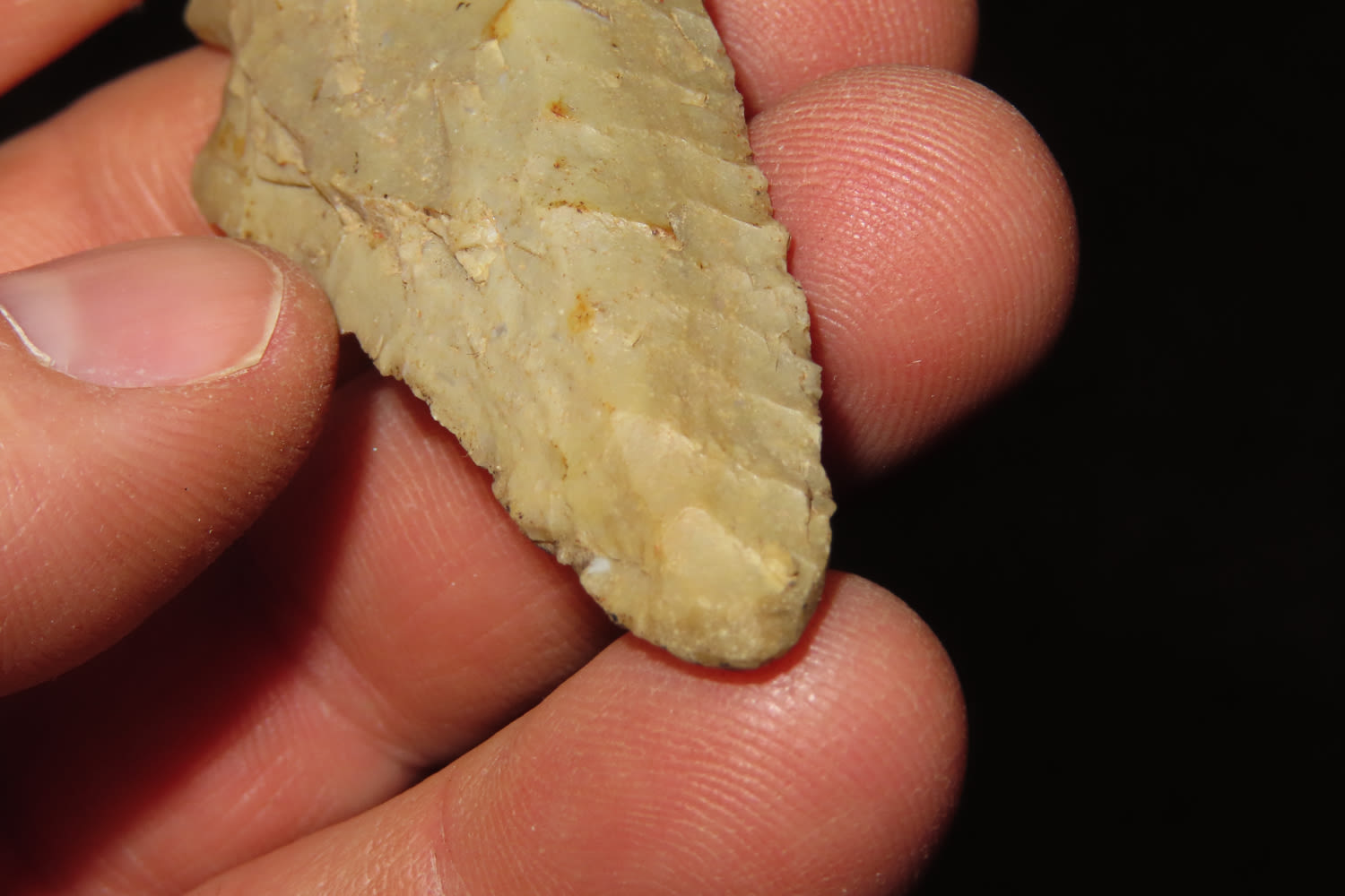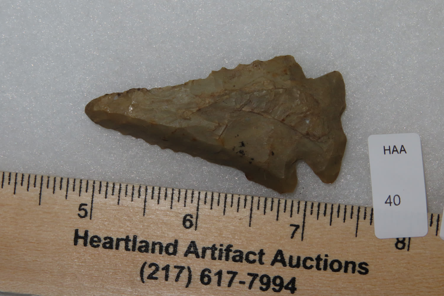 2 1/2″ Lost lake, Modern grinding on the tip, Ex Carl Thornton, Southern Illinois