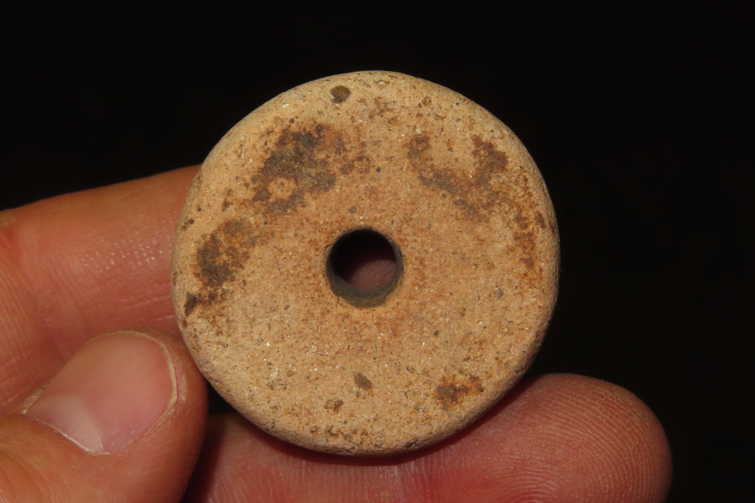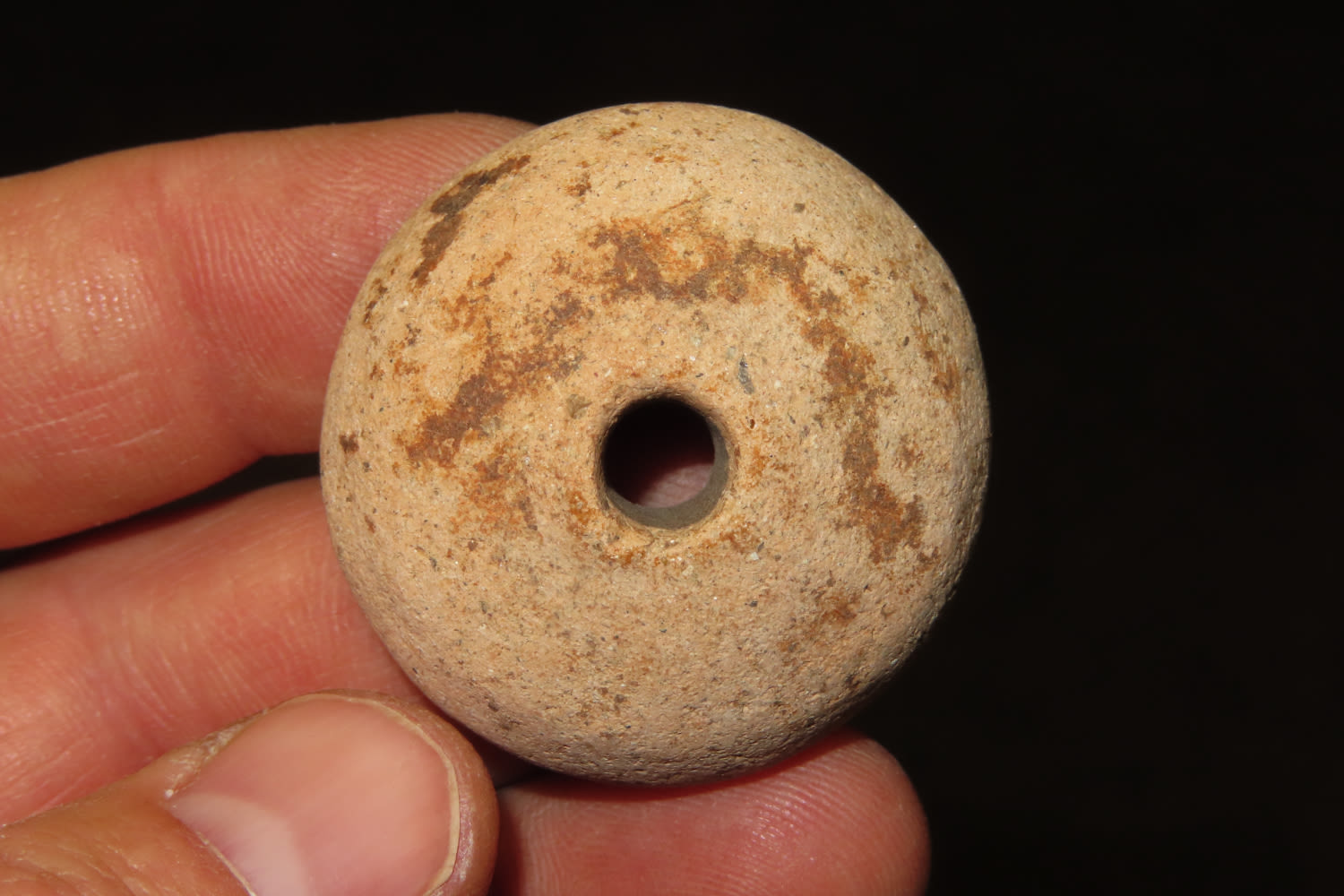 1 3/8″ Pottery Pre Columbian Bead, Ex Charlie Cathers Collection, Illinois