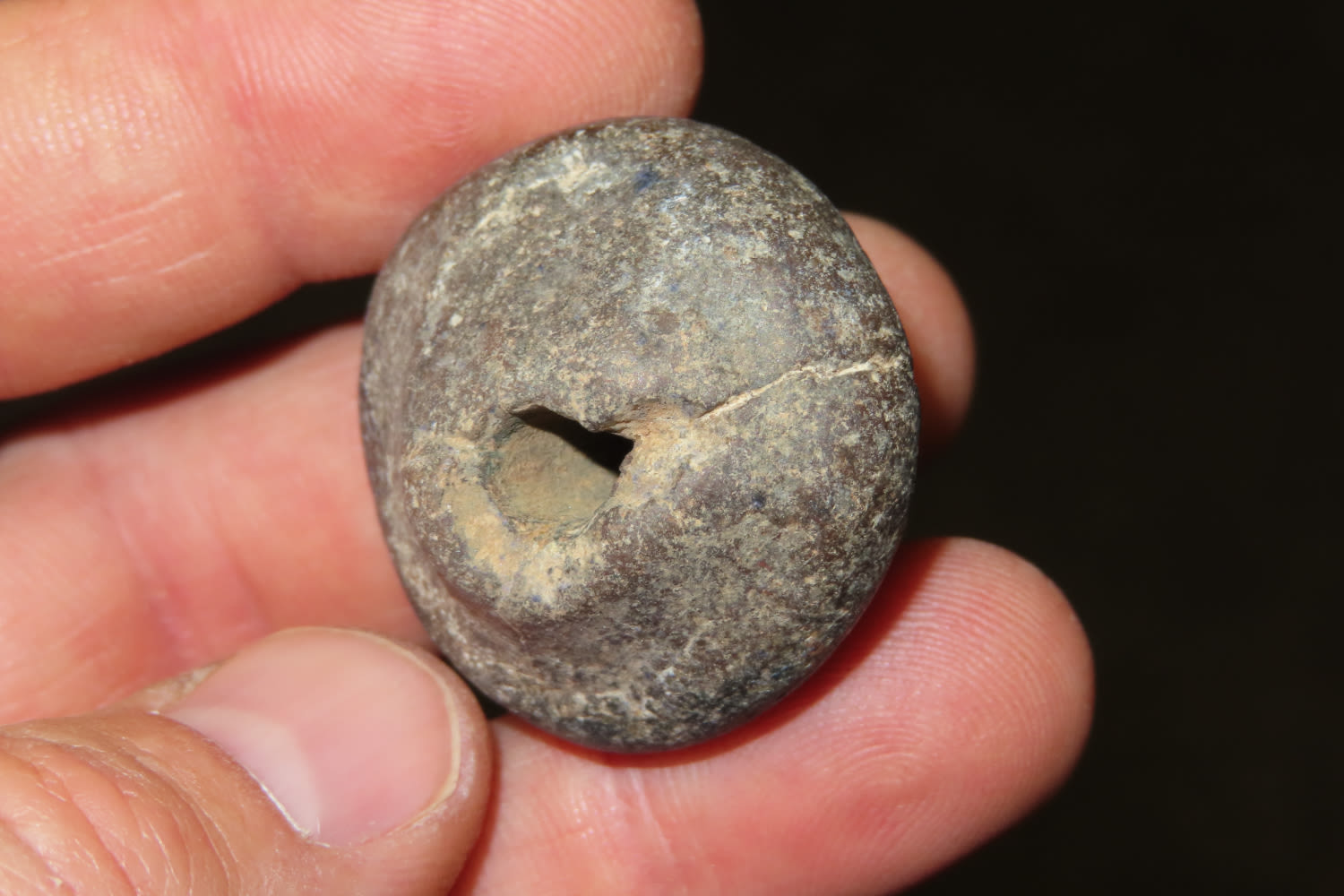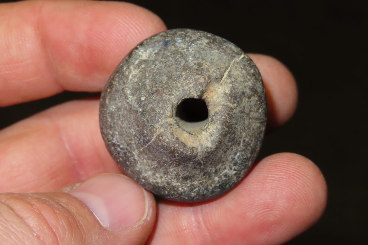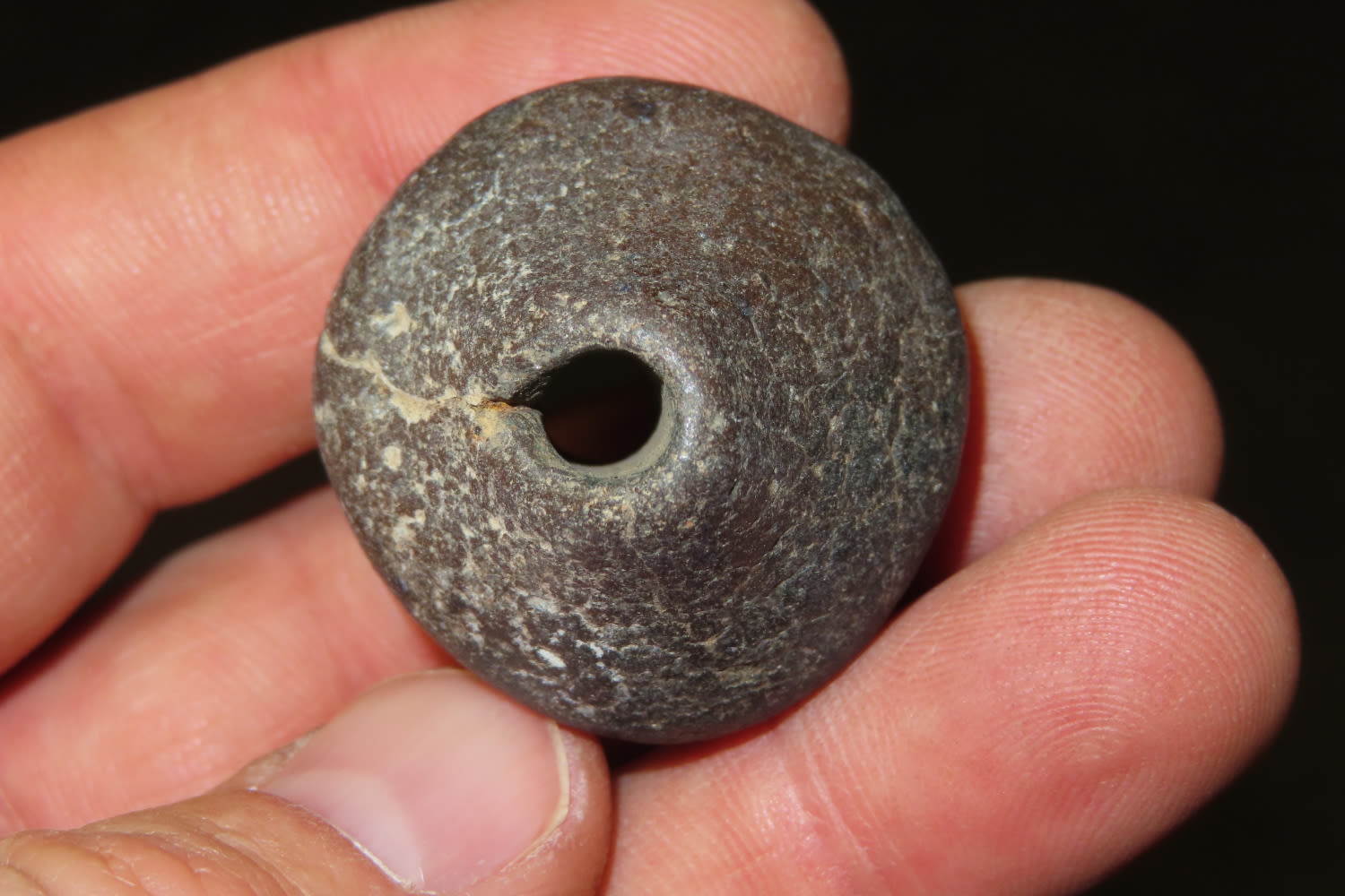 1 1/8″ Pottery Pre Columbian Bead, Ex Charlie Cathers Collection, Illinois