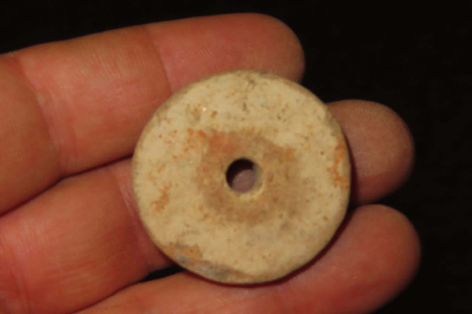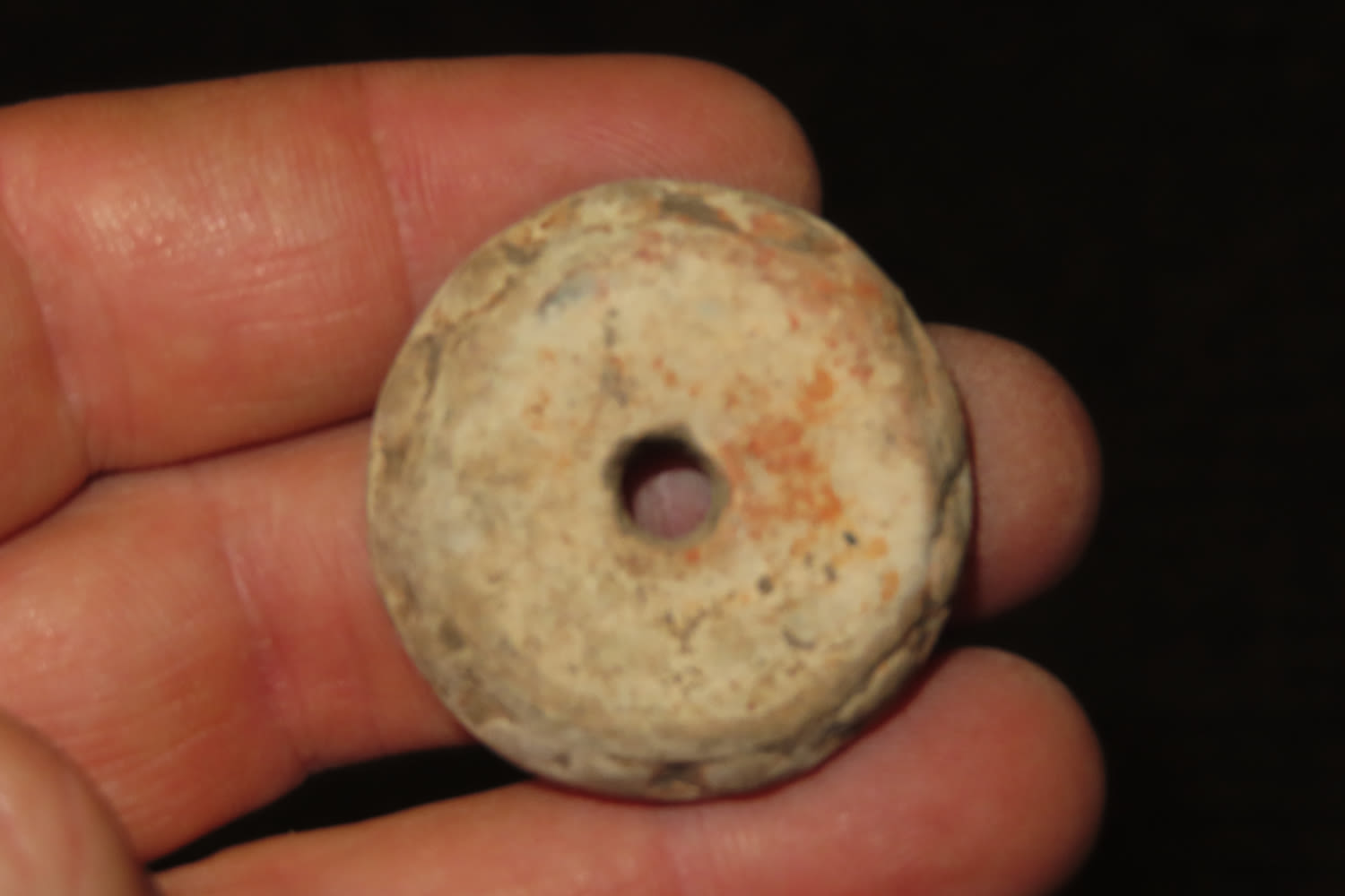 1 3/8″ Pottery Pre Columbian Bead, Ex Charlie Cathers Collection, Illinois