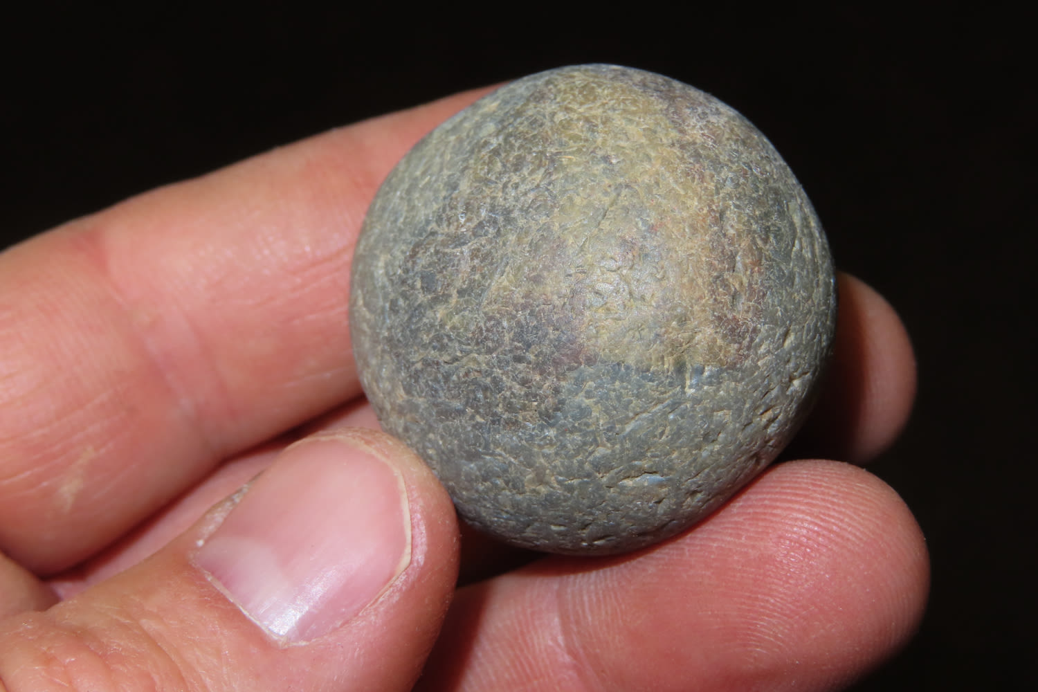 1 3/8″ Game Ball, Dense Quartz material, Found in Scott Co Illinois by Steve Koch