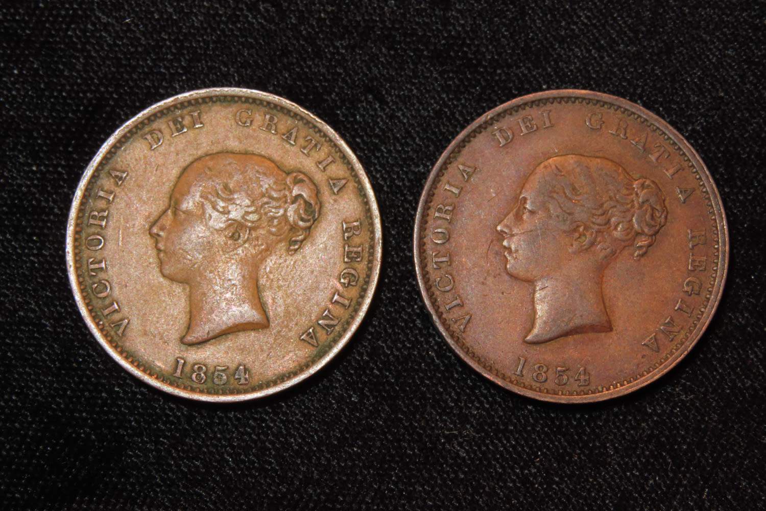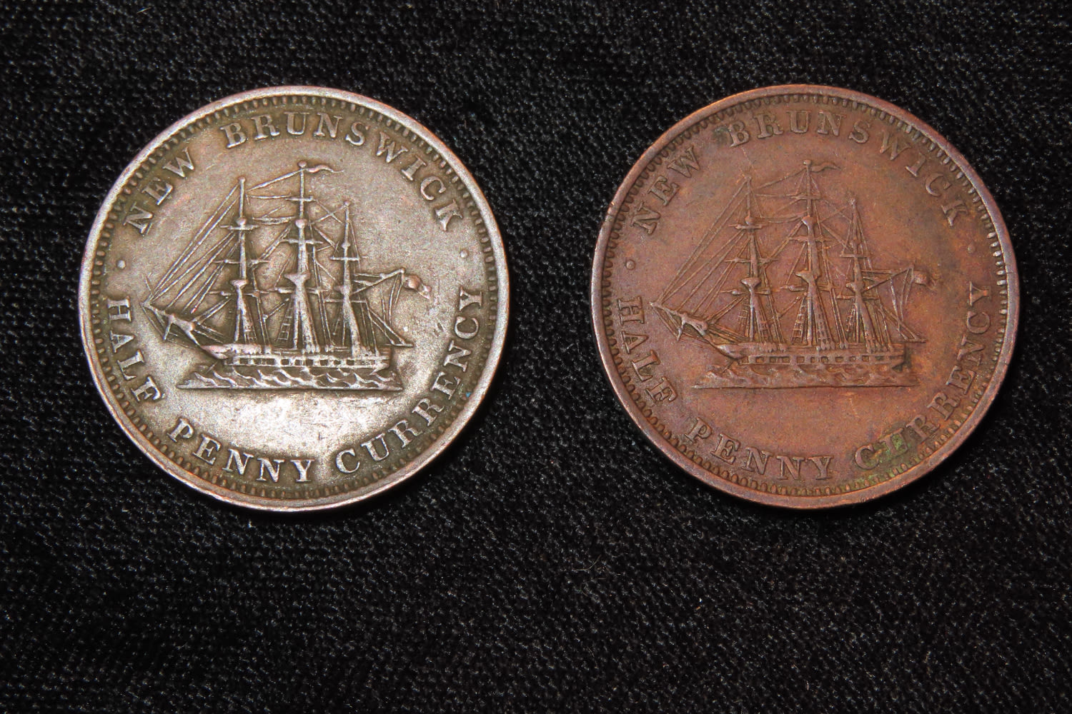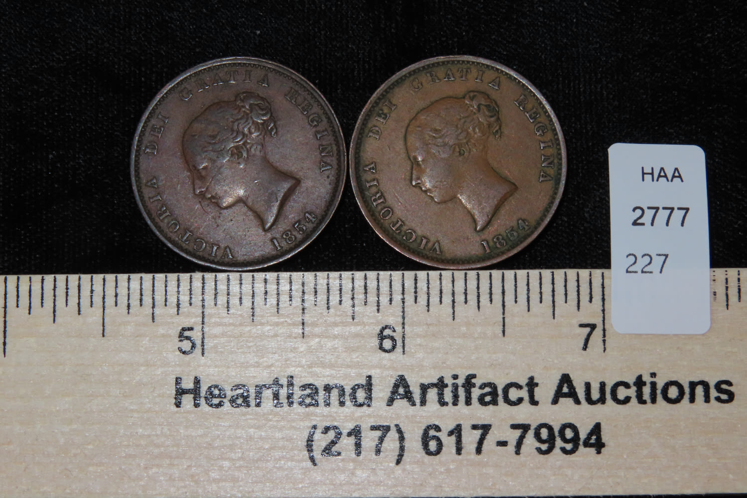 2x Victoria Dei Cratia Regina 1854 New brunswick half penny