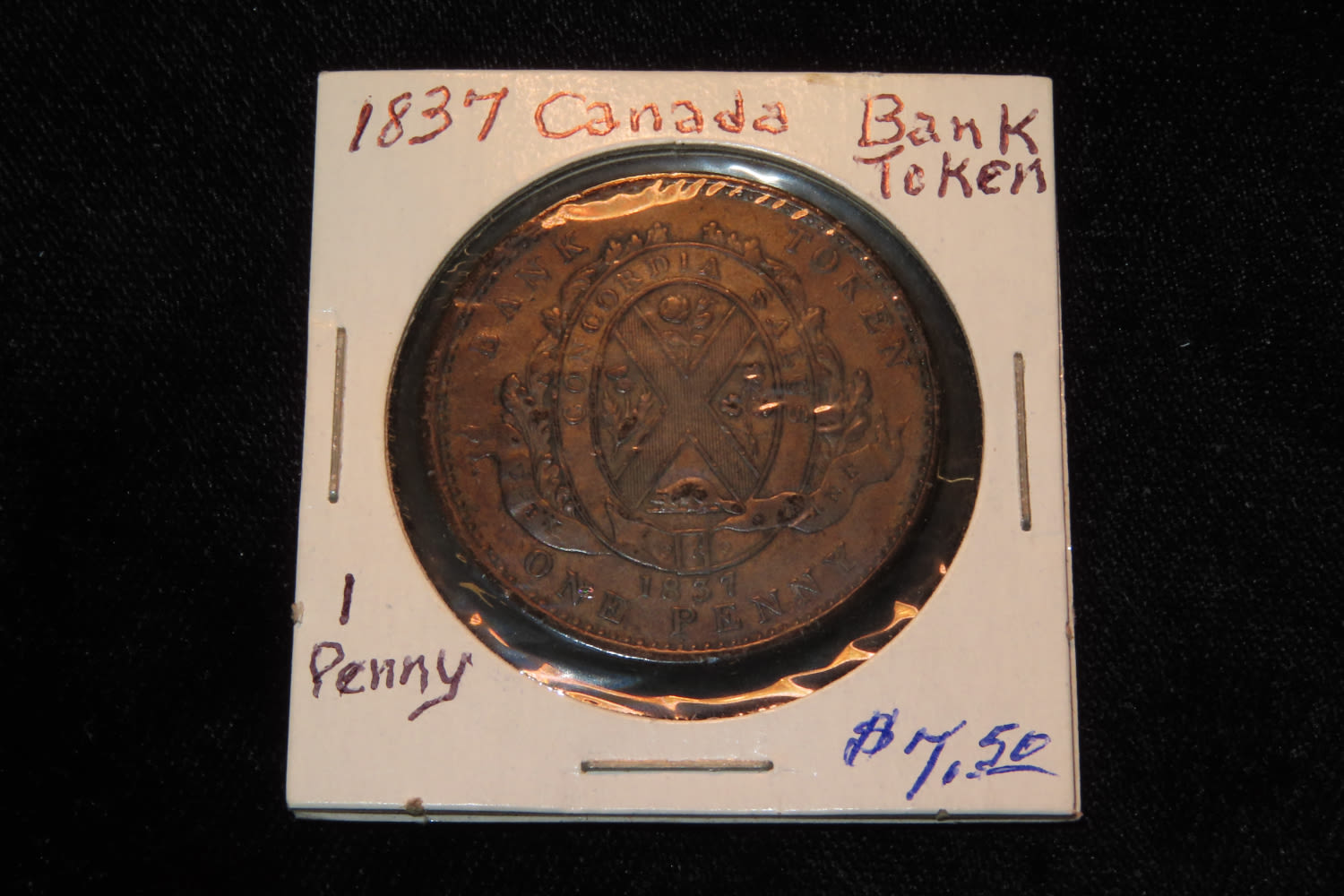 1837 Canada Bank Token 1 penny