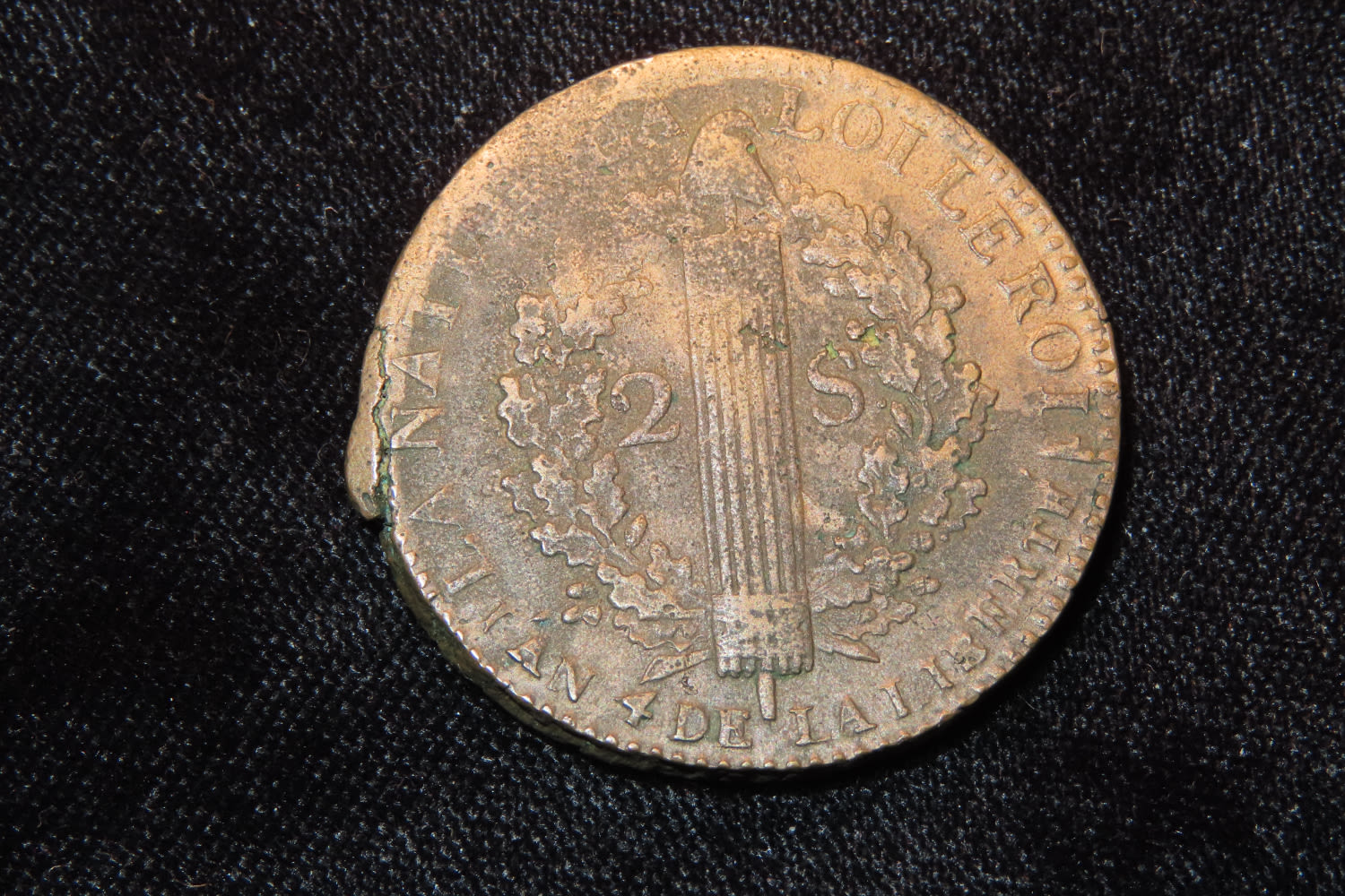 1792 France-Hille 4th Year of Liberty 2 Sols Coin