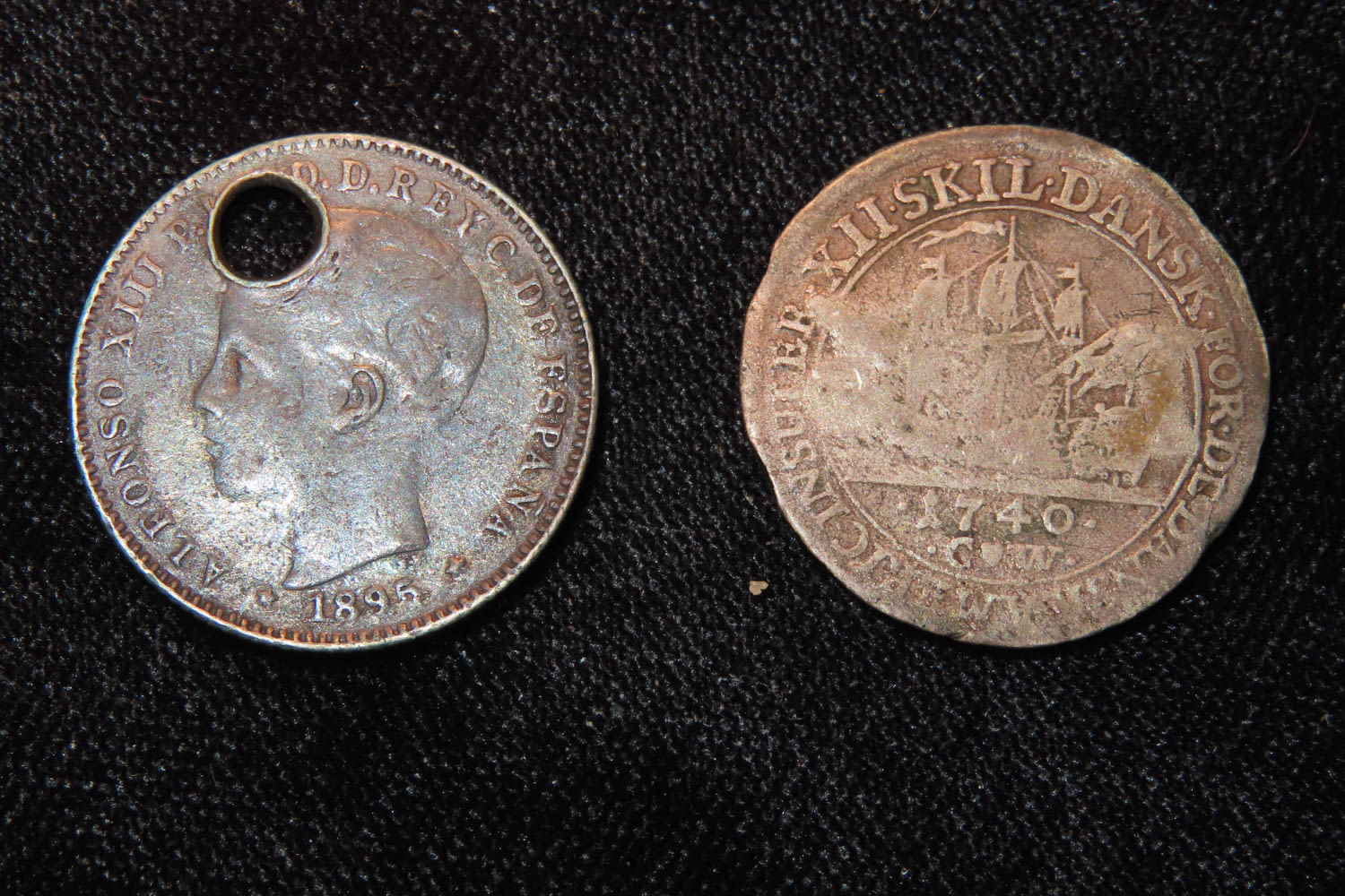 1740 Dansk Antique Coin/ 1895 Spanish Antique Coin