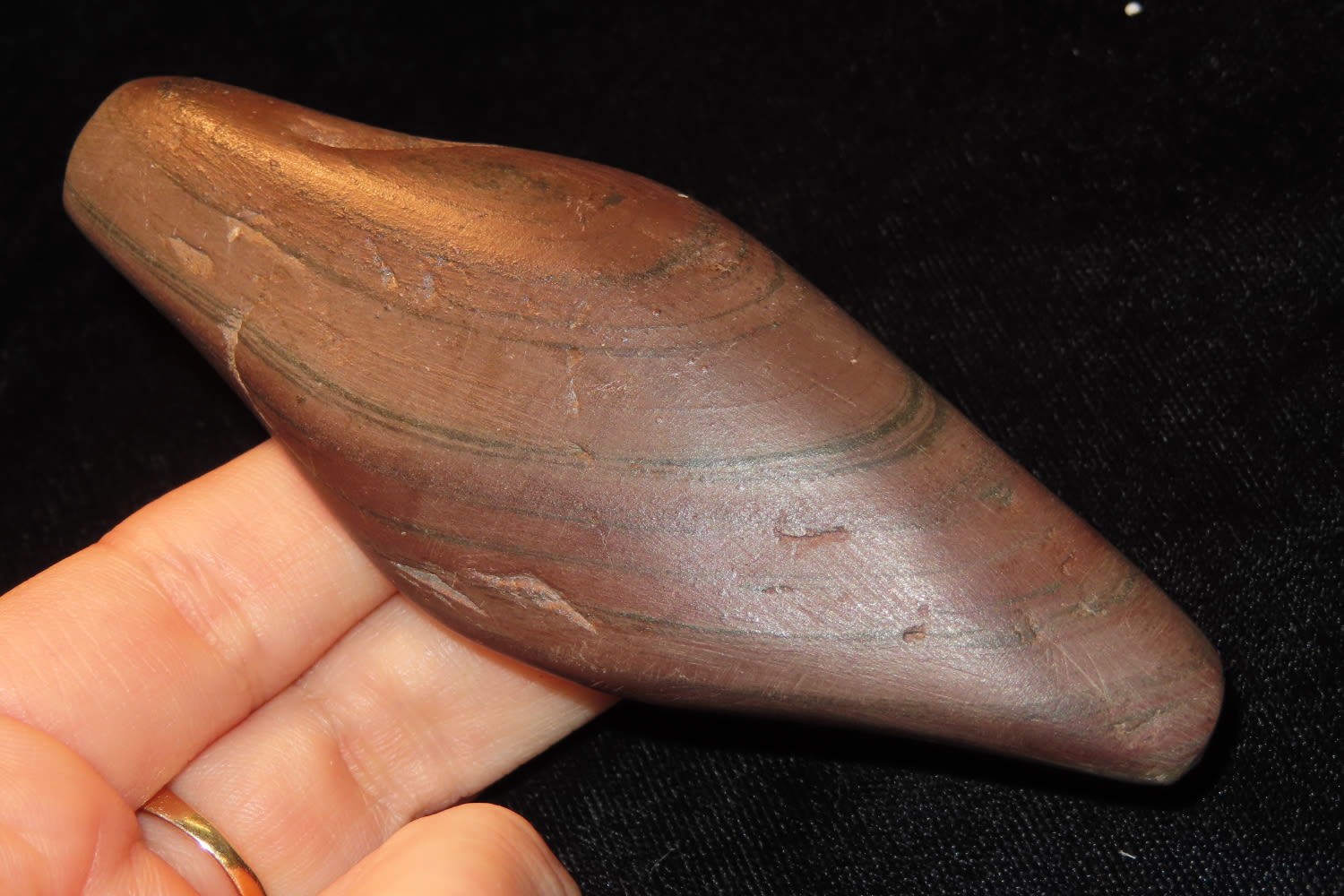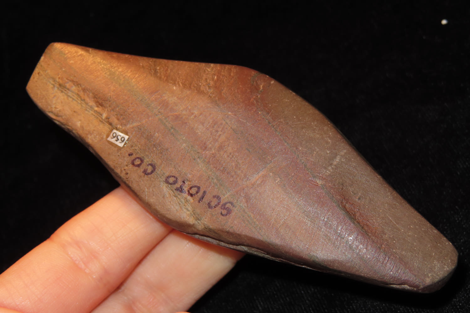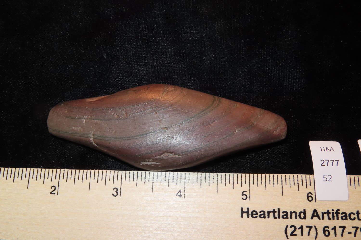 4″ Adena expanded center Gorget, red banded slate, Scioto, Co Ohio