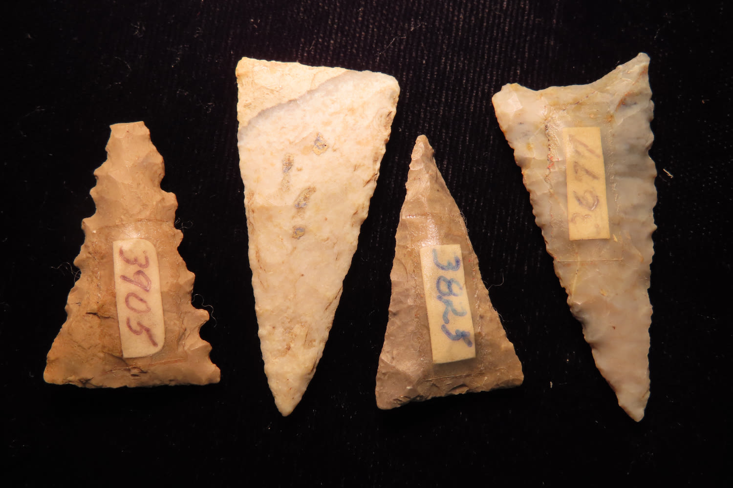 Grouping of 4 fort ancient triangles, found in Ohio, ex Hooks