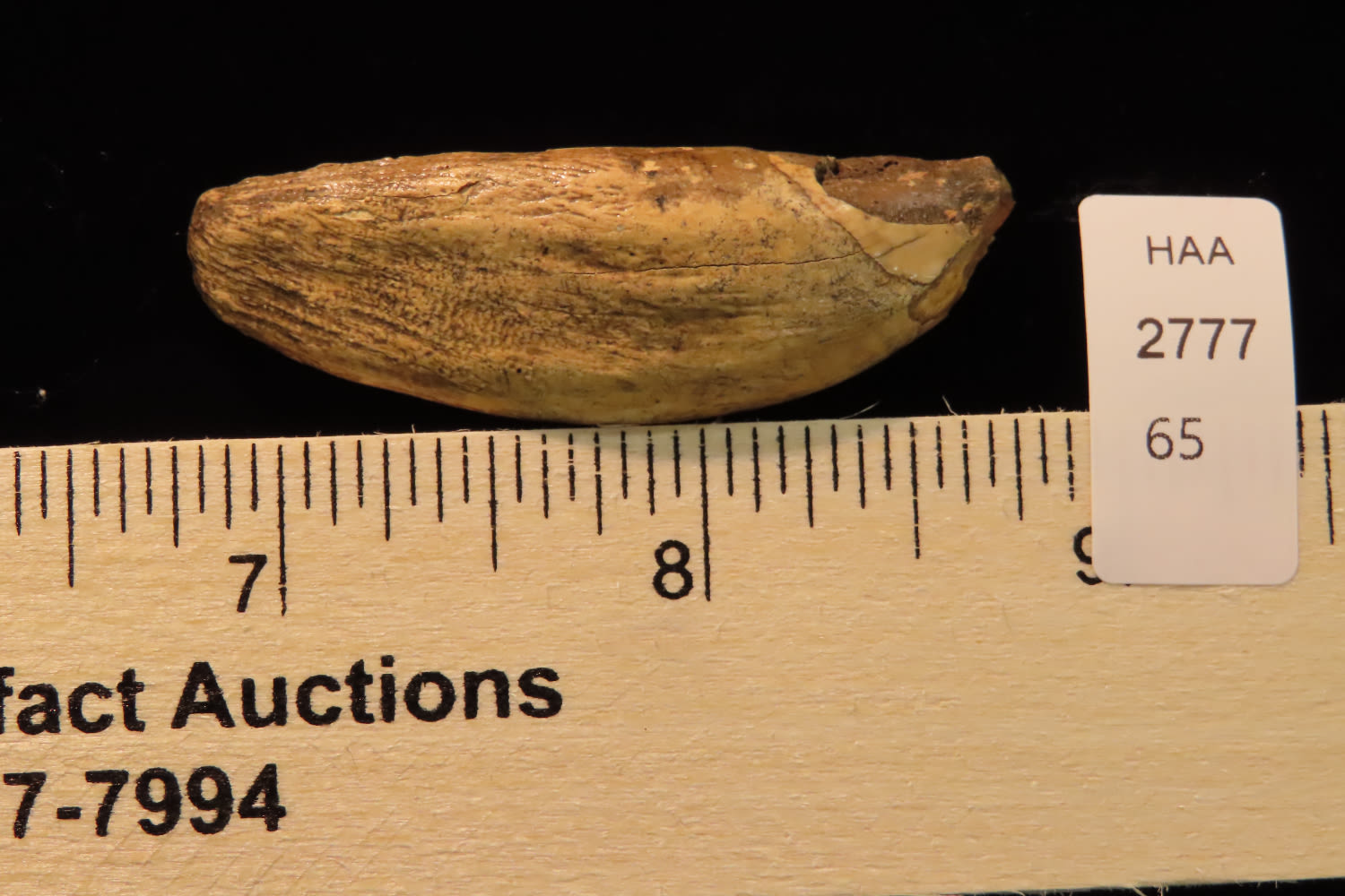 2″ Bear Tooth Pendant, undrilled, found on the Feurt Site, Southern Ohio, by Dr. Stanley Copeland