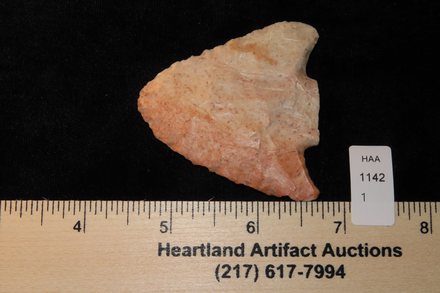 2 1/4″ COLORFUL HOPEWELL SNYDERS FOUND IN CALHOUN COUNTY ILLINOIS, INDIAN ARROWHEAD, ARTIFACT