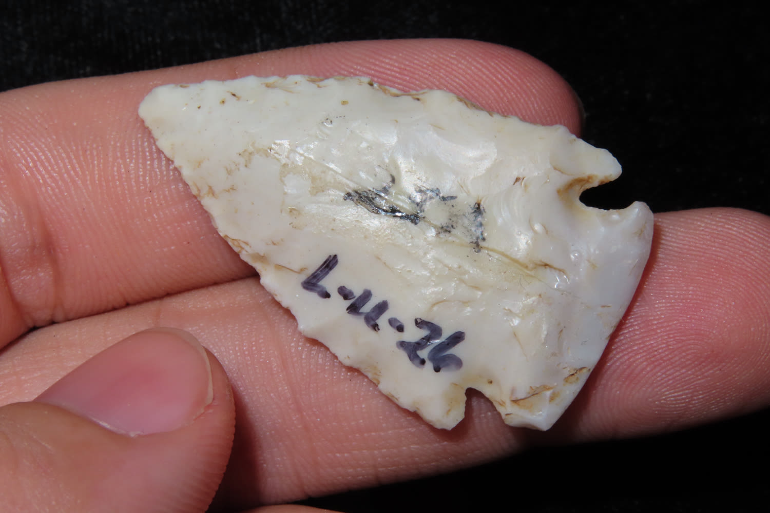 CACHE RIVER FOUND BY DUB LYERLY IN CRAIGHEAD COUNTY ARKANSAS, INDIAN ARROWHEAD, ARTIFACT