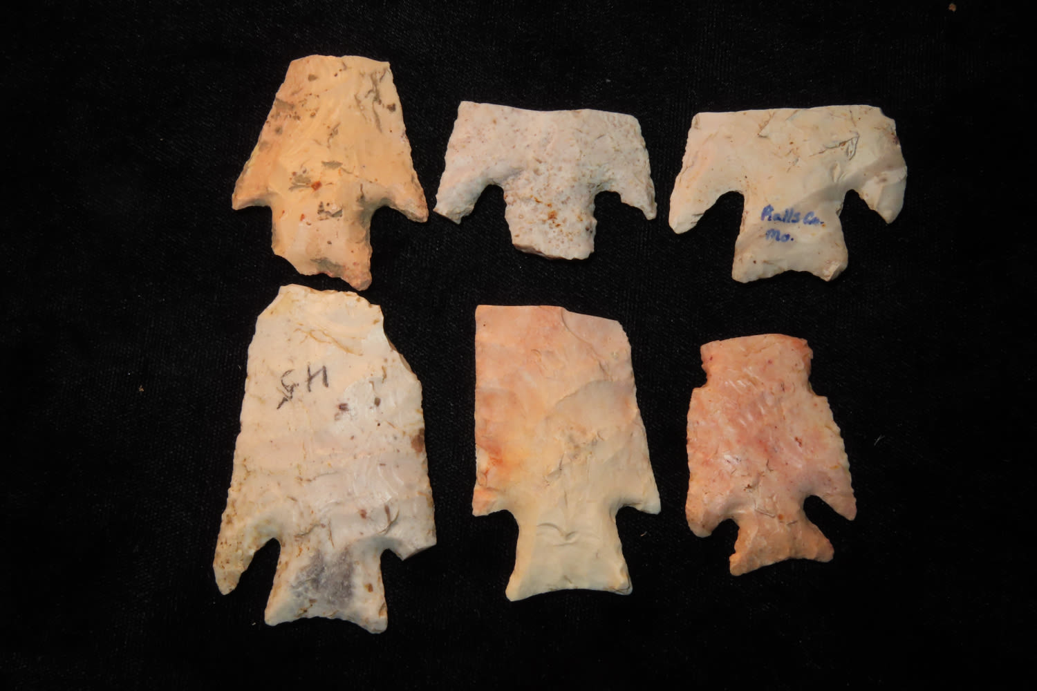LOT OF HEARBREAKER APPLE CREEKS FROM THE SAME SITE, LINCOLN COUNTY MISSOURI, INDIAN ARROWHEAD, ARTIFACT