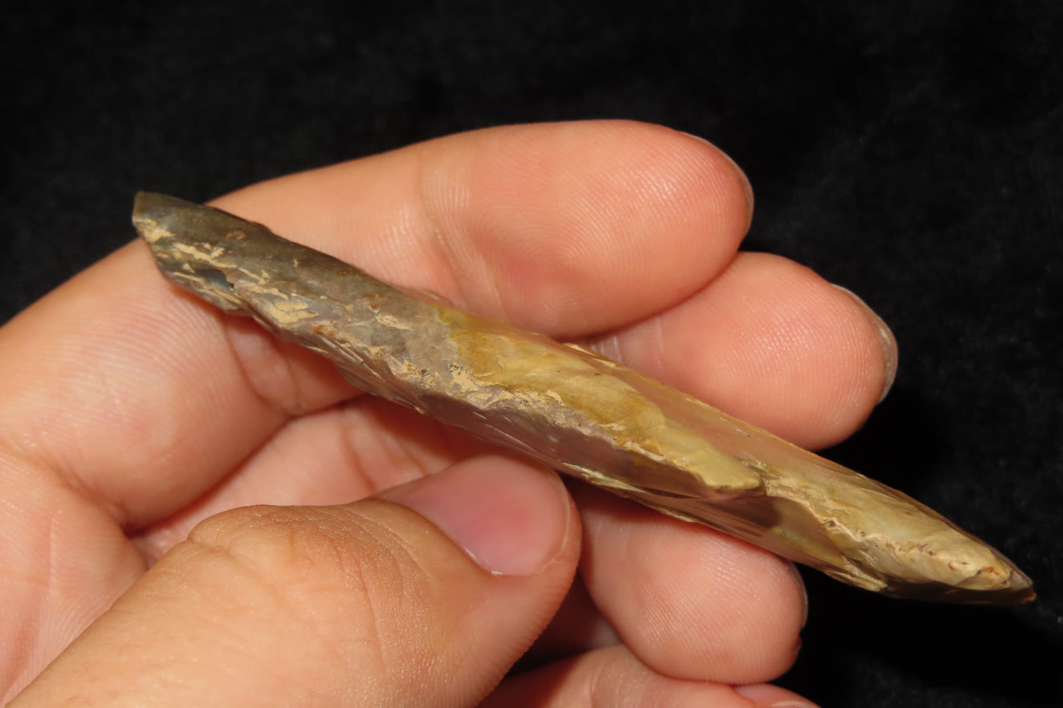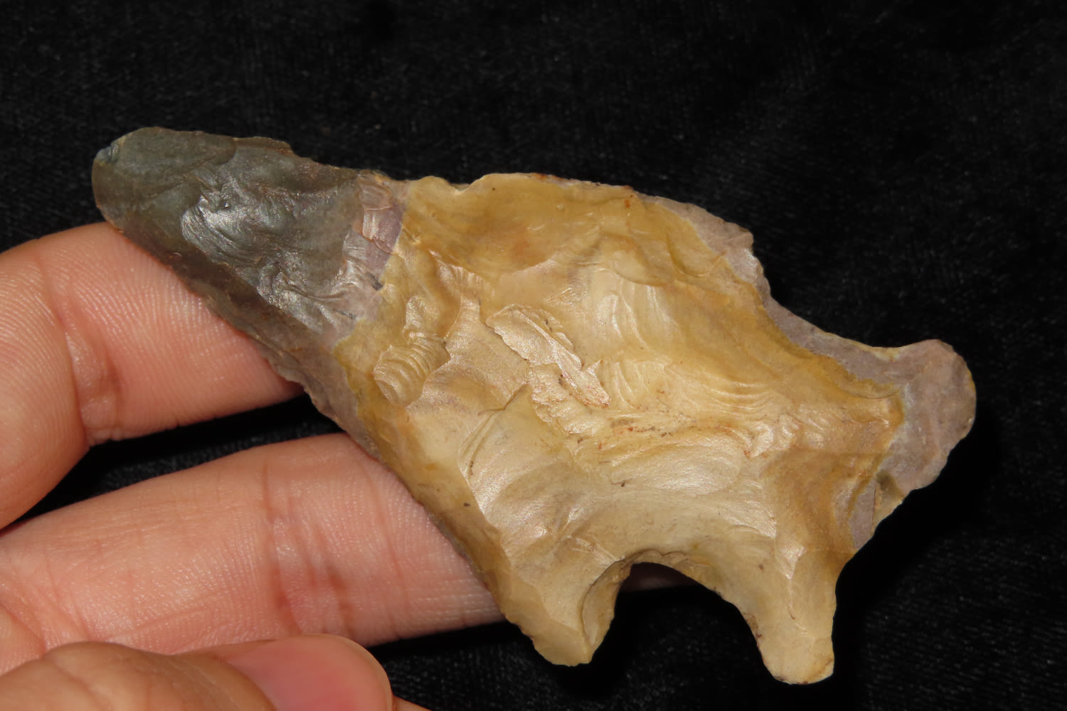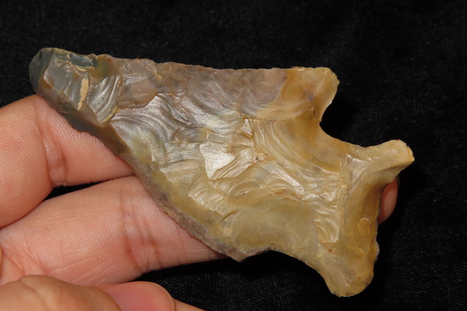 3 1/8″ COLORFUL KNOBBED HARDIN FOUND IN LOGAN COUNTY KENTUCKY, INDIAN ARROWHEAD, ARTIFACT