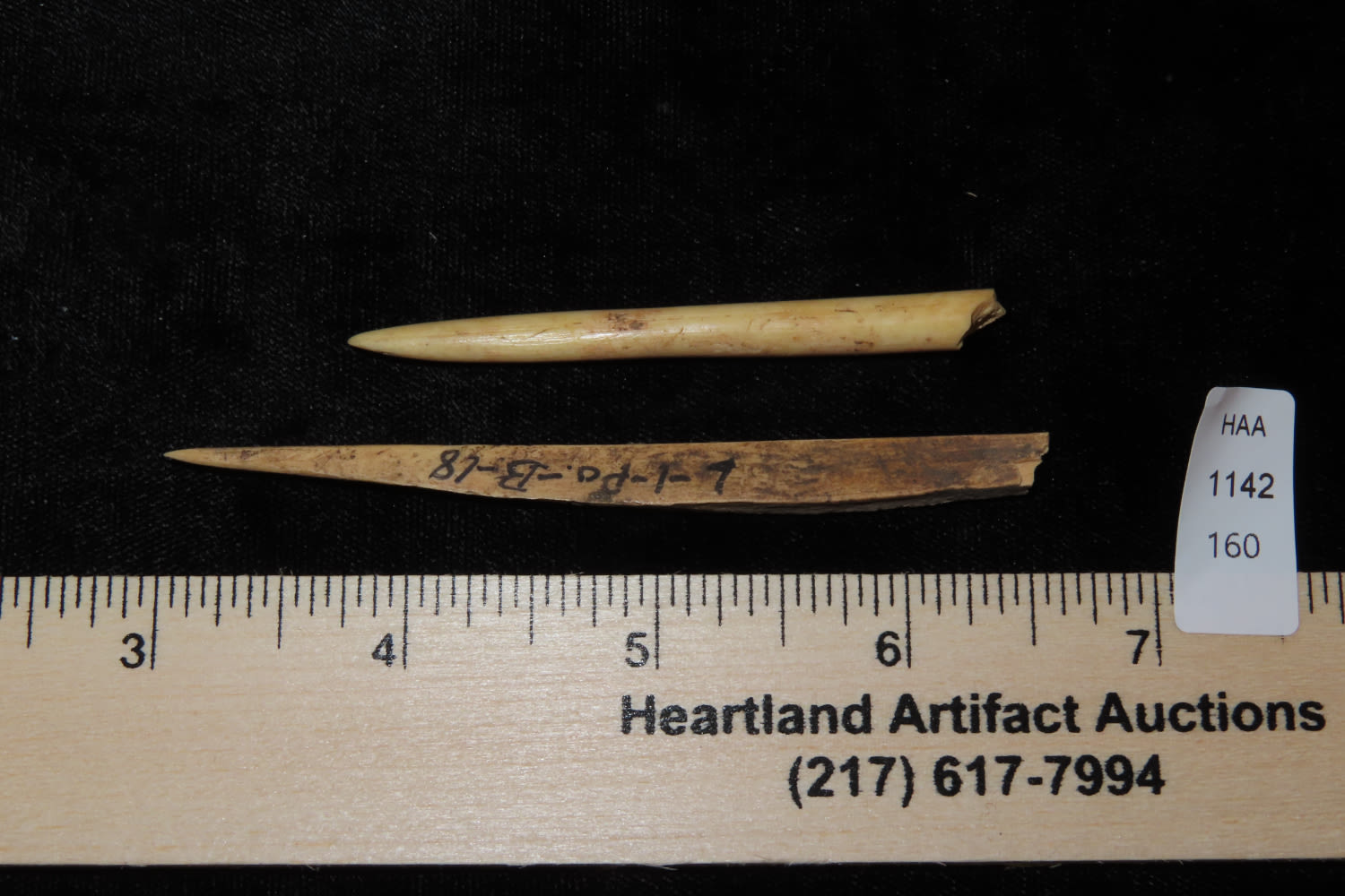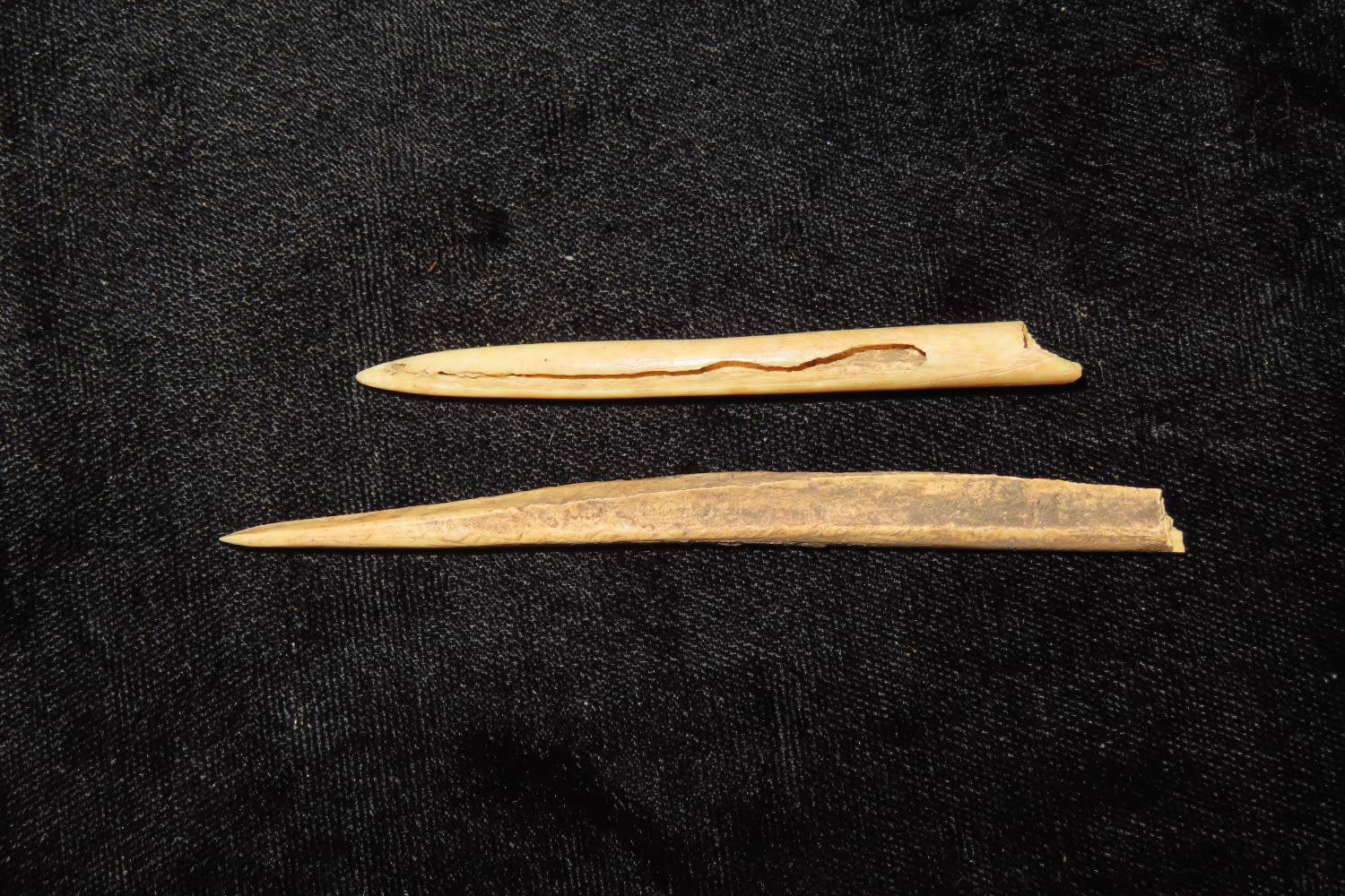 PAIR OF BONE AWLS / NEEDLES FOUND BY DUB LYERLY IN CRAIGHEAD COUNTY ARKANSAS, INDIAN ARROWHEAD, ARTIFACT