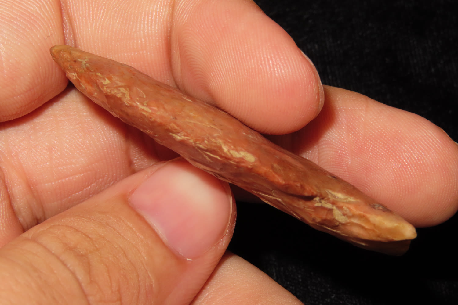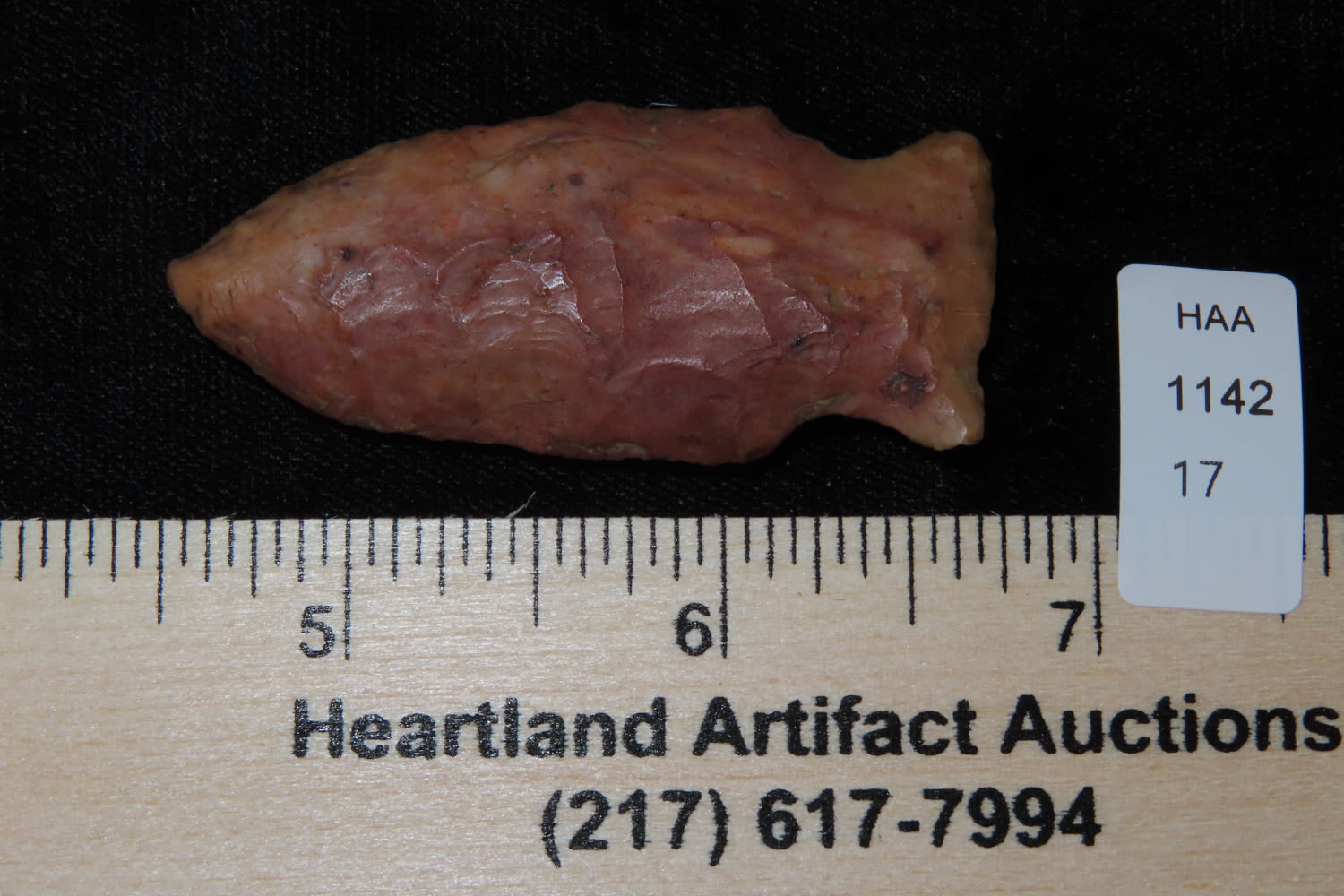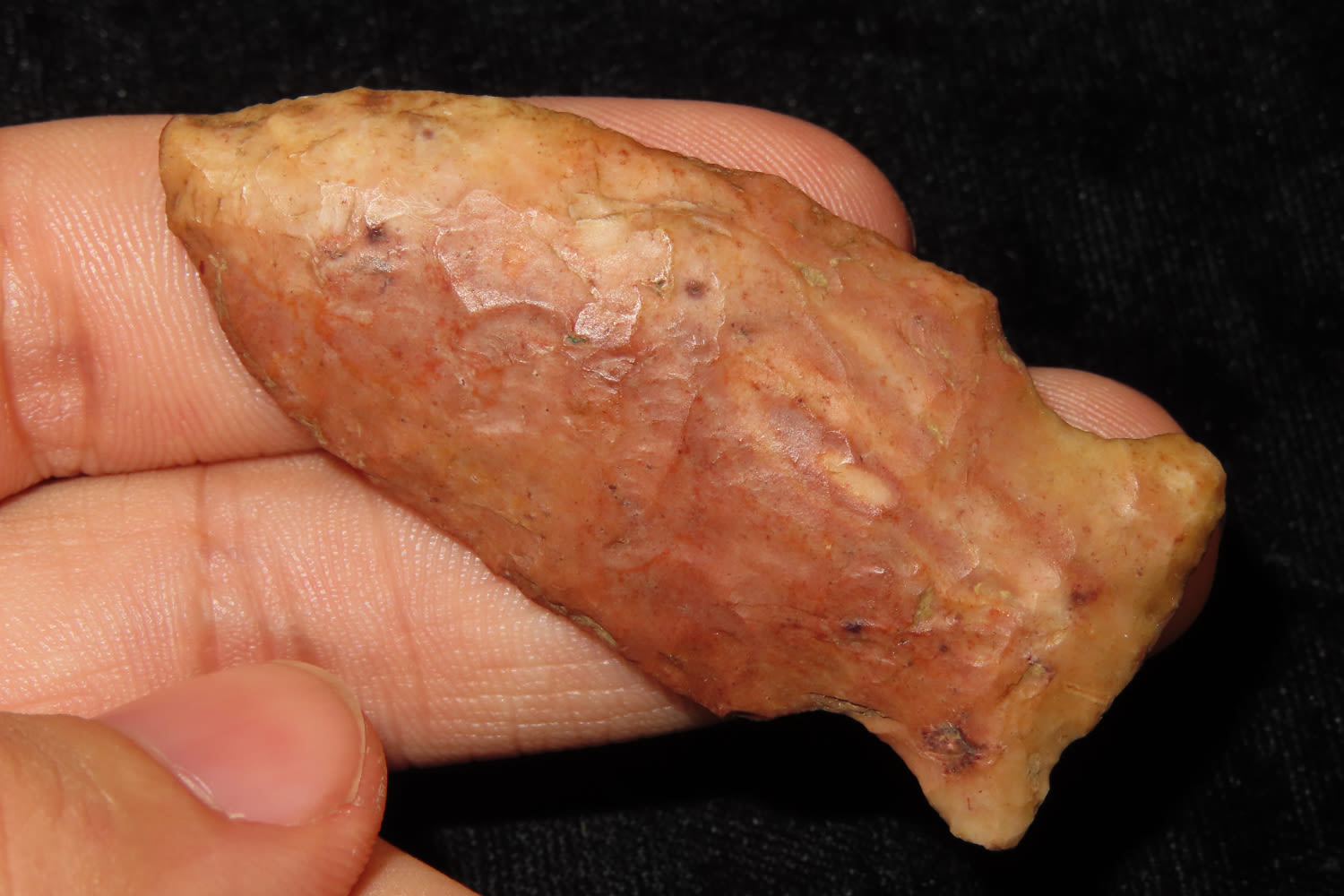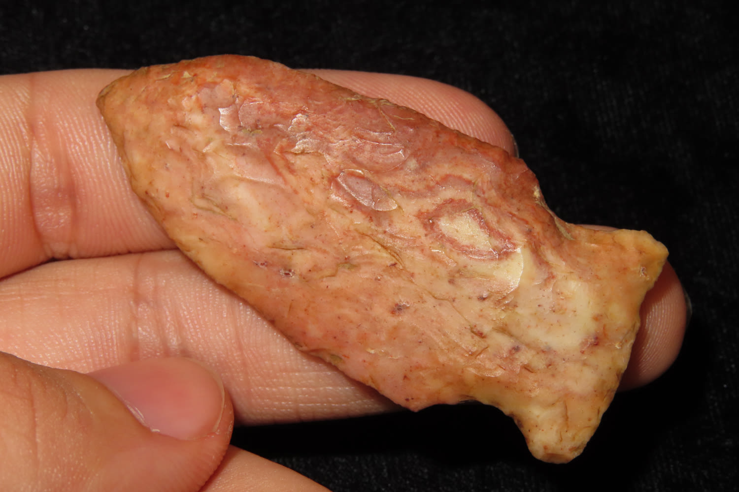 2 1/4 COLORFUL MATANZAS FOUND IN FOUND IN LINCOLN COUNTY MISSOURI, INDIAN ARROWHEAD, ARTIFACT